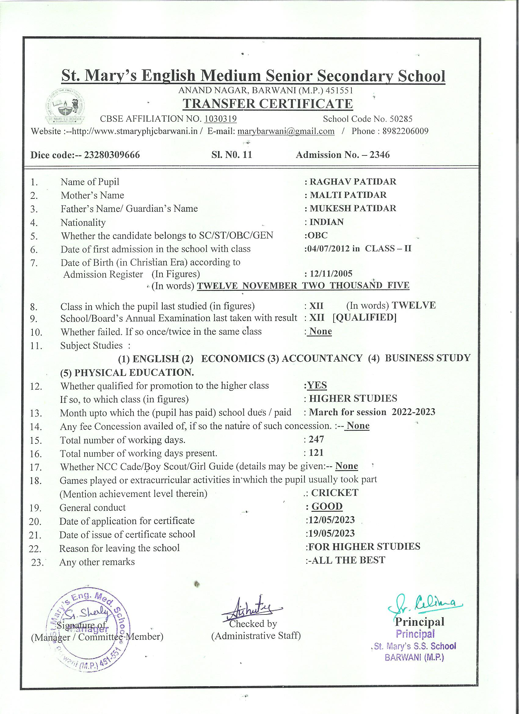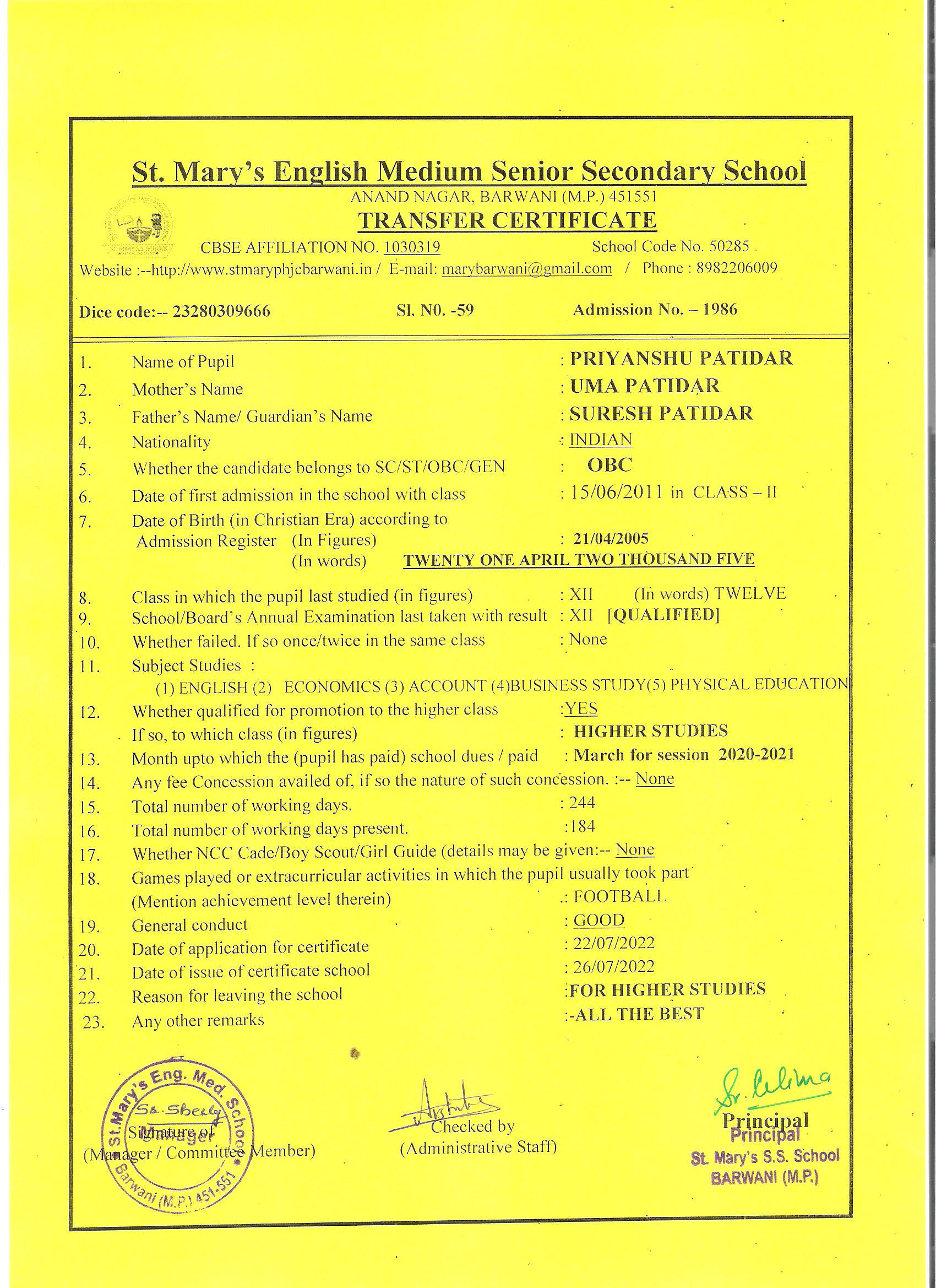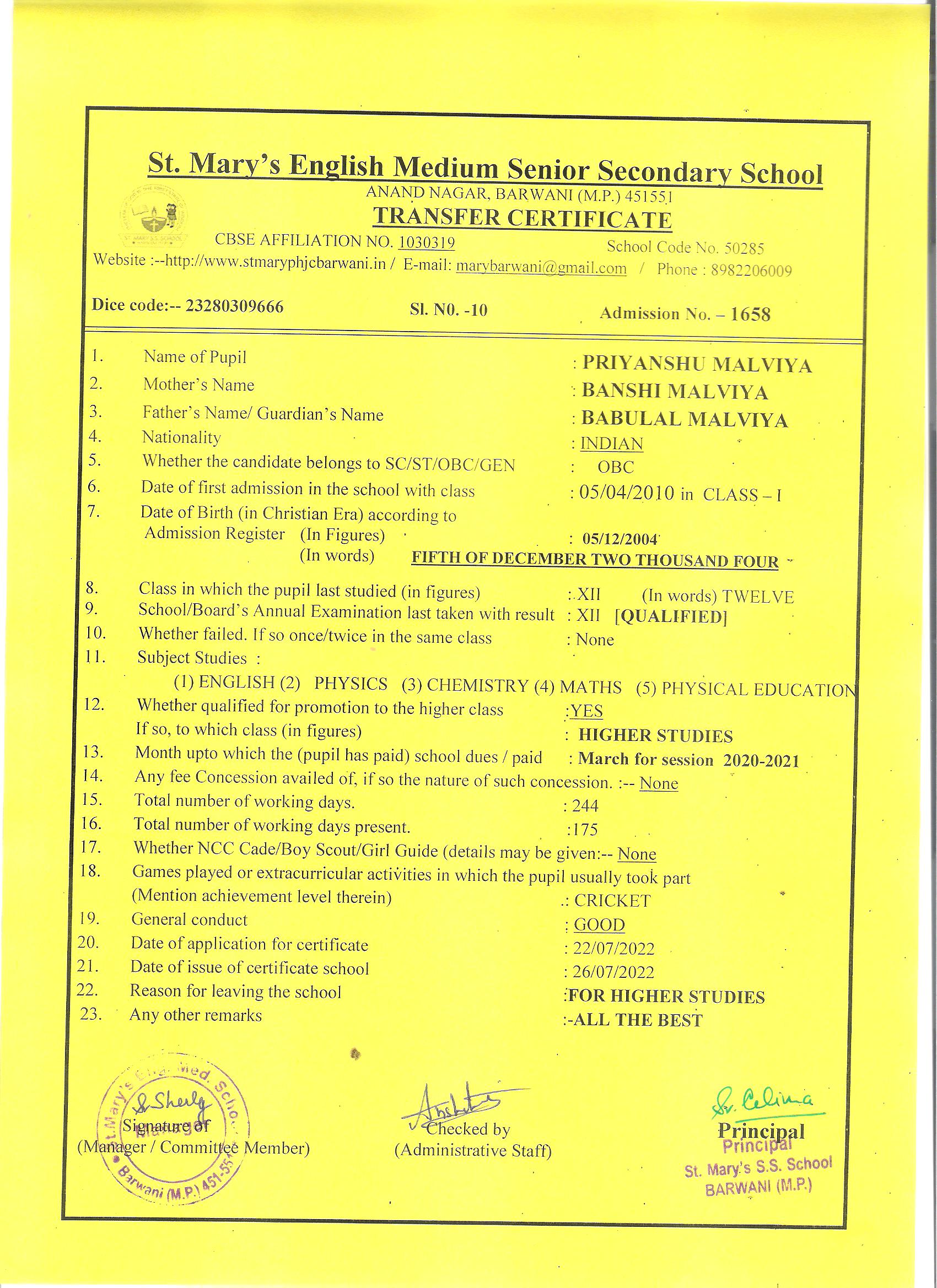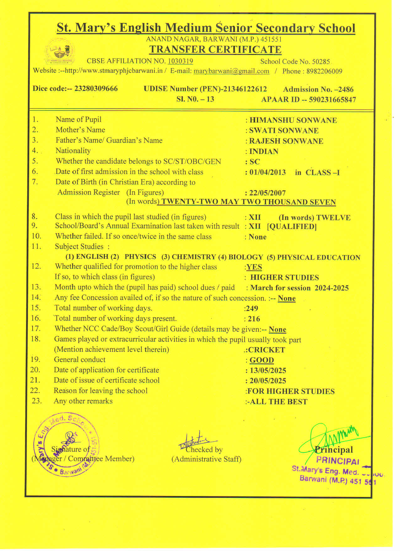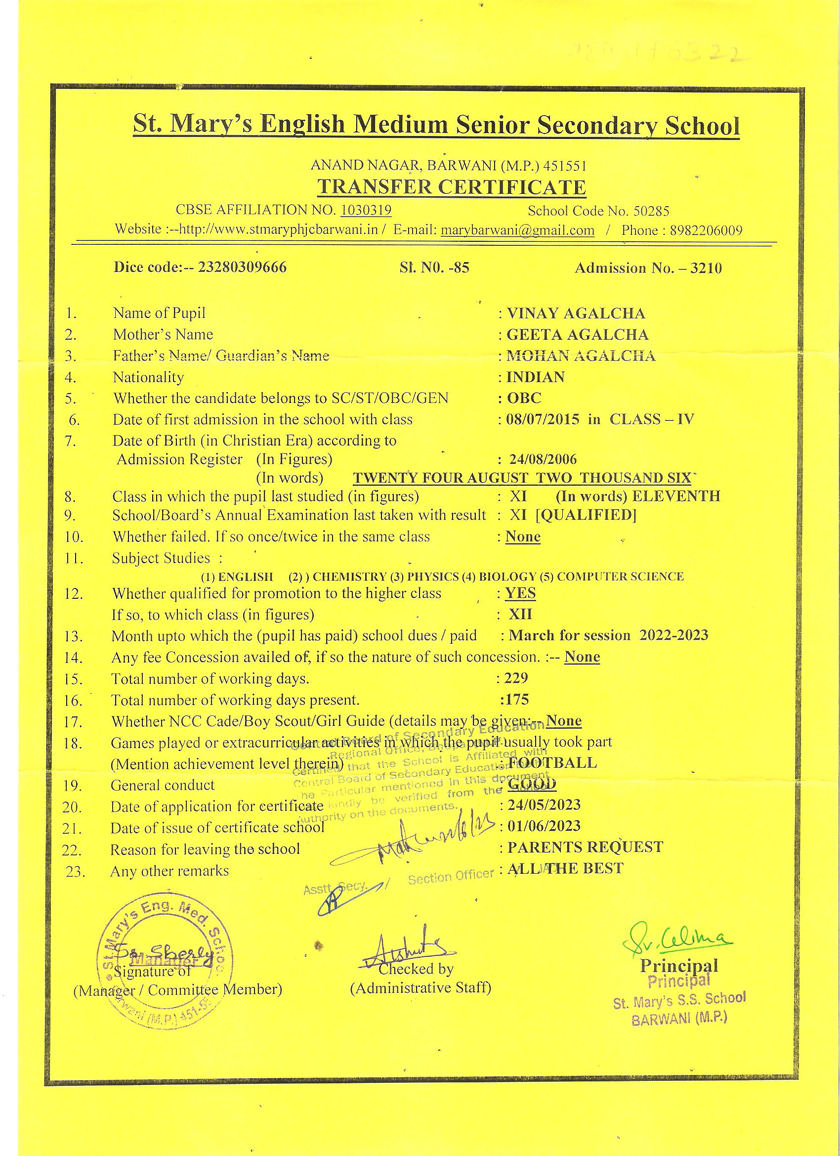 | 12 | Himanshu Sonwane | XII | View | Download |