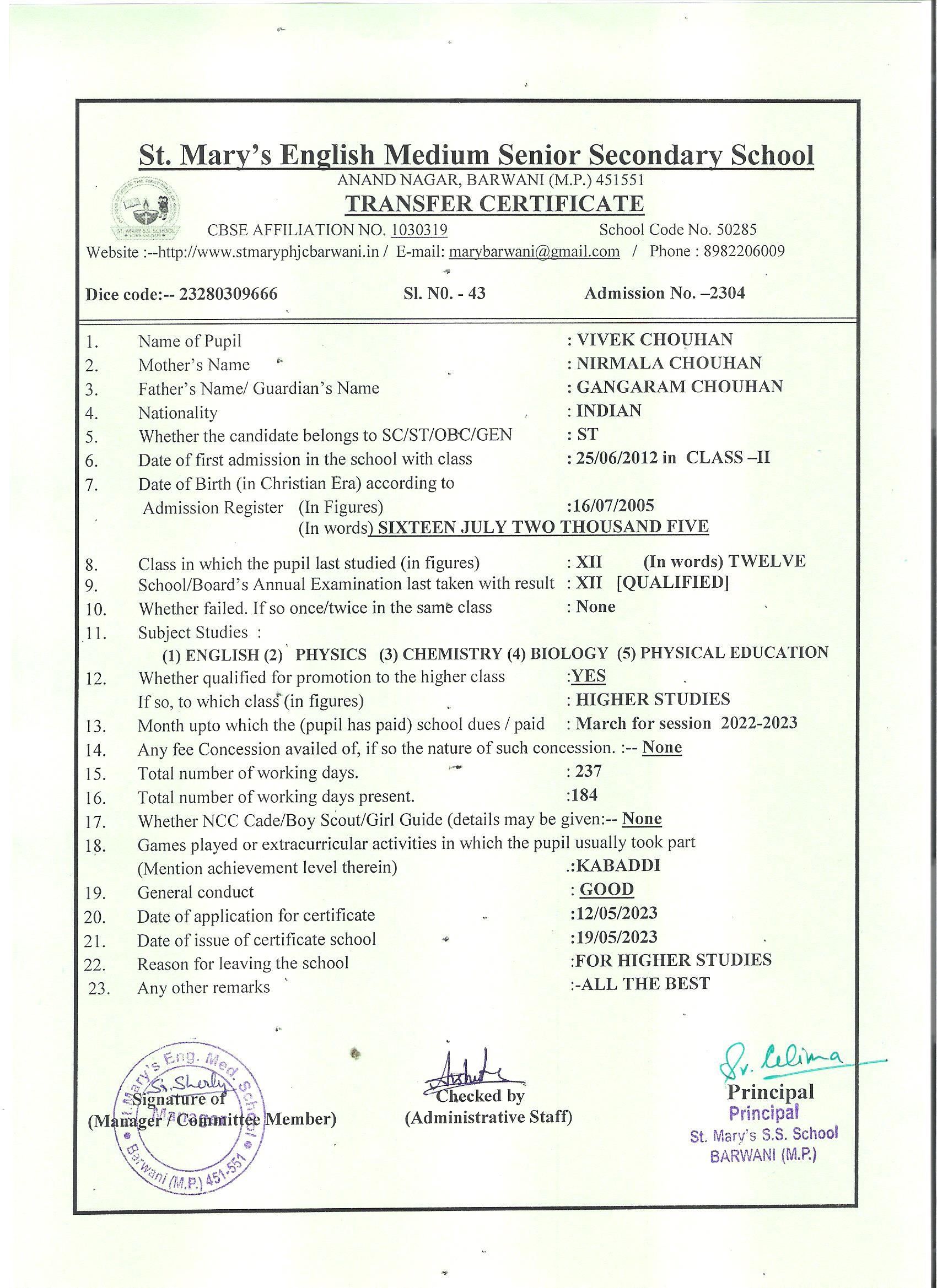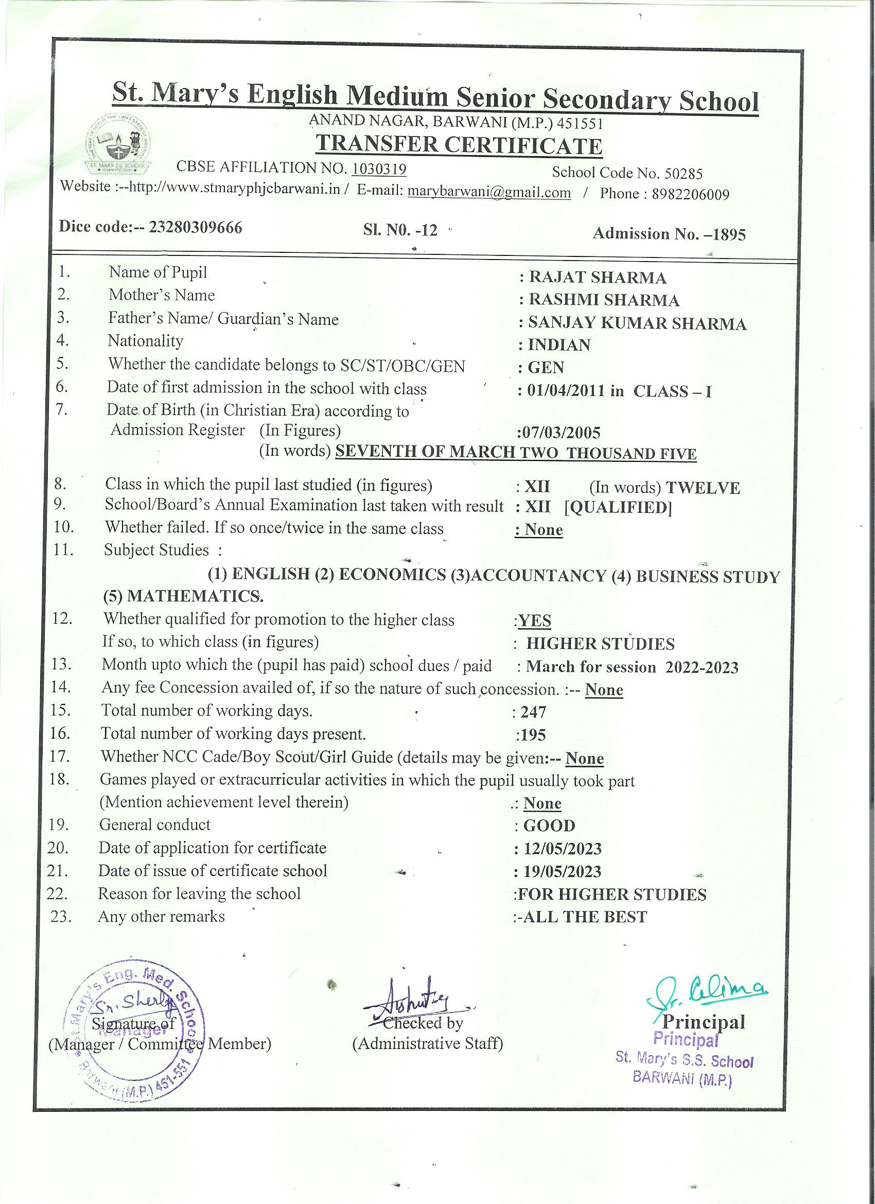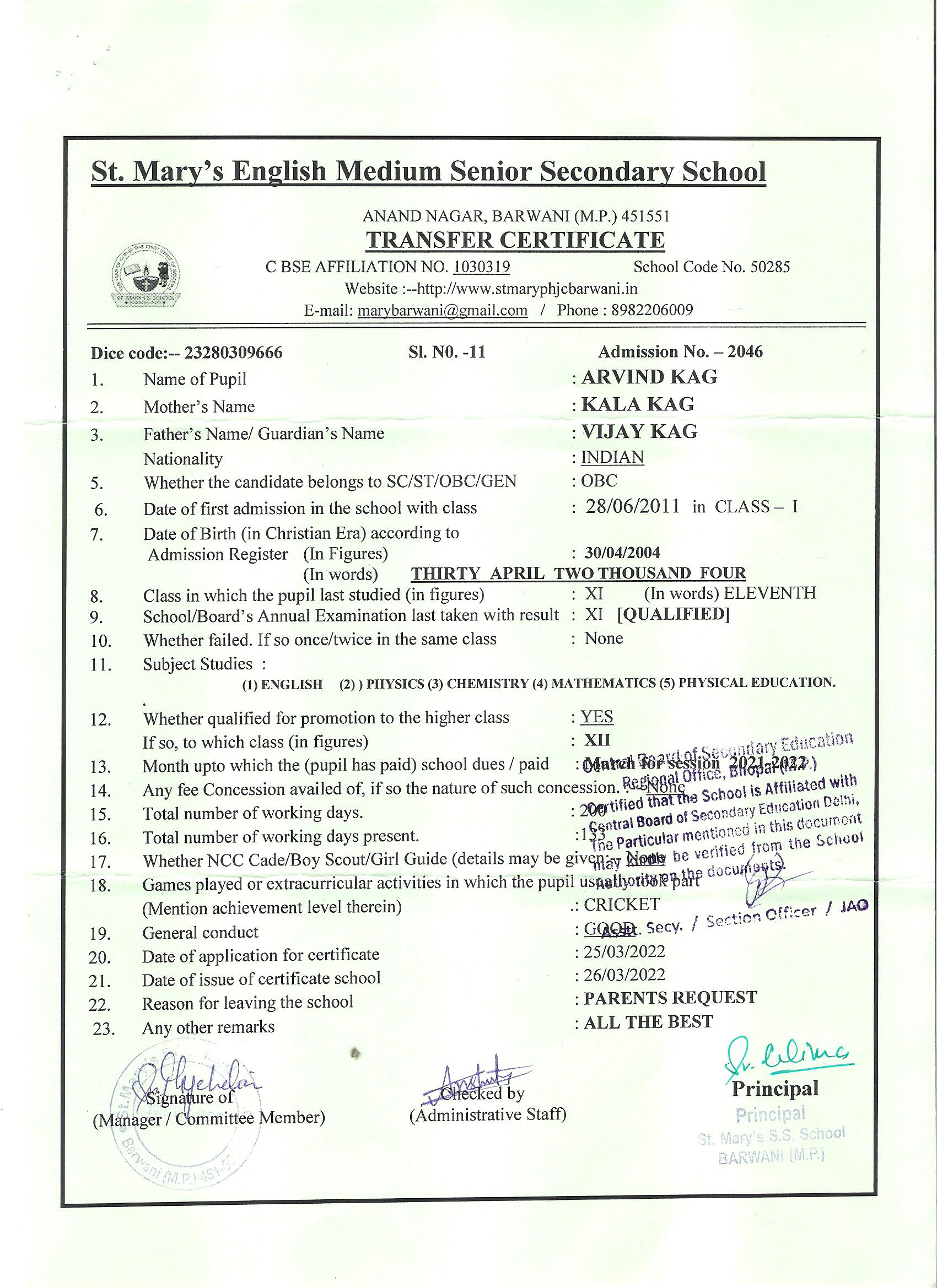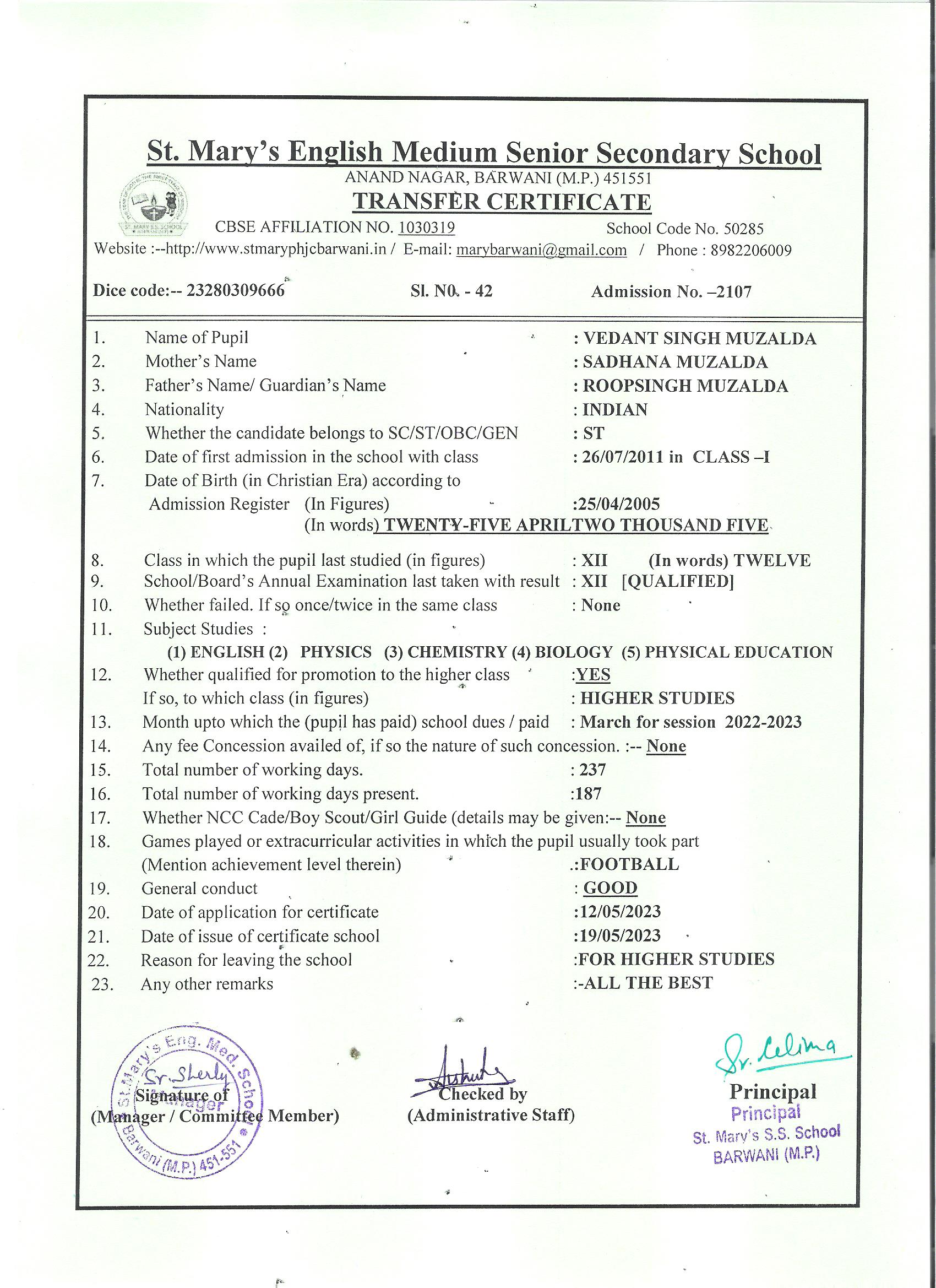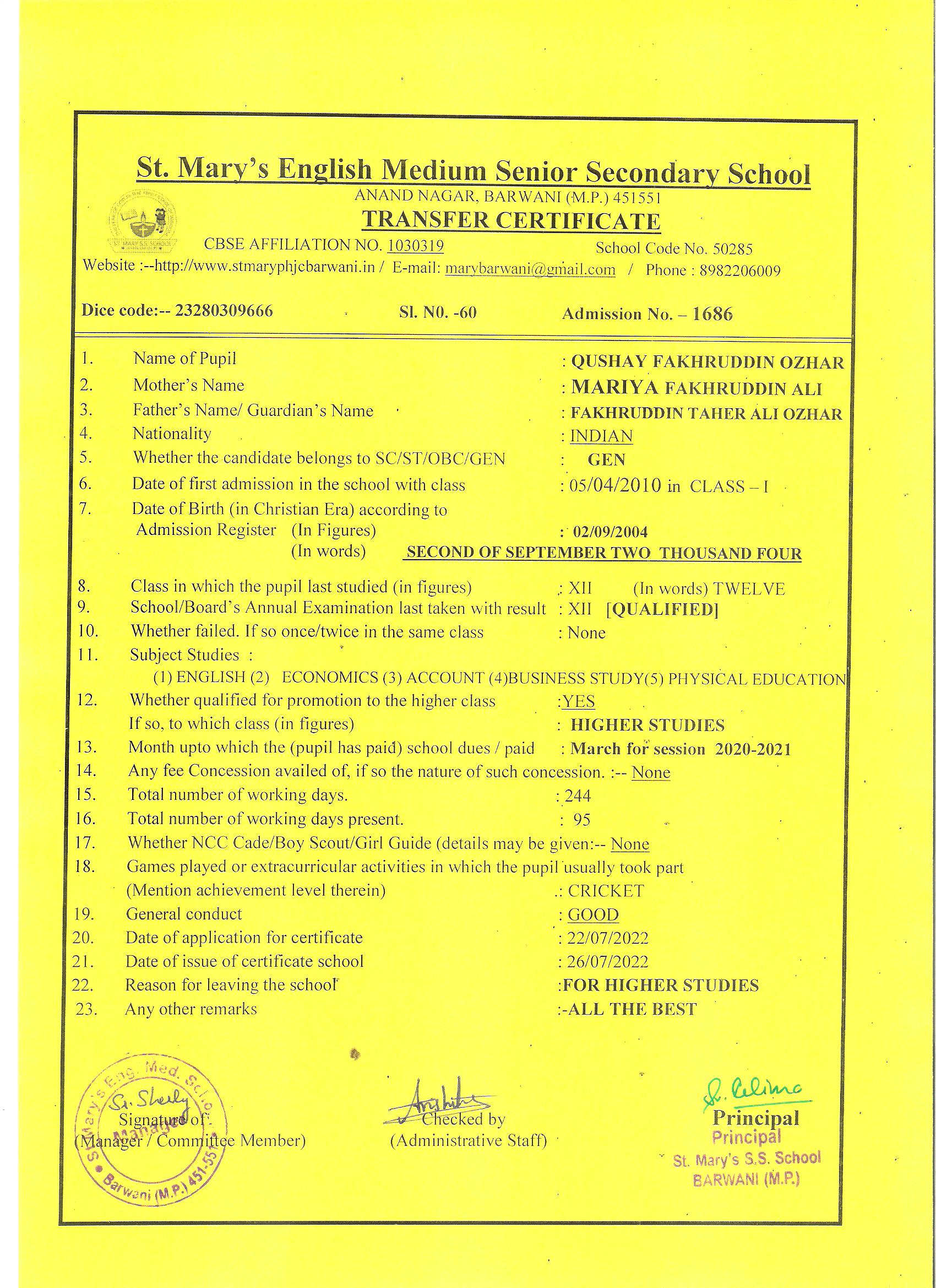 | 12 | Himanshu Sonwane | XII | View | Download |