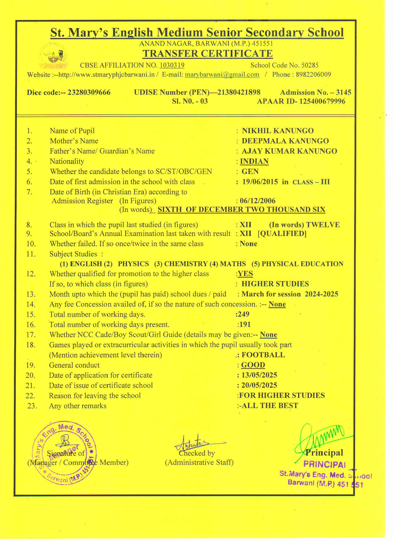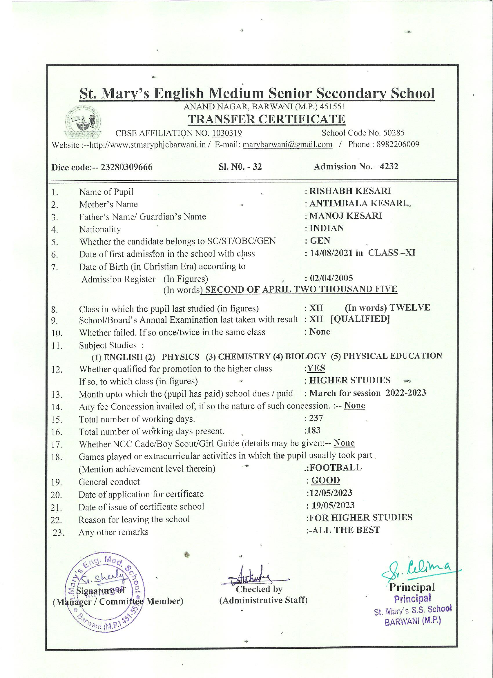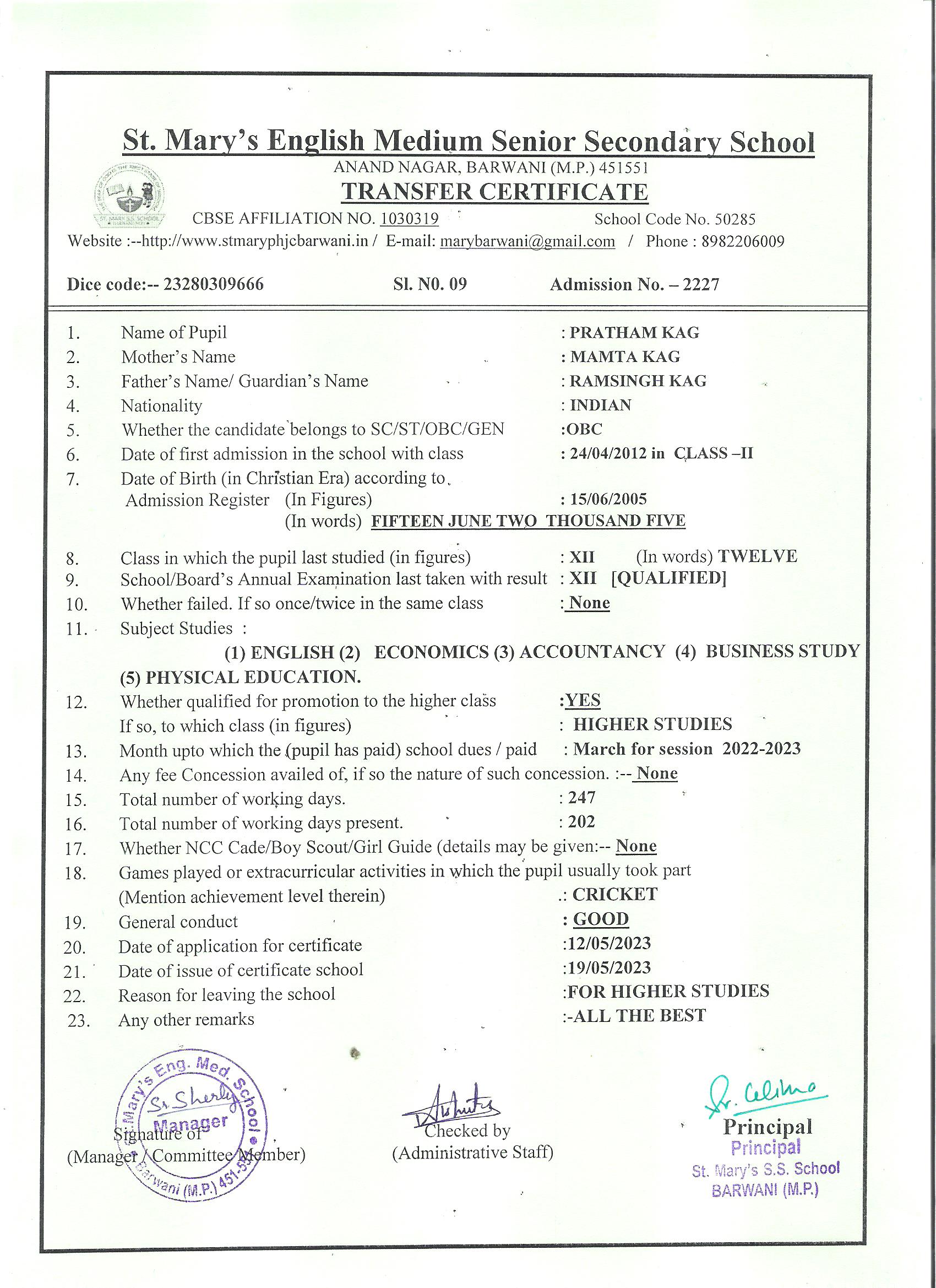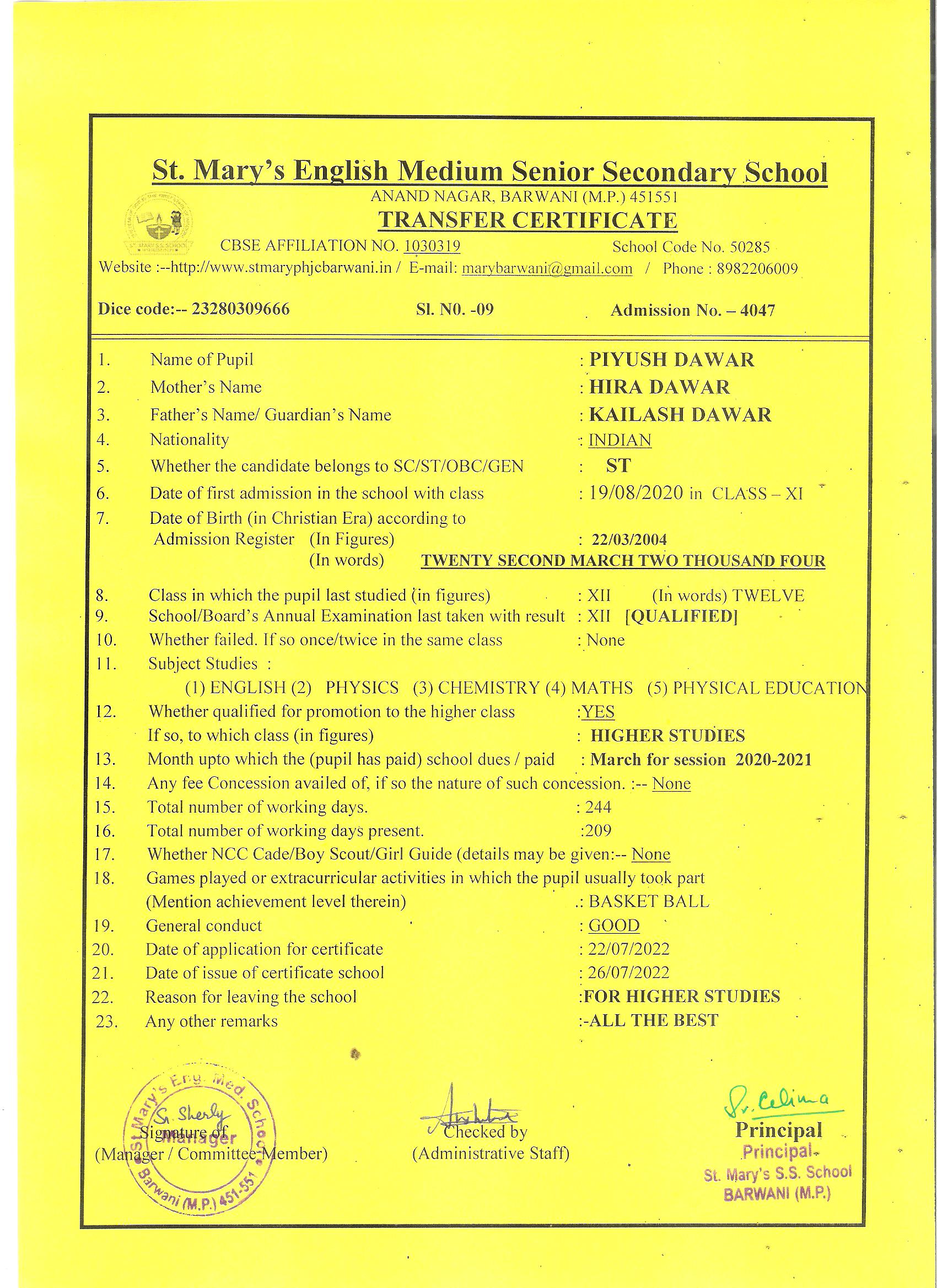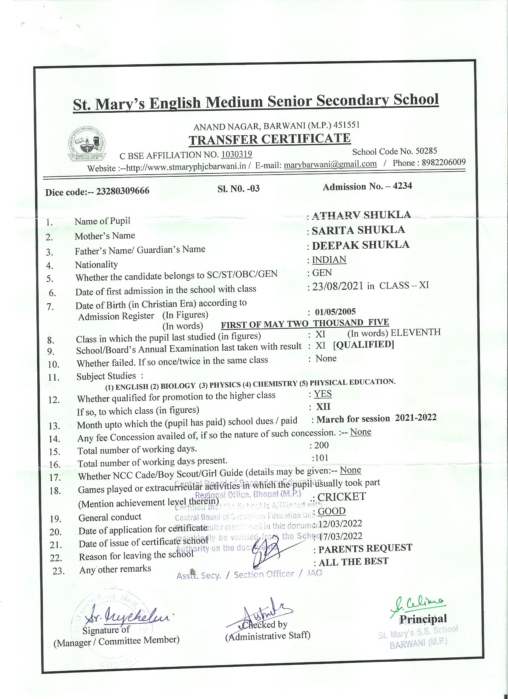 | 12 | Himanshu Sonwane | XII | View | Download |