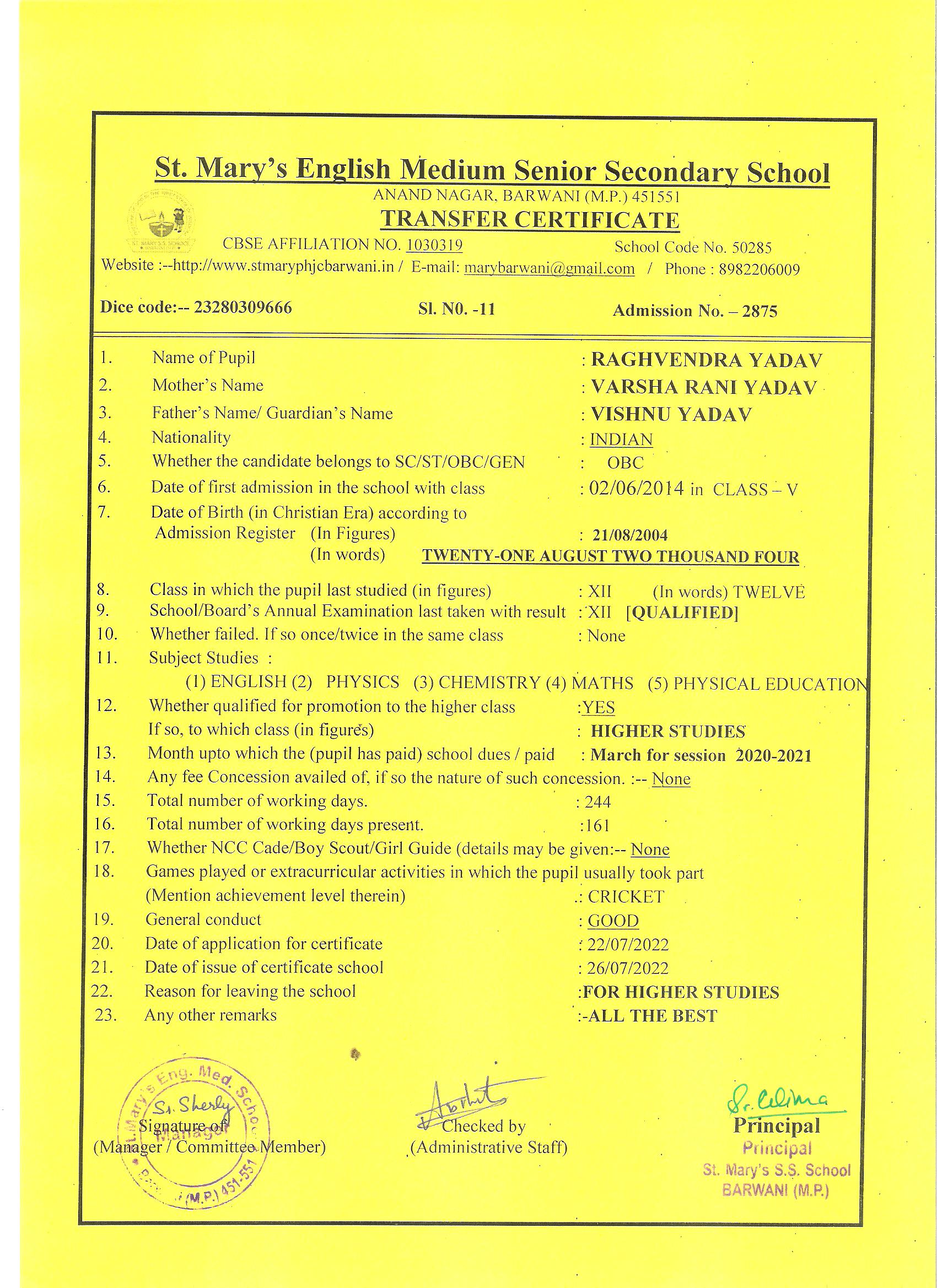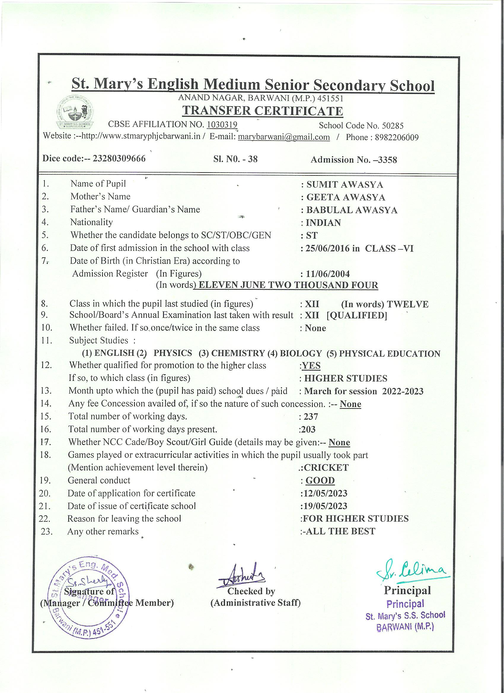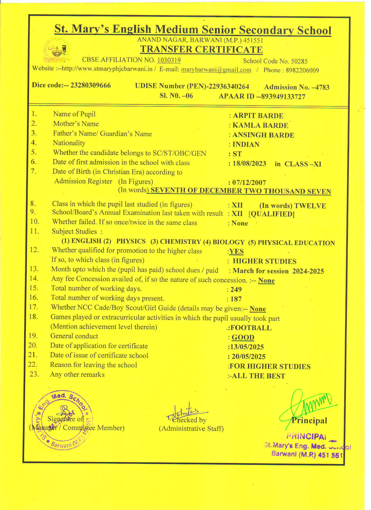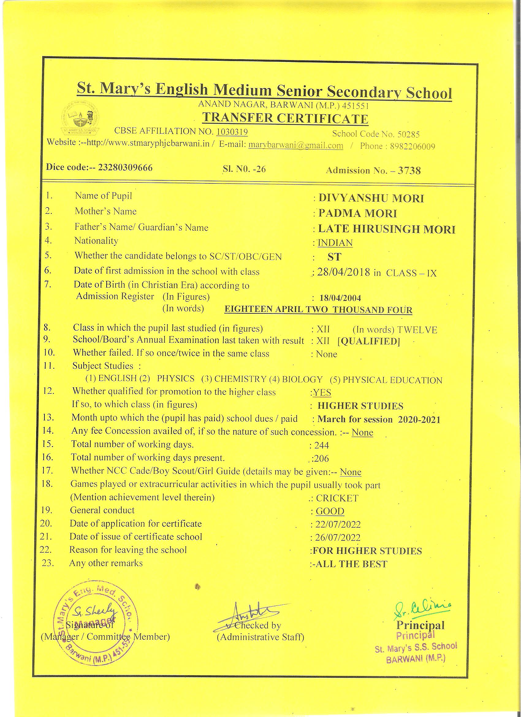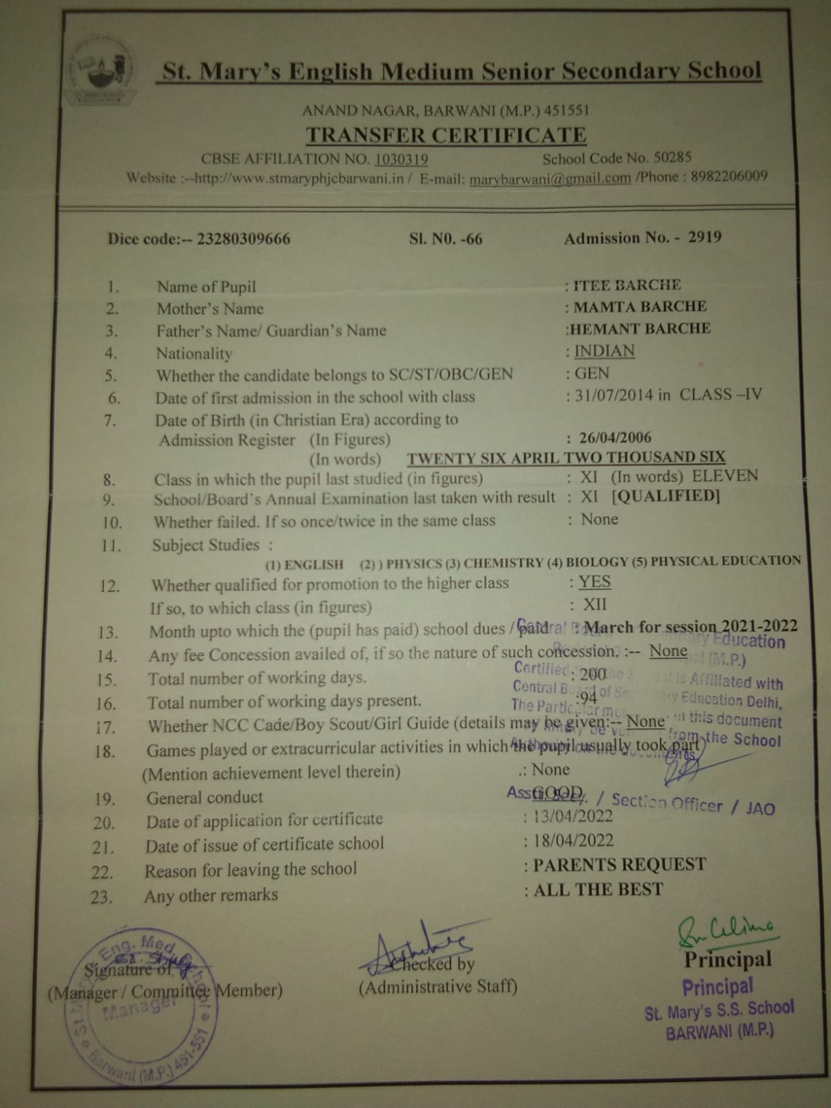 | 12 | Himanshu Sonwane | XII | View | Download |