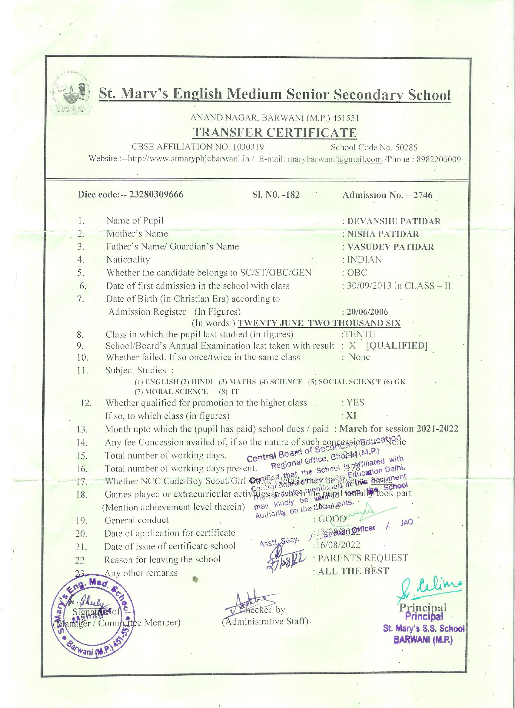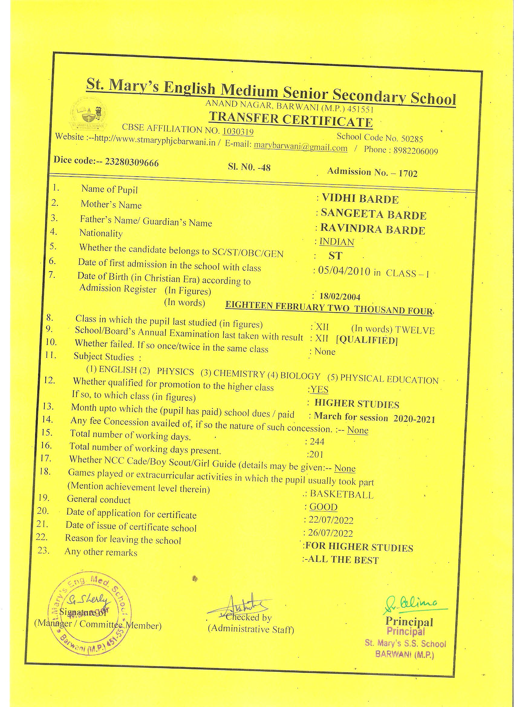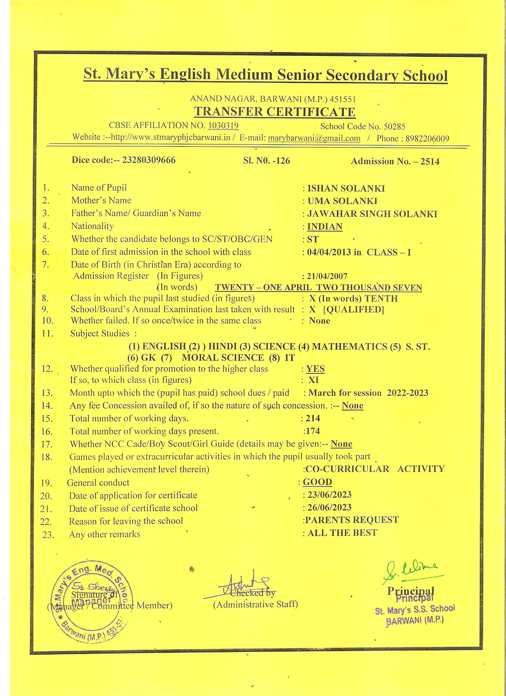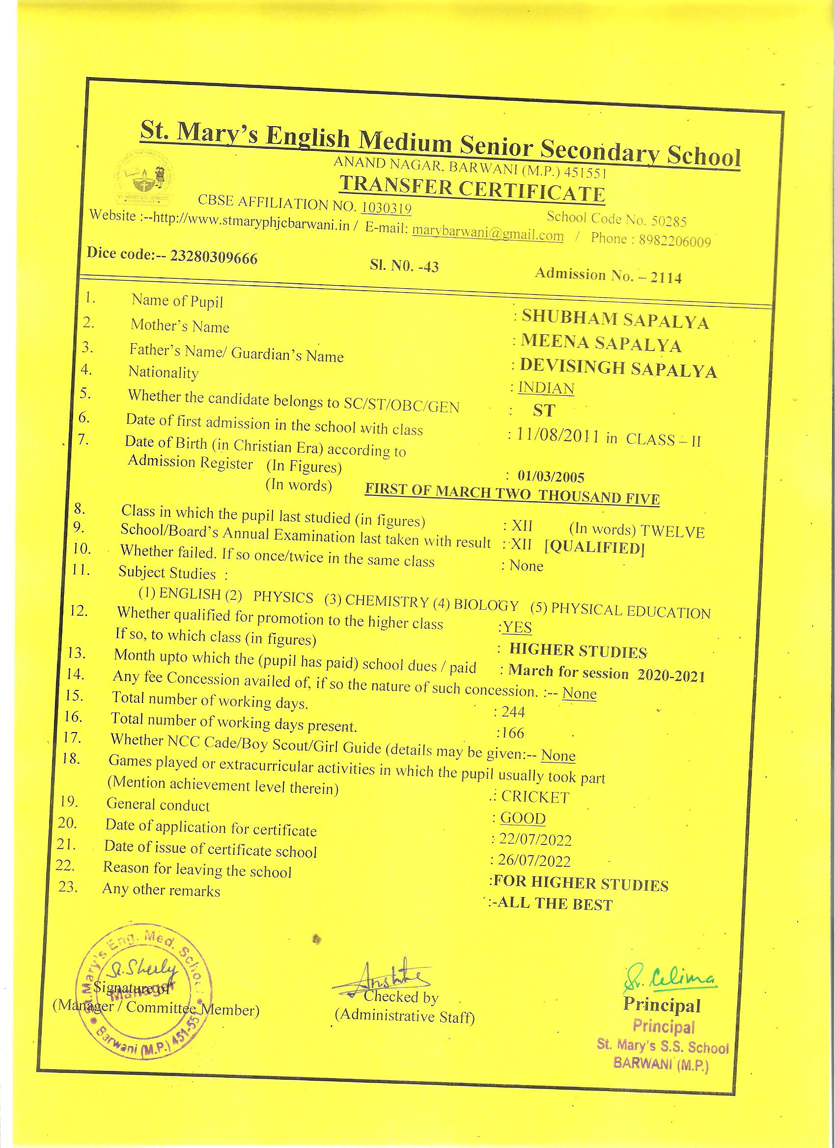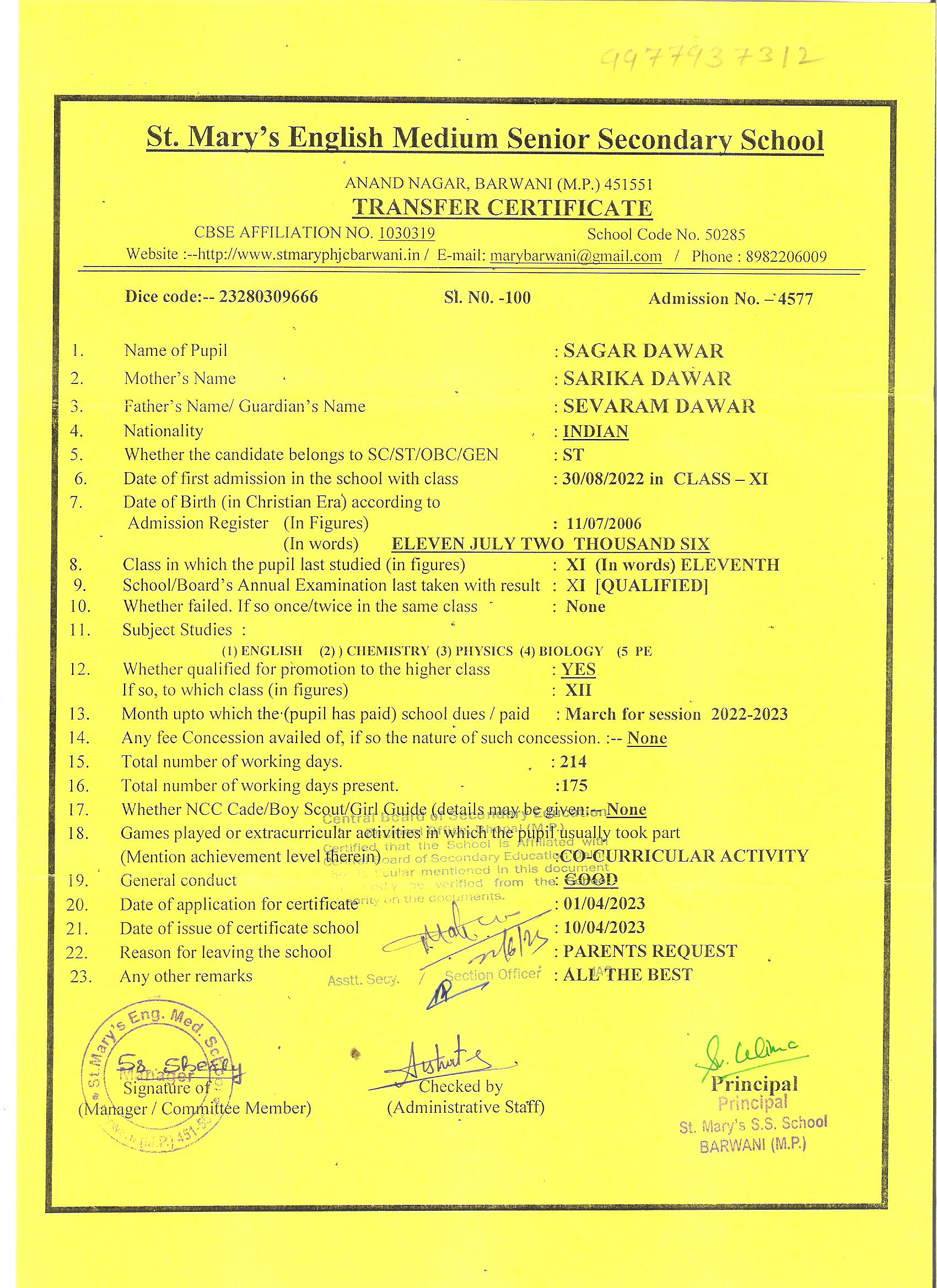 | 12 | Himanshu Sonwane | XII | View | Download |