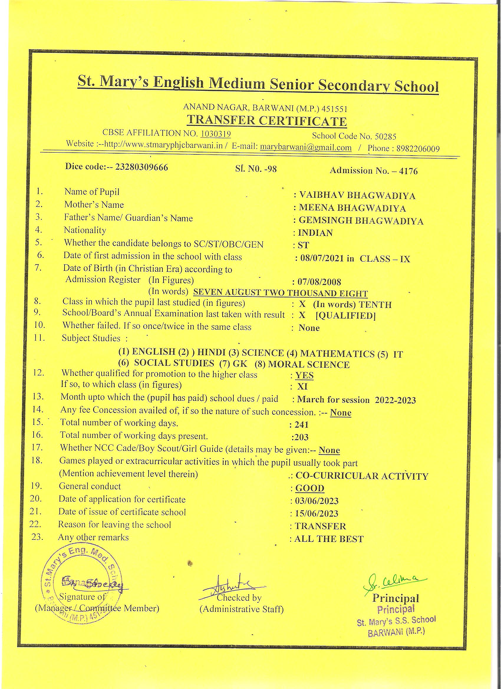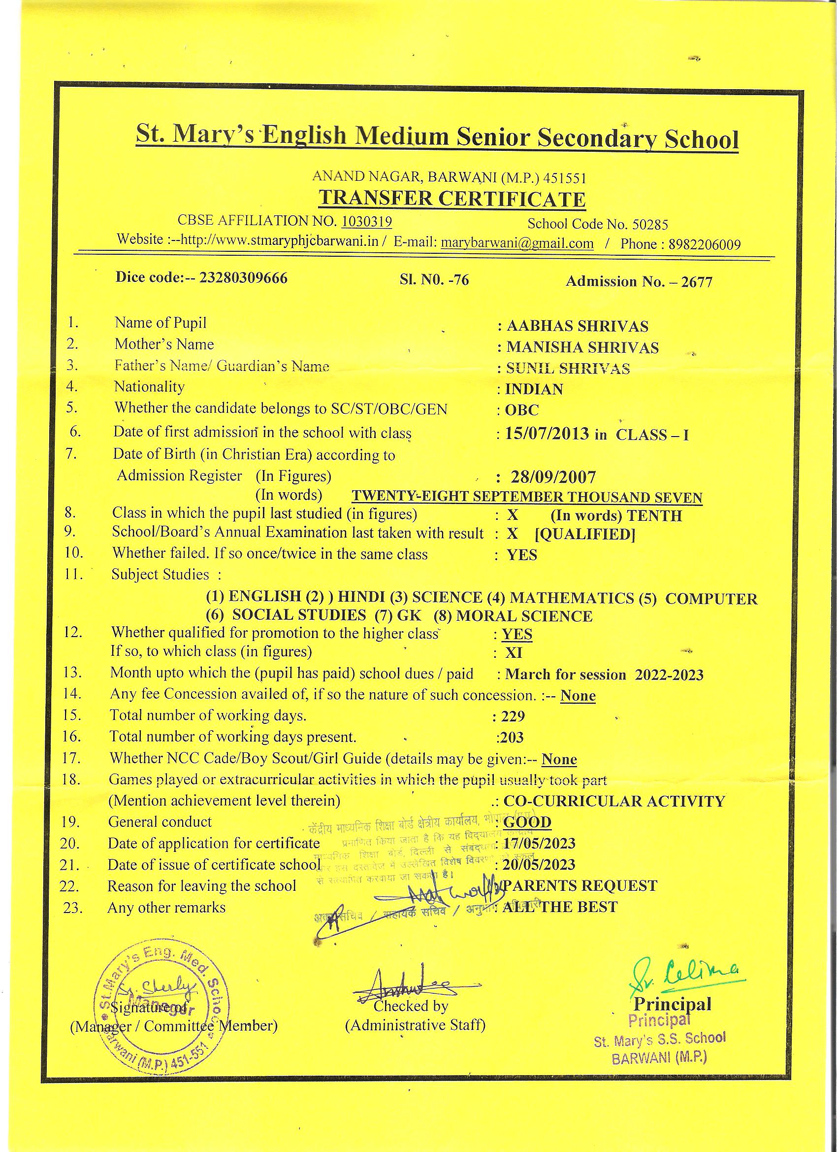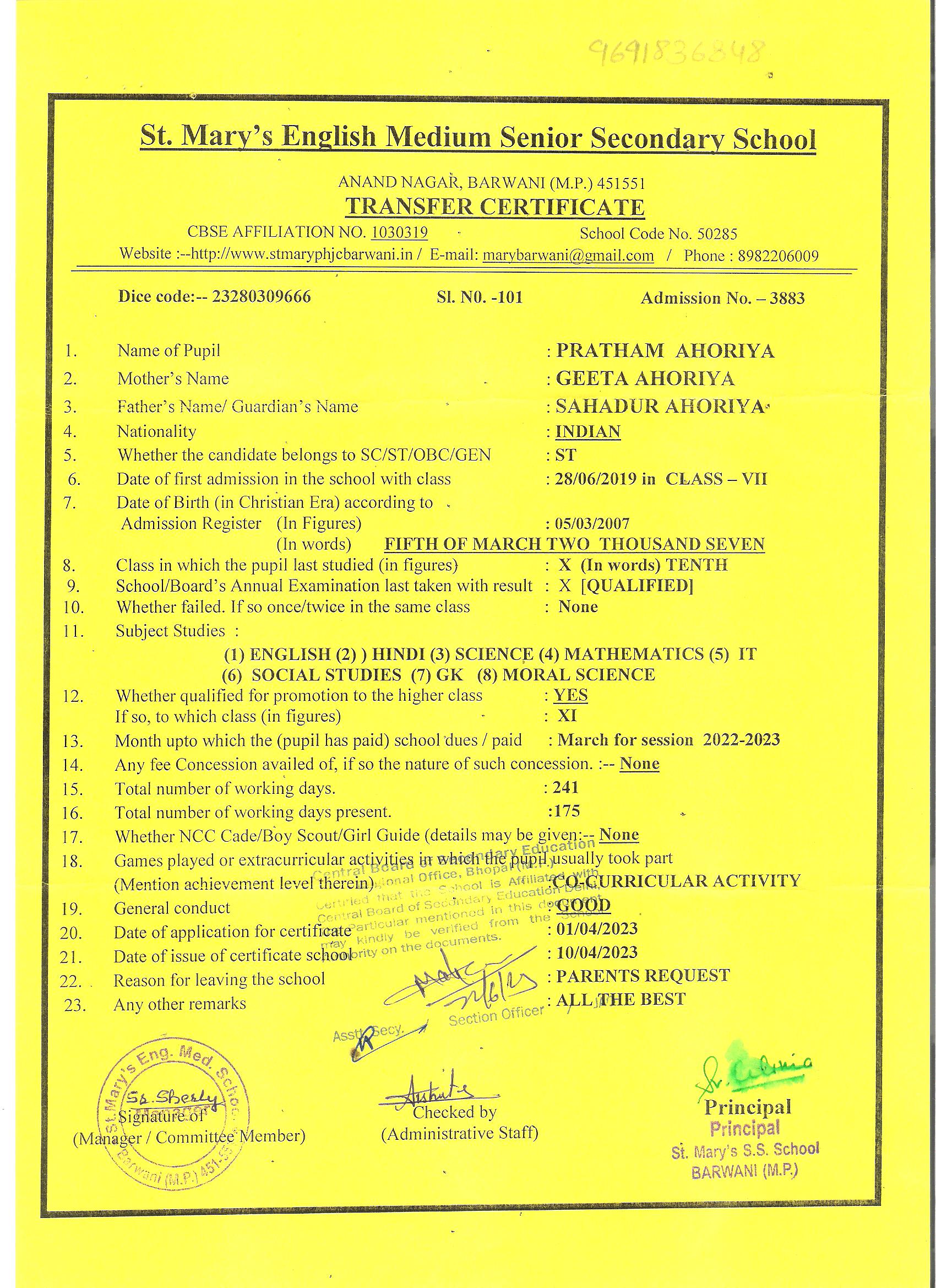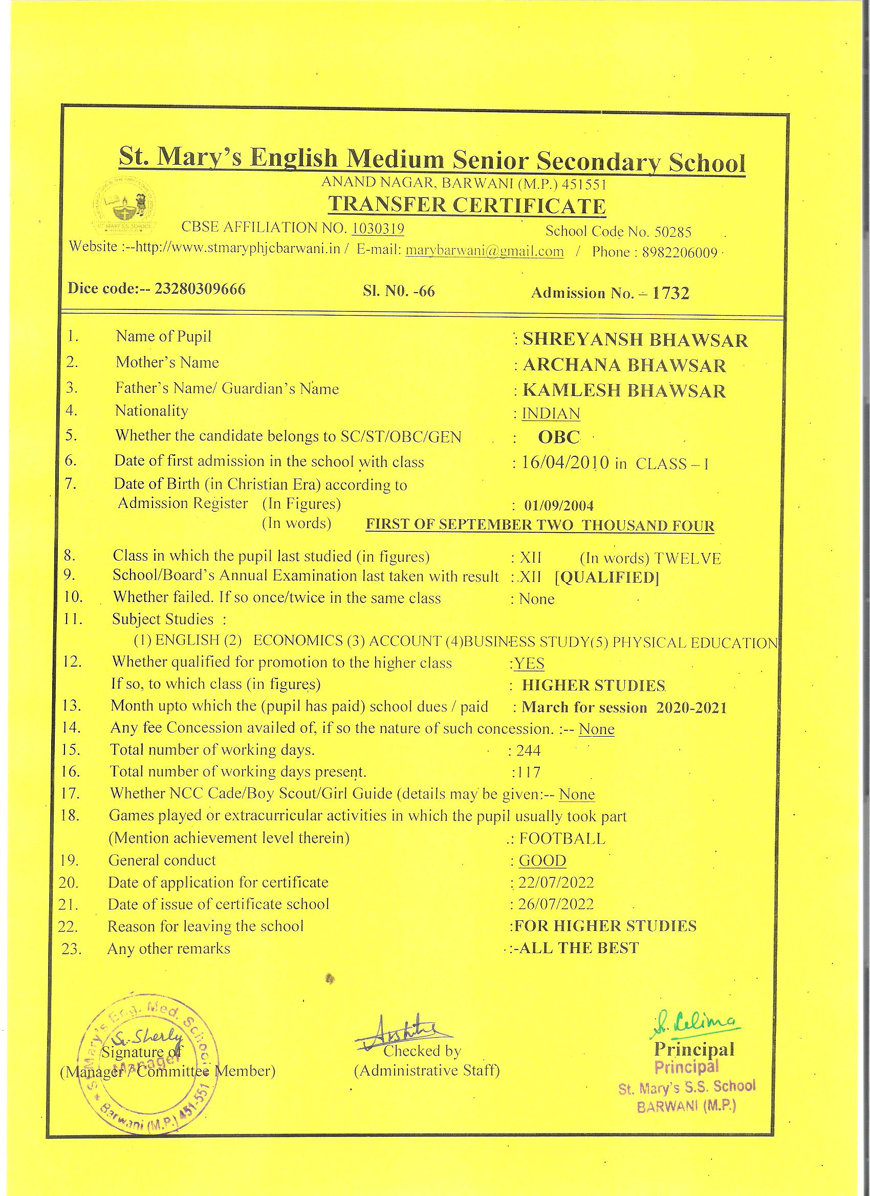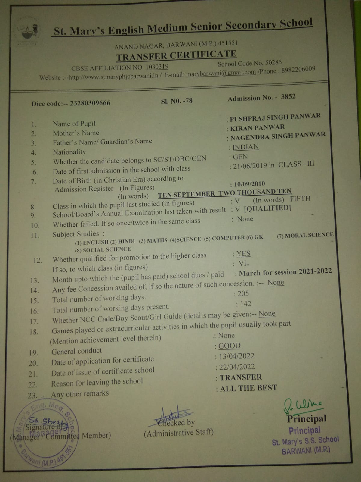 | 12 | Himanshu Sonwane | XII | View | Download |