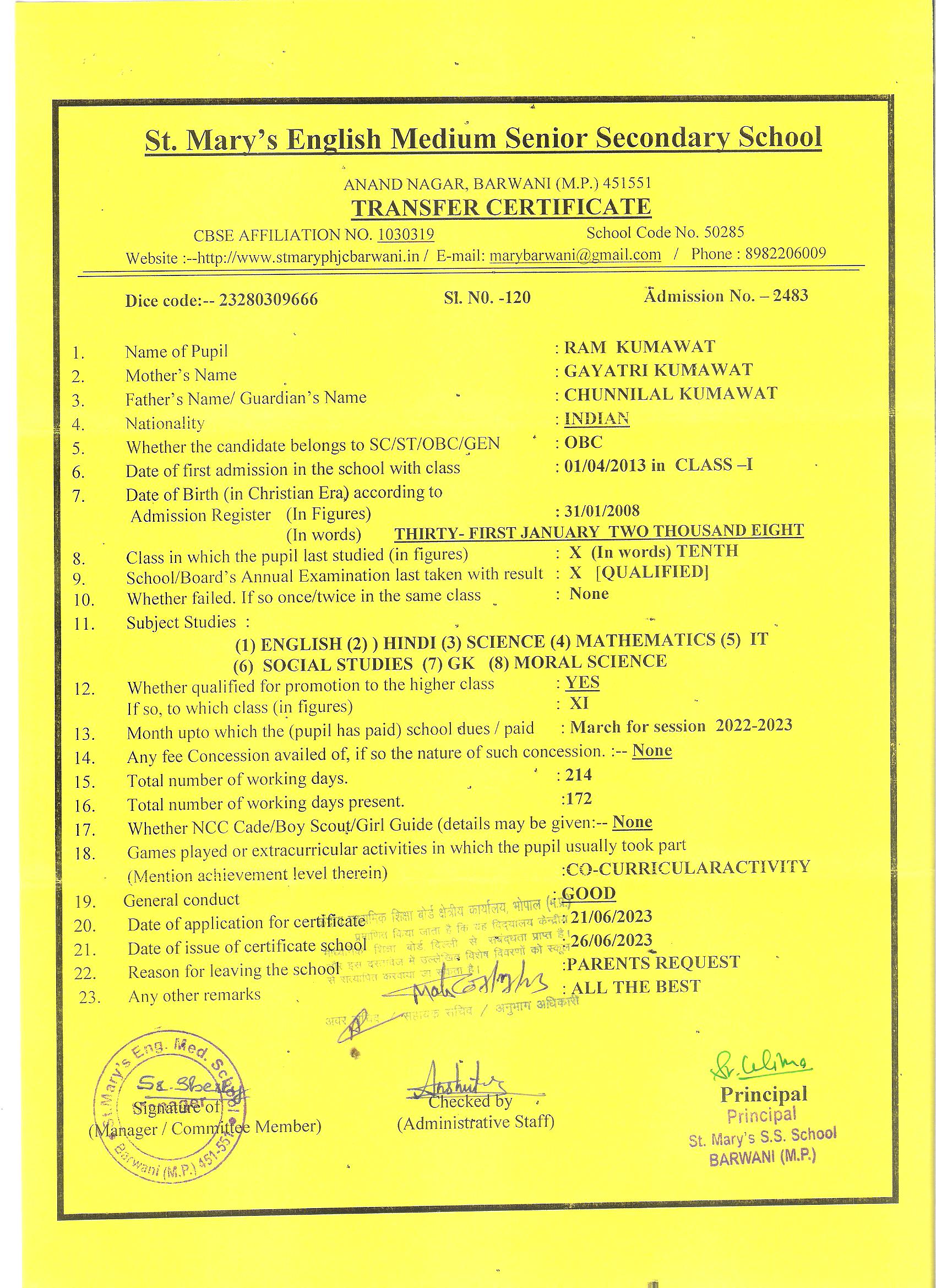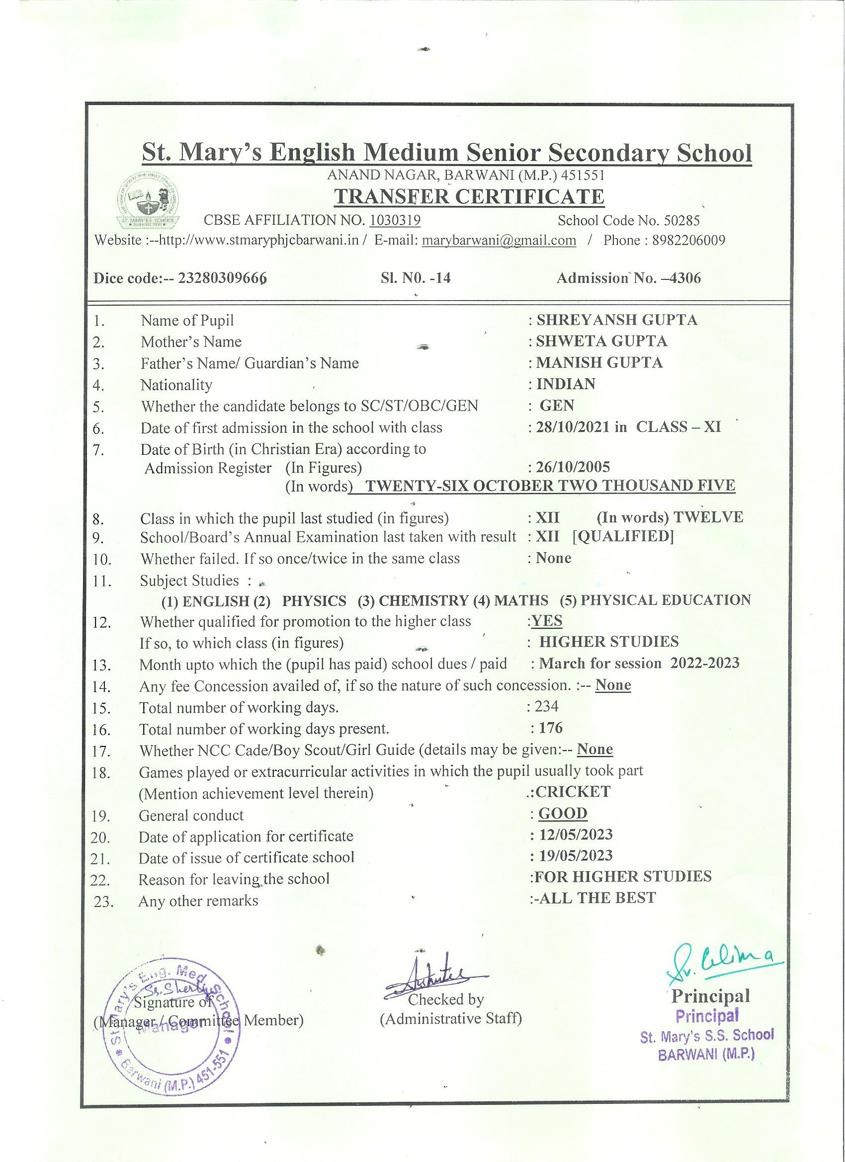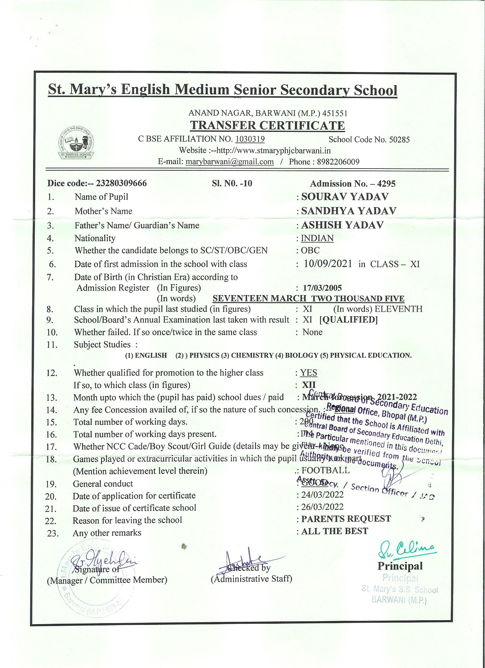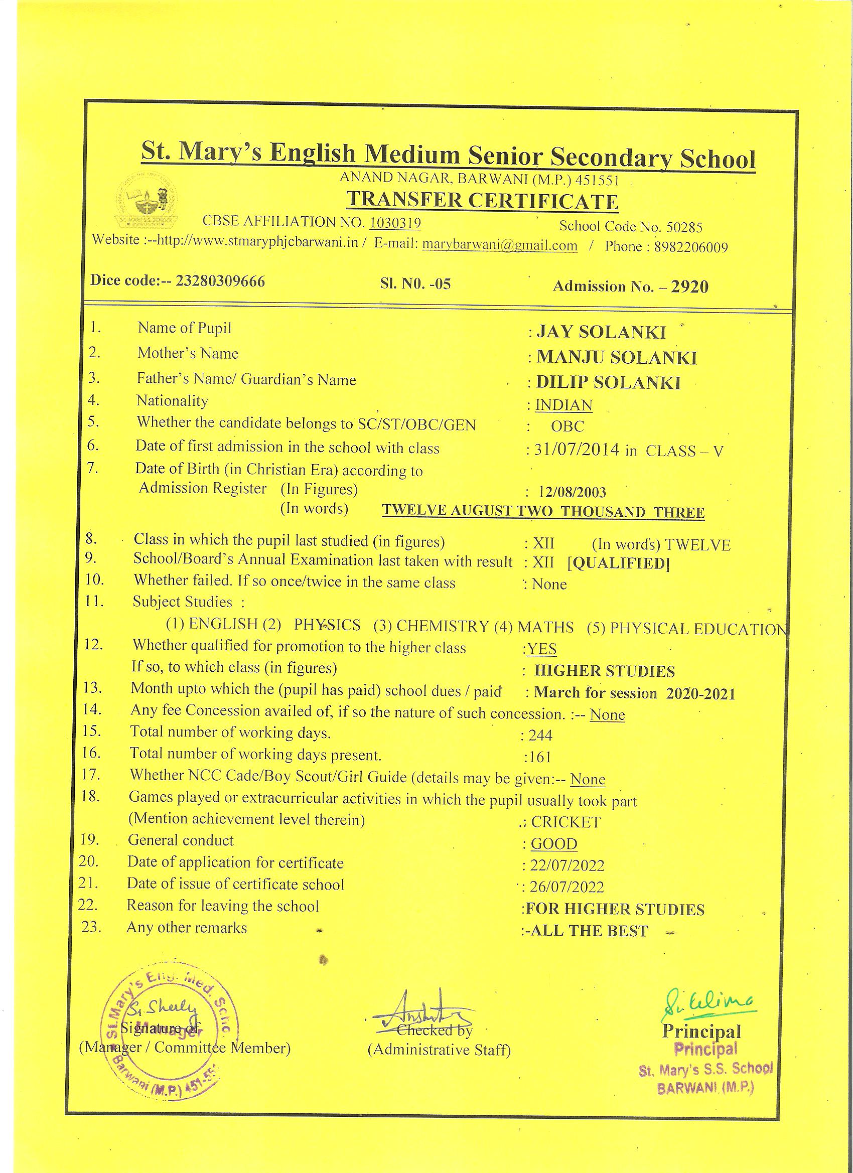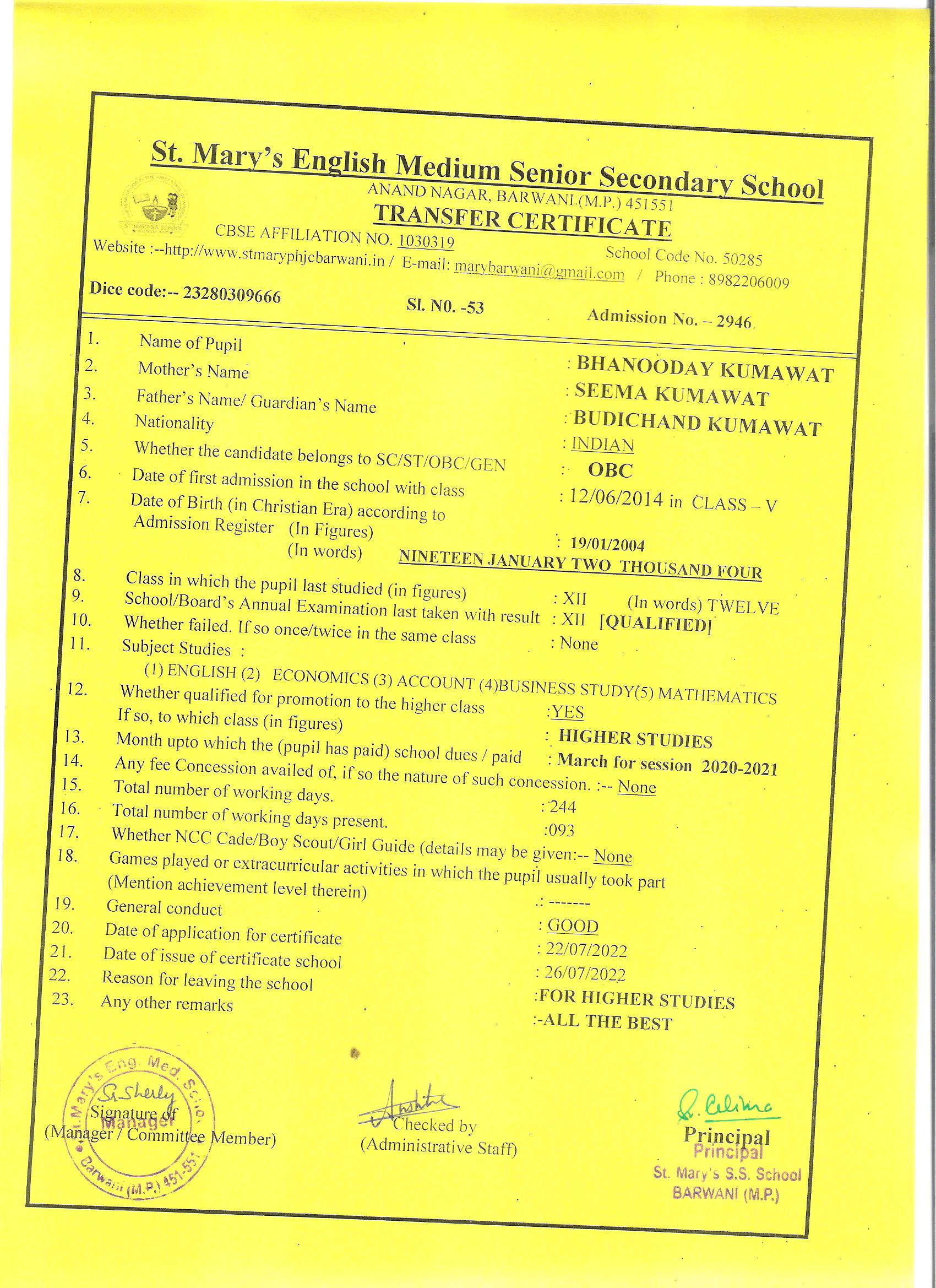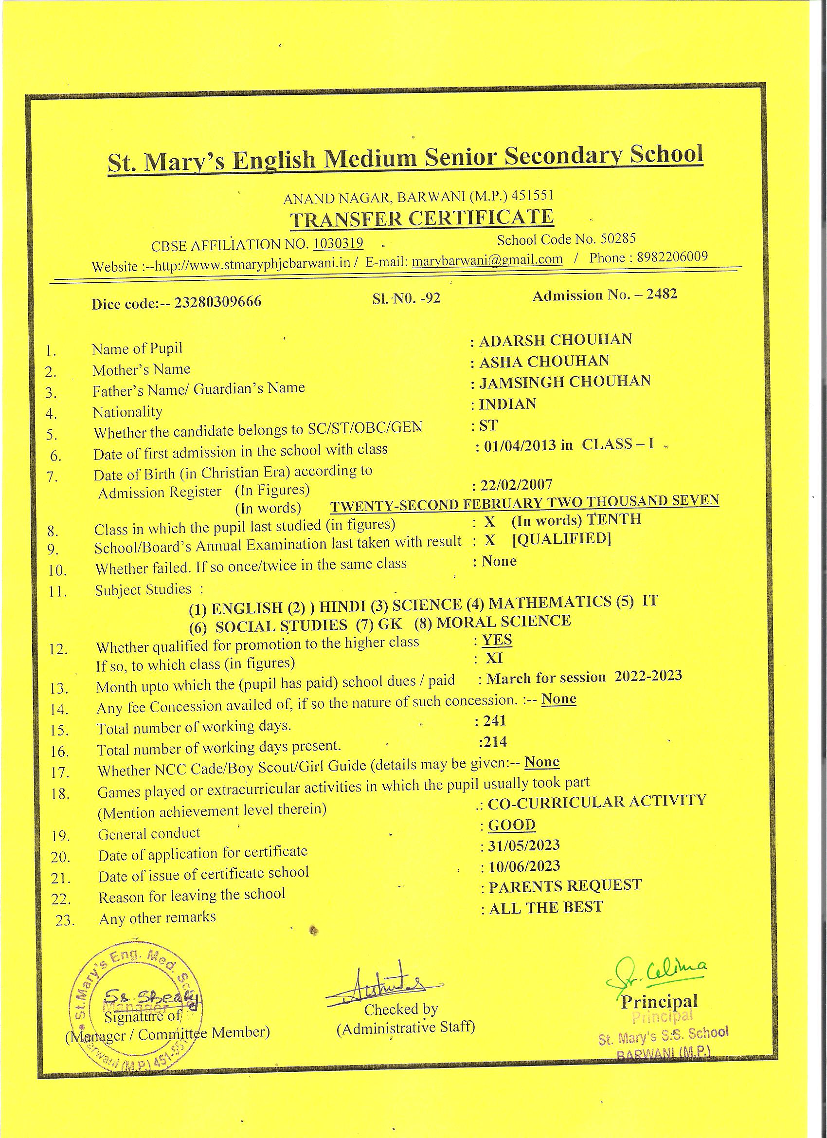 | 12 | Himanshu Sonwane | XII | View | Download |