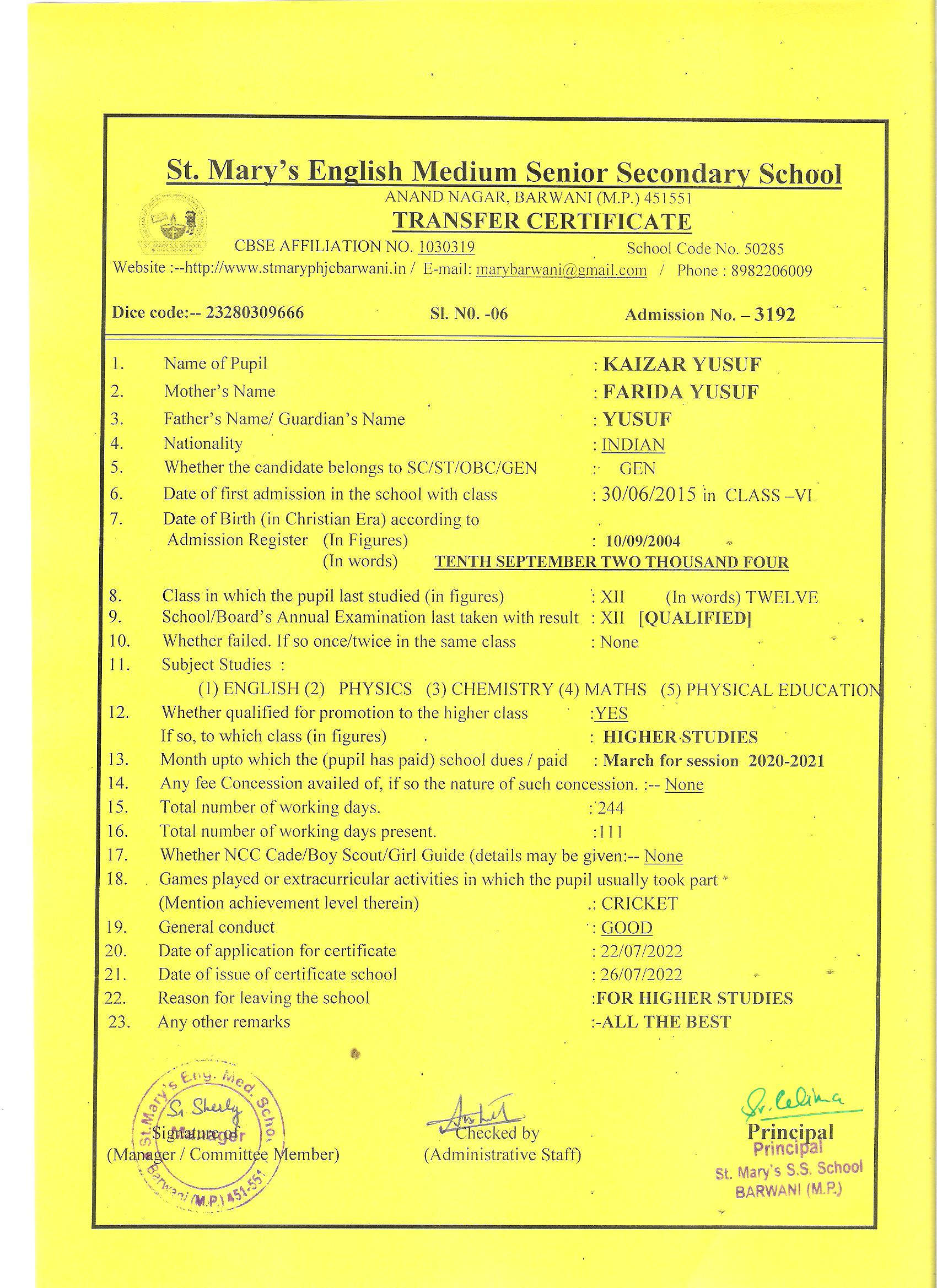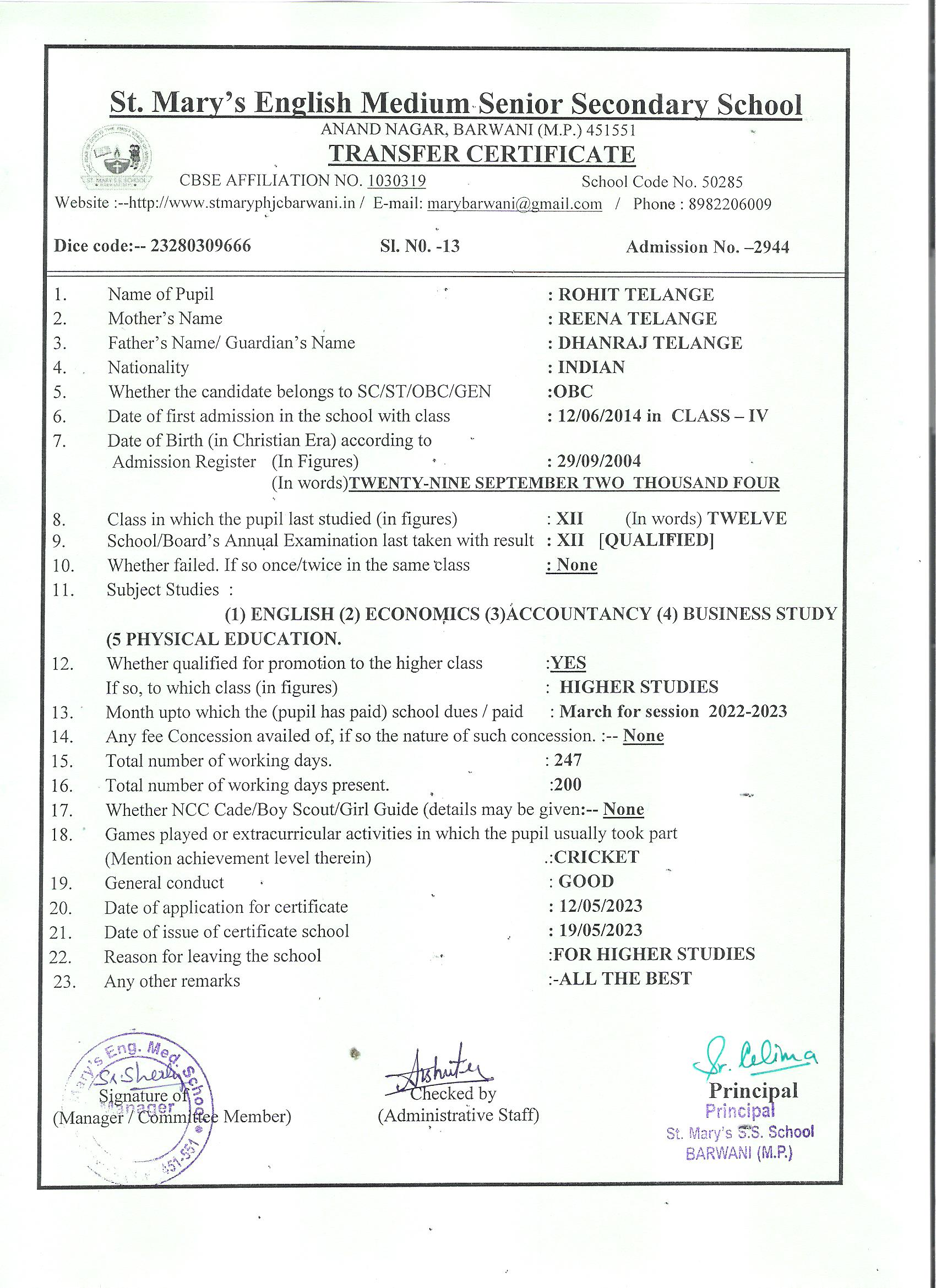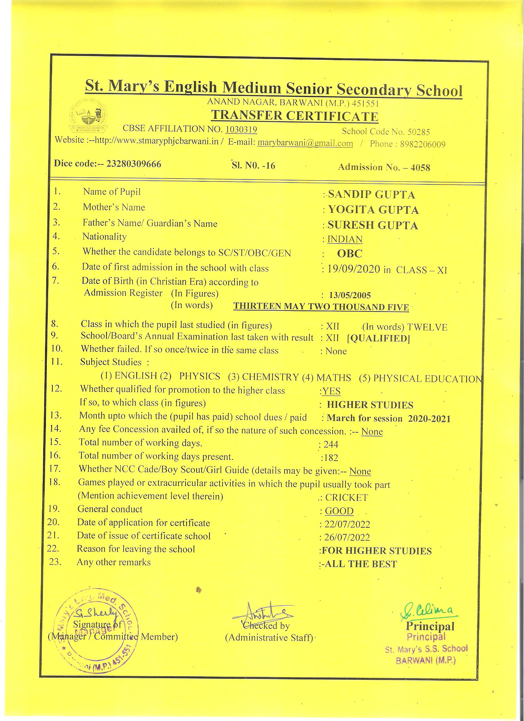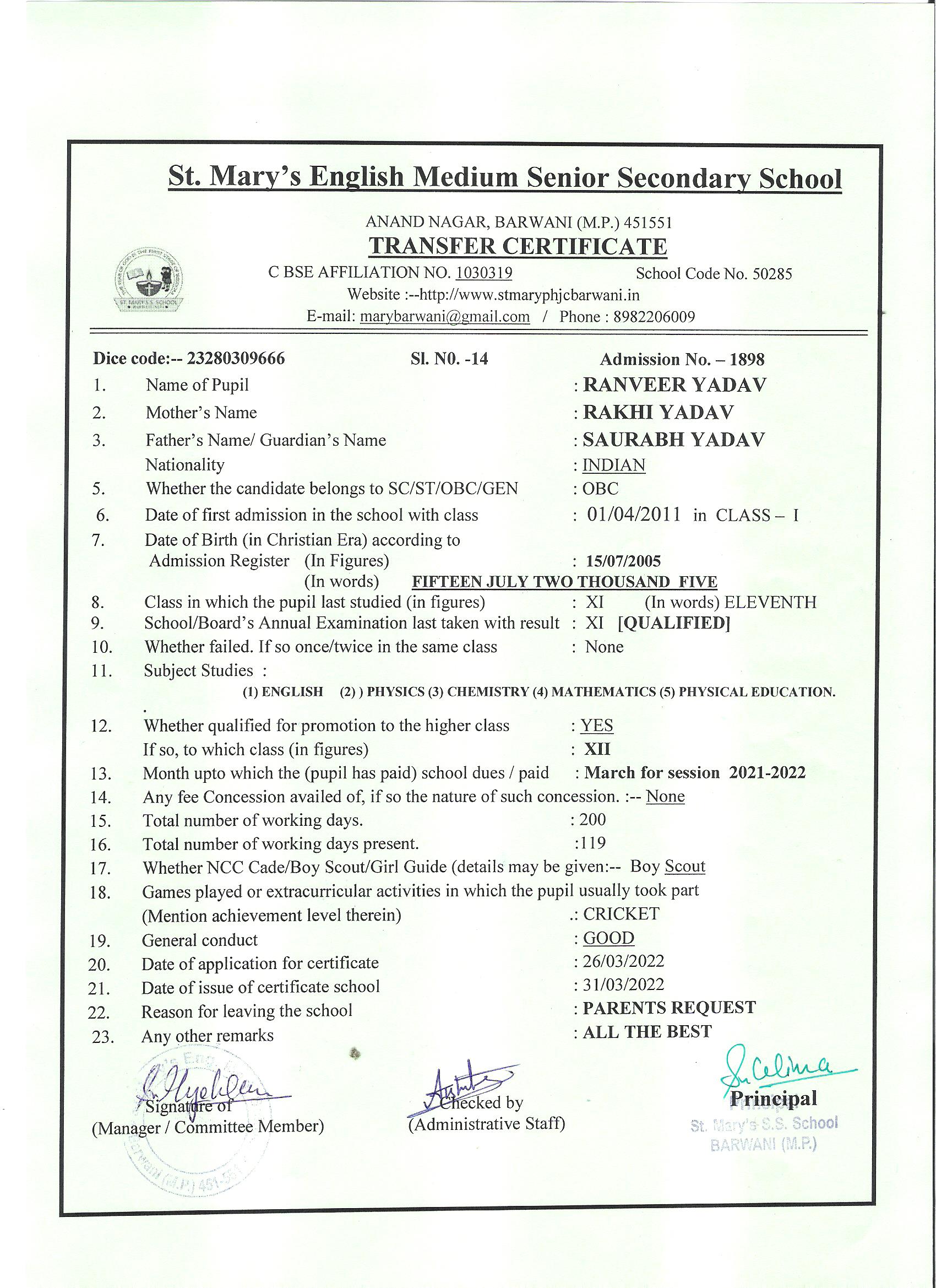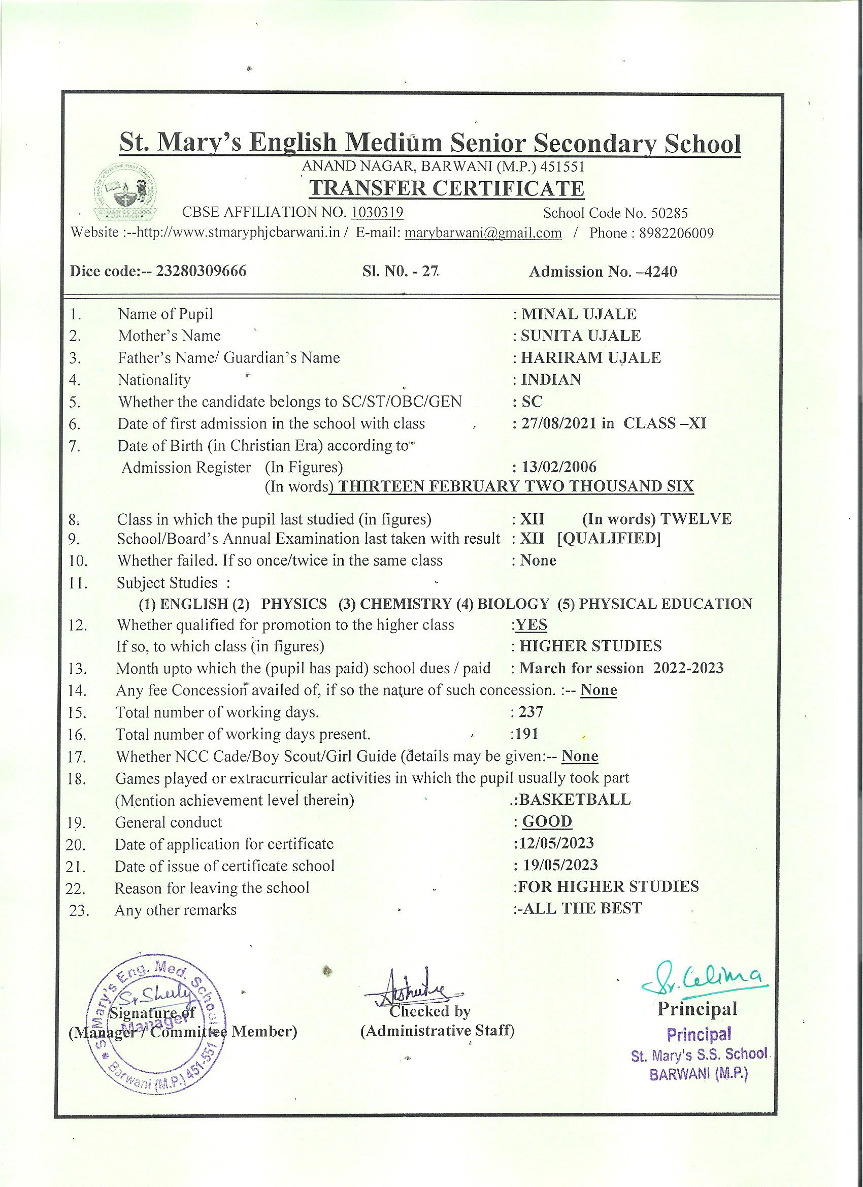 | 12 | Himanshu Sonwane | XII | View | Download |