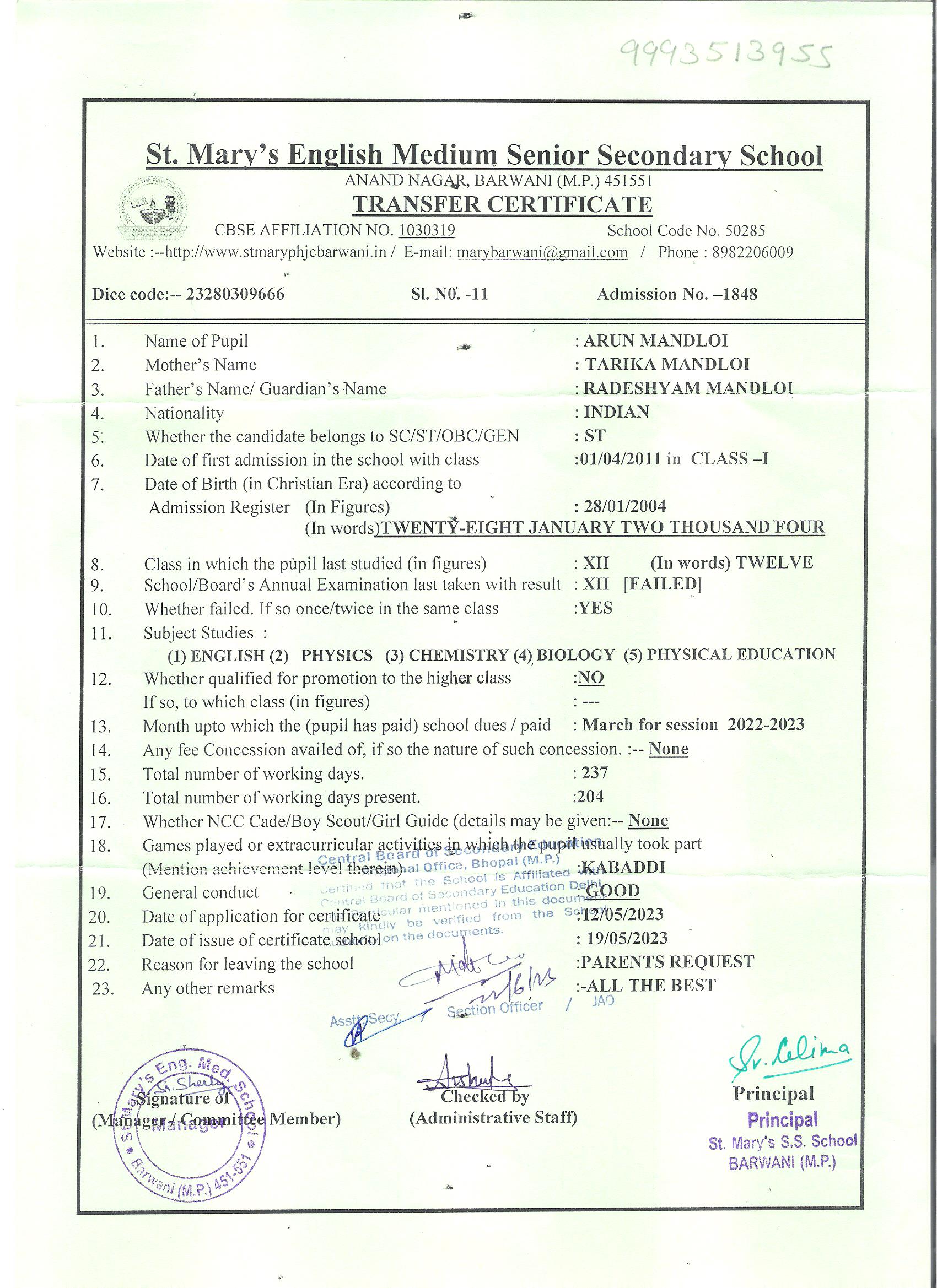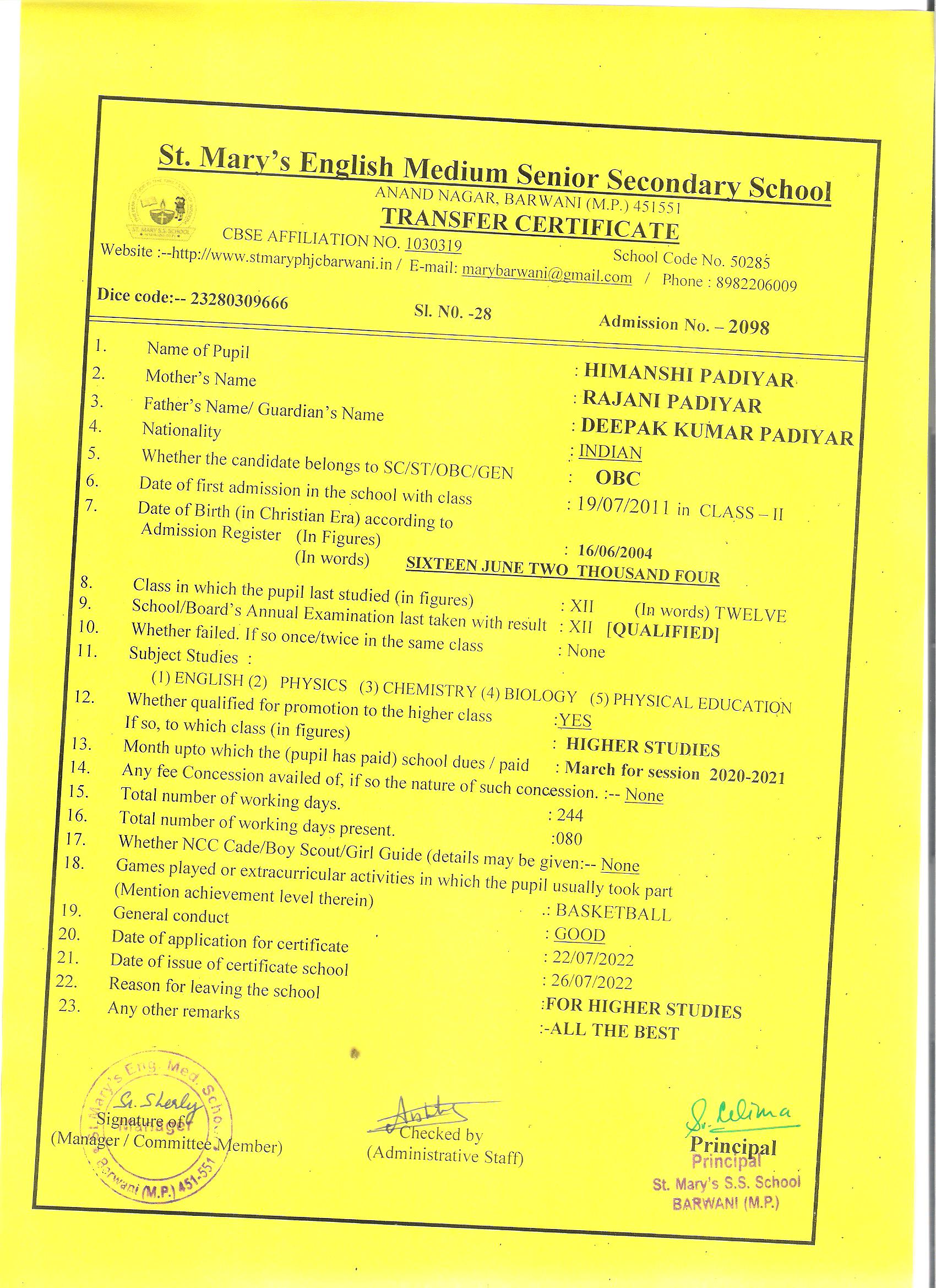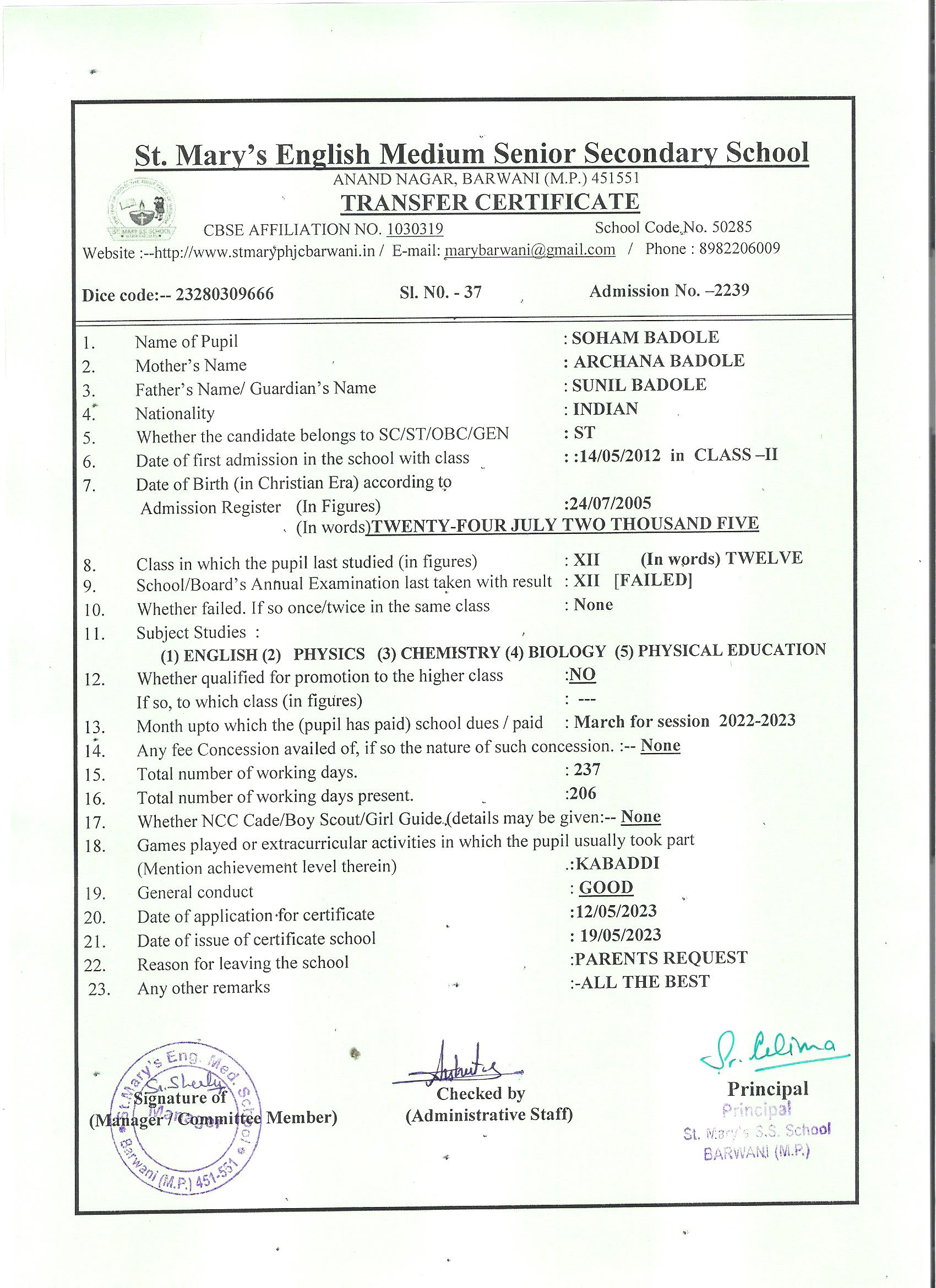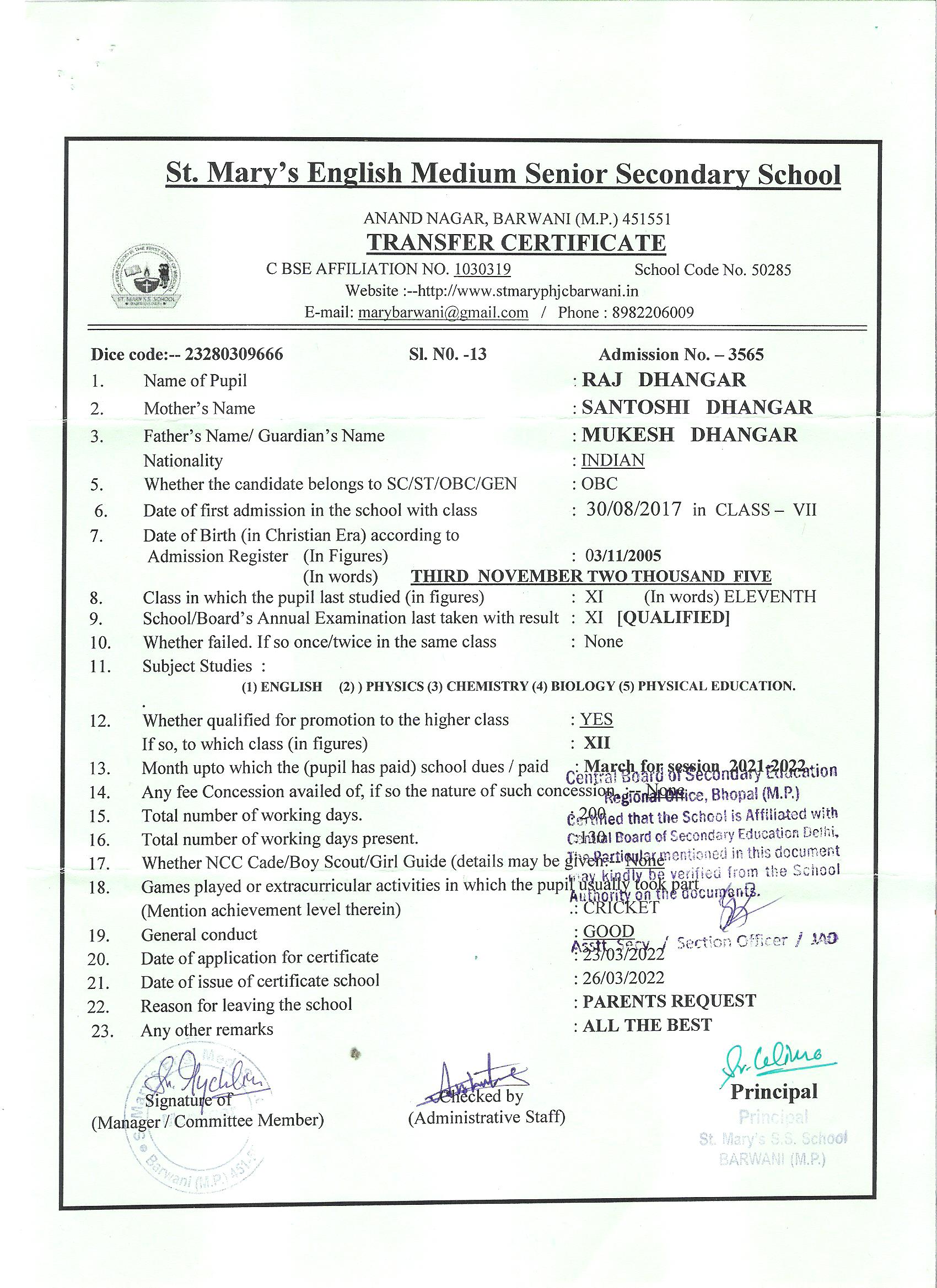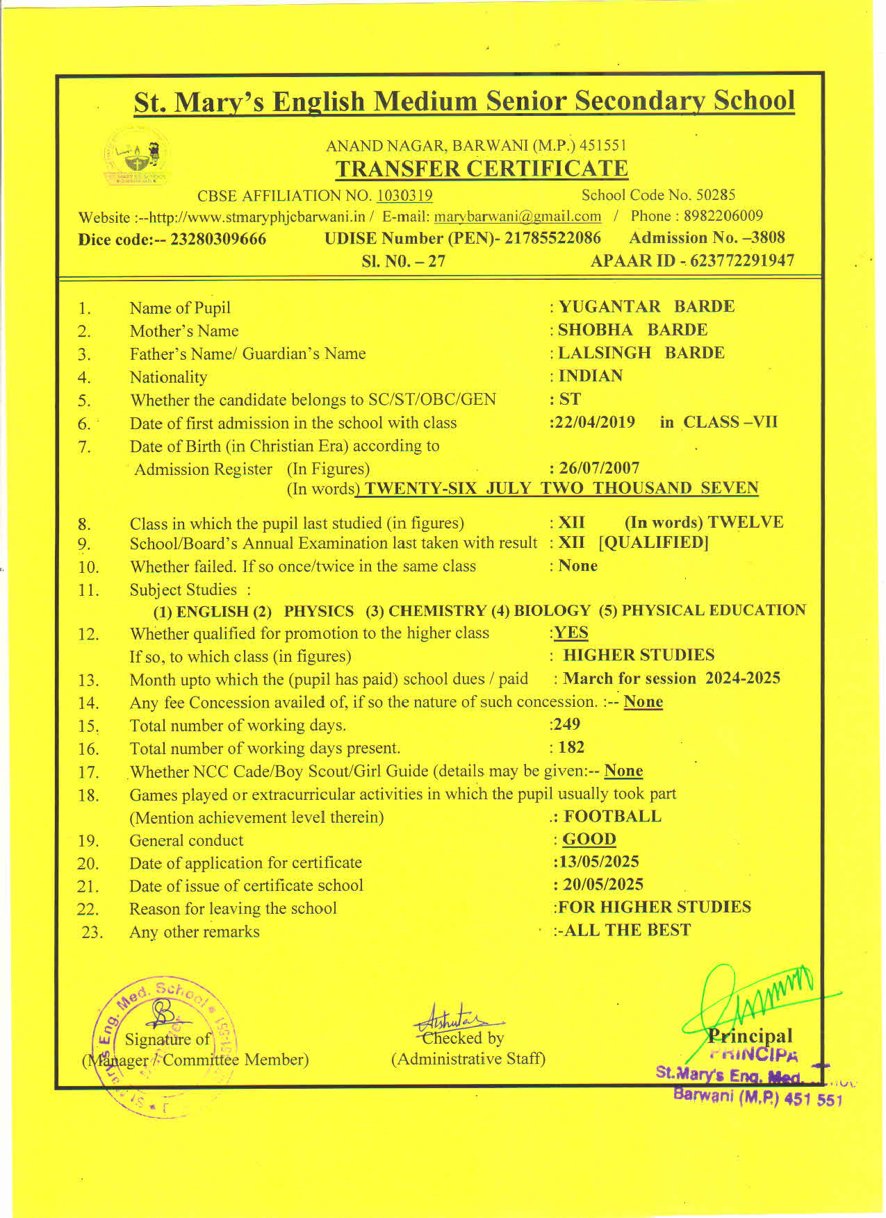 | 12 | Himanshu Sonwane | XII | View | Download |