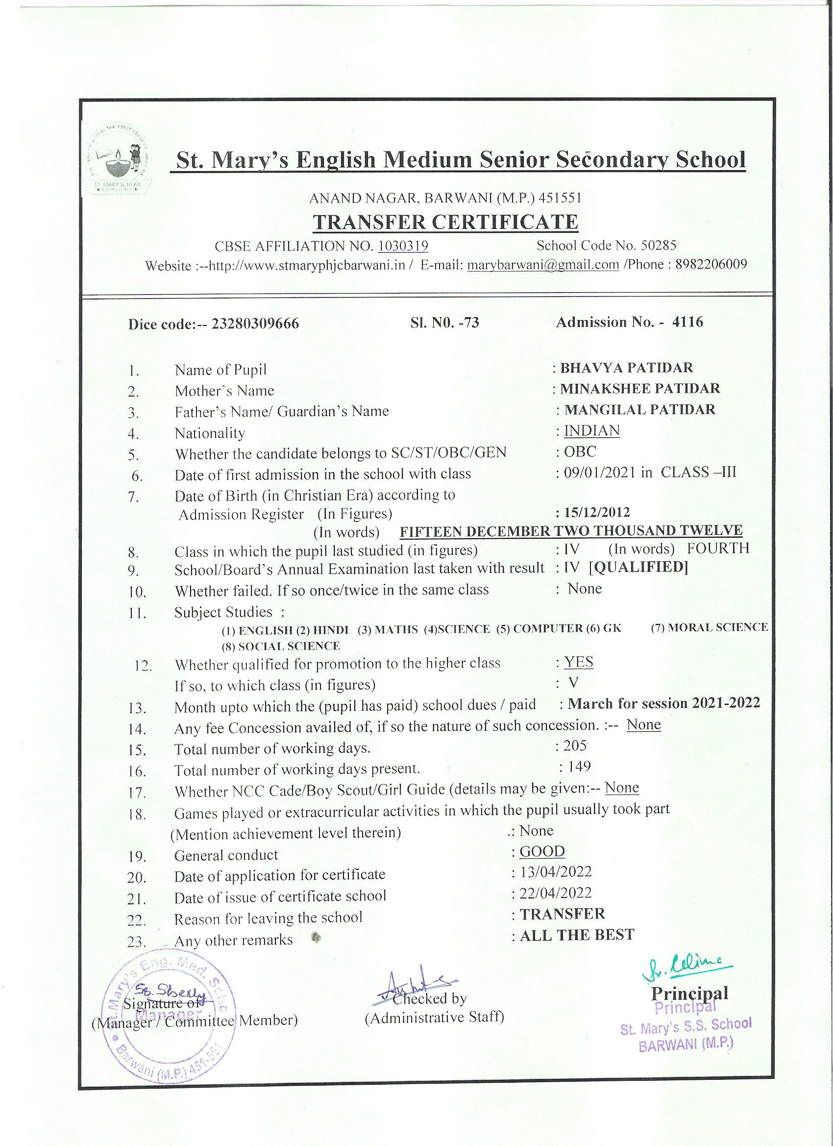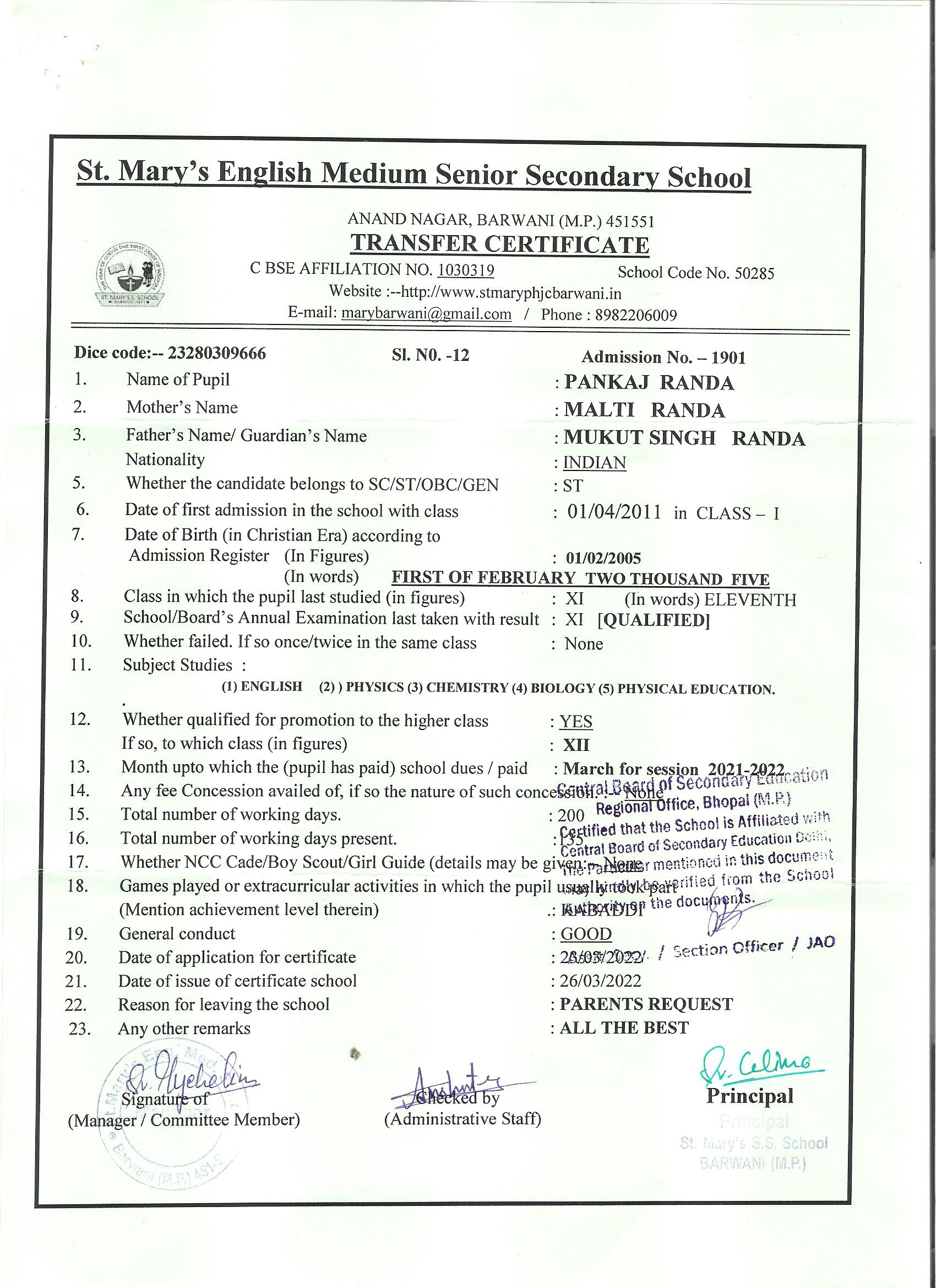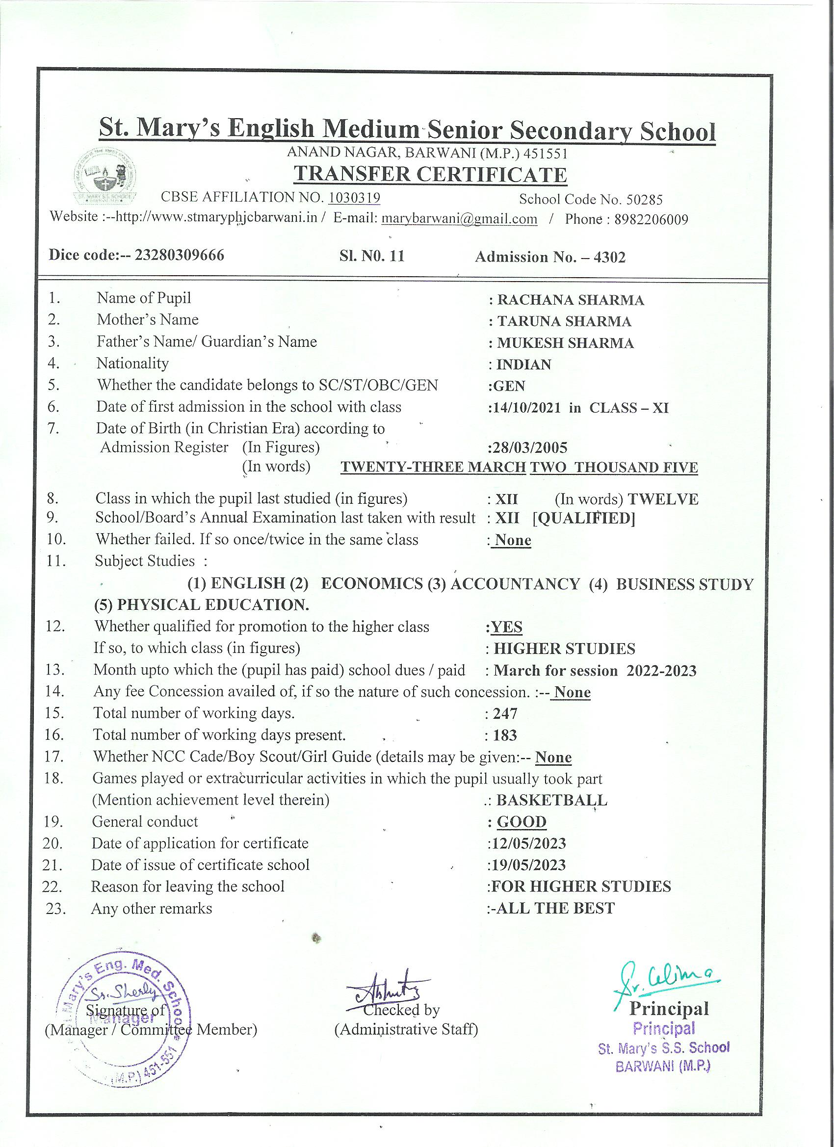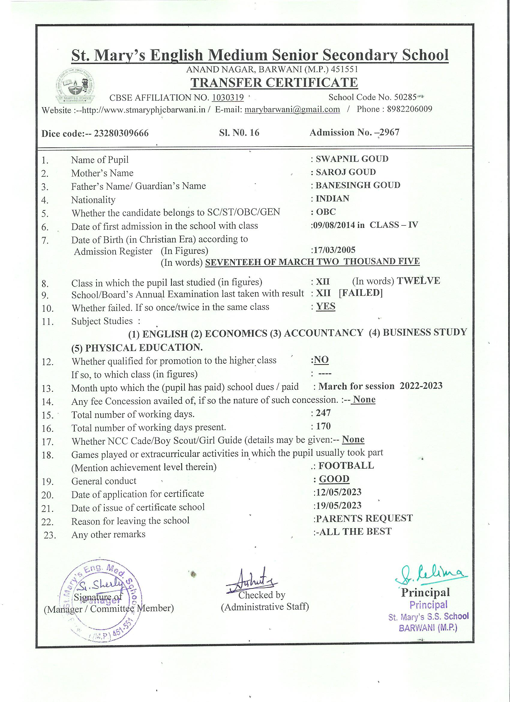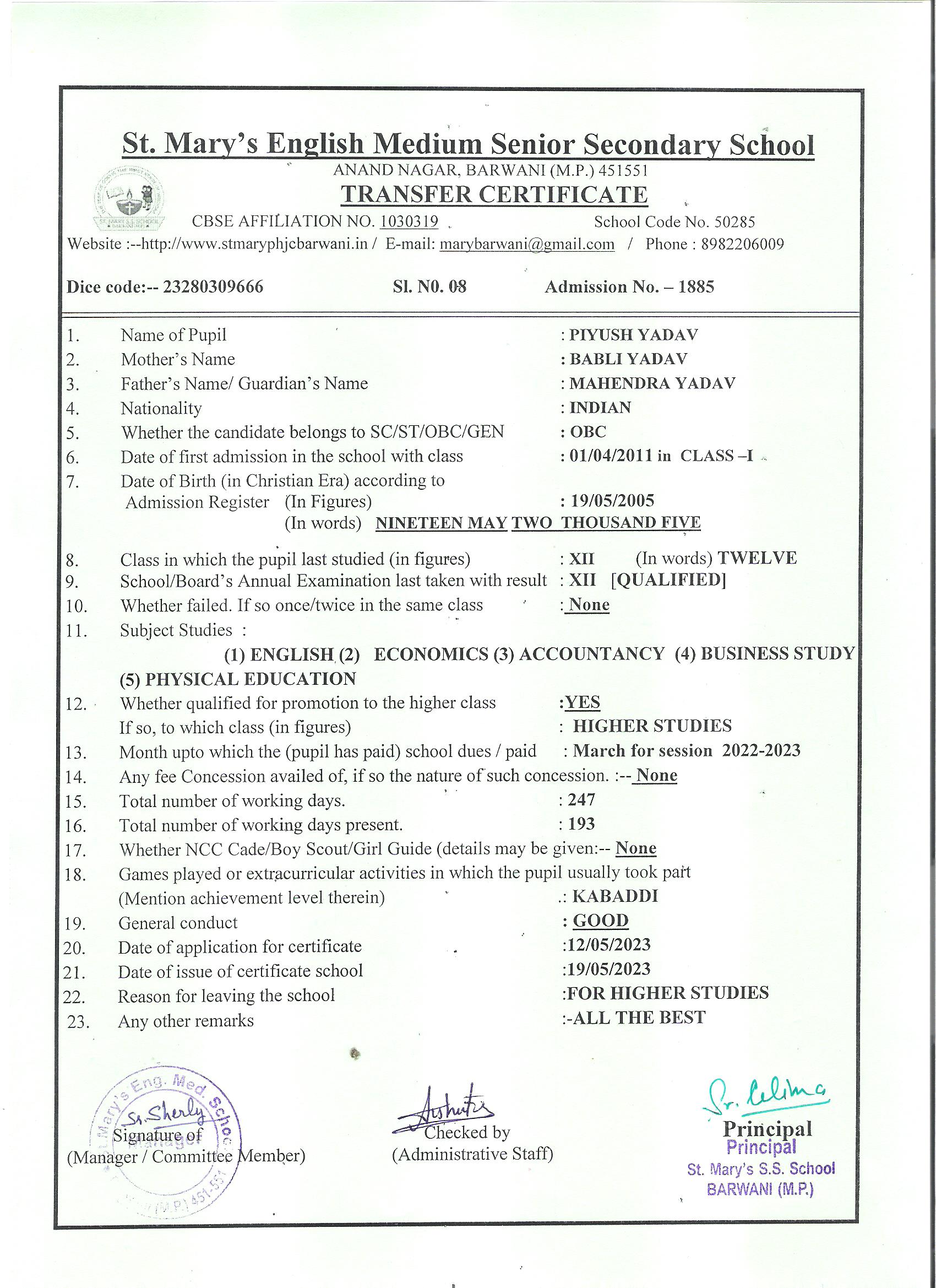 | 12 | Himanshu Sonwane | XII | View | Download |