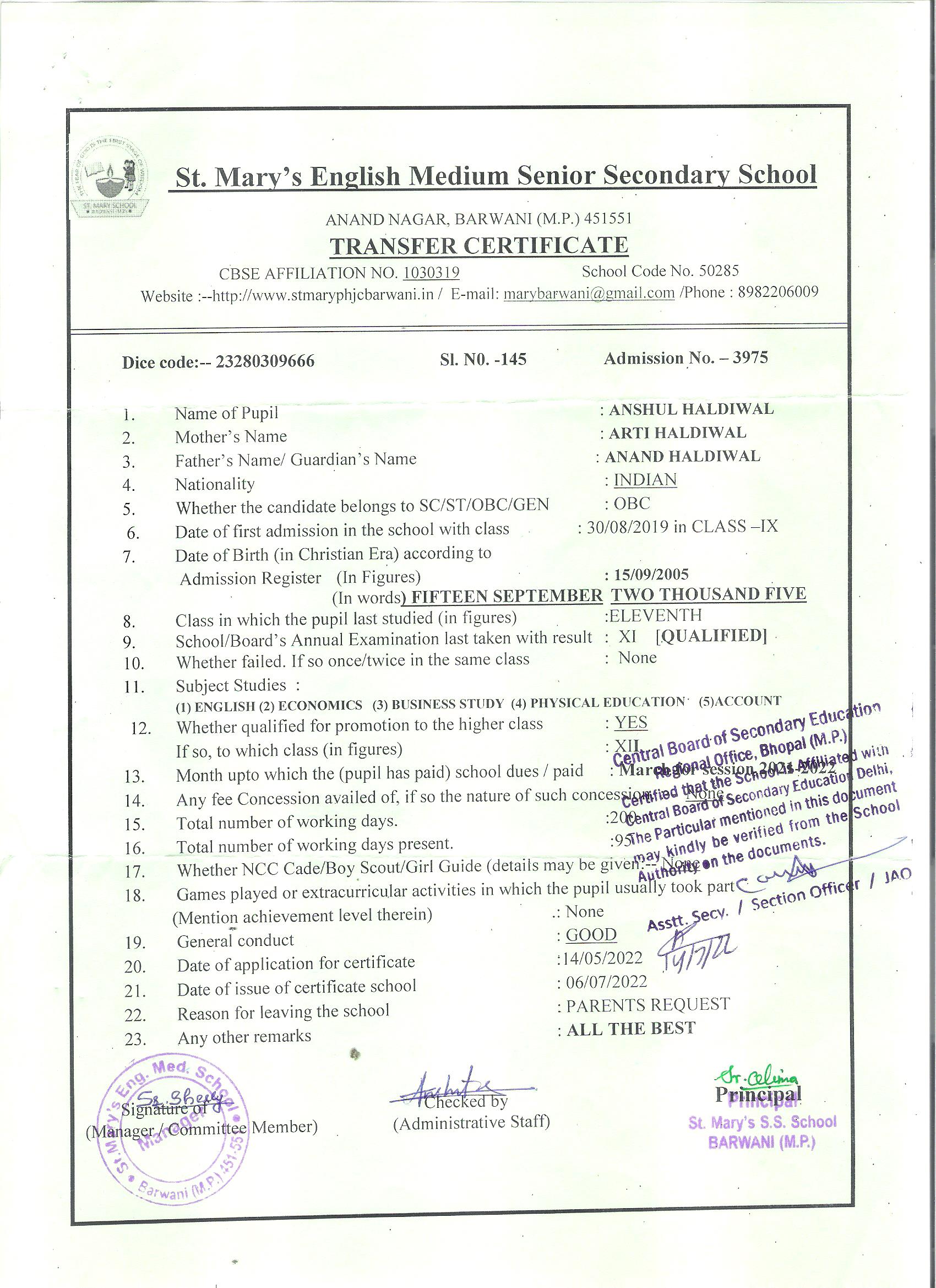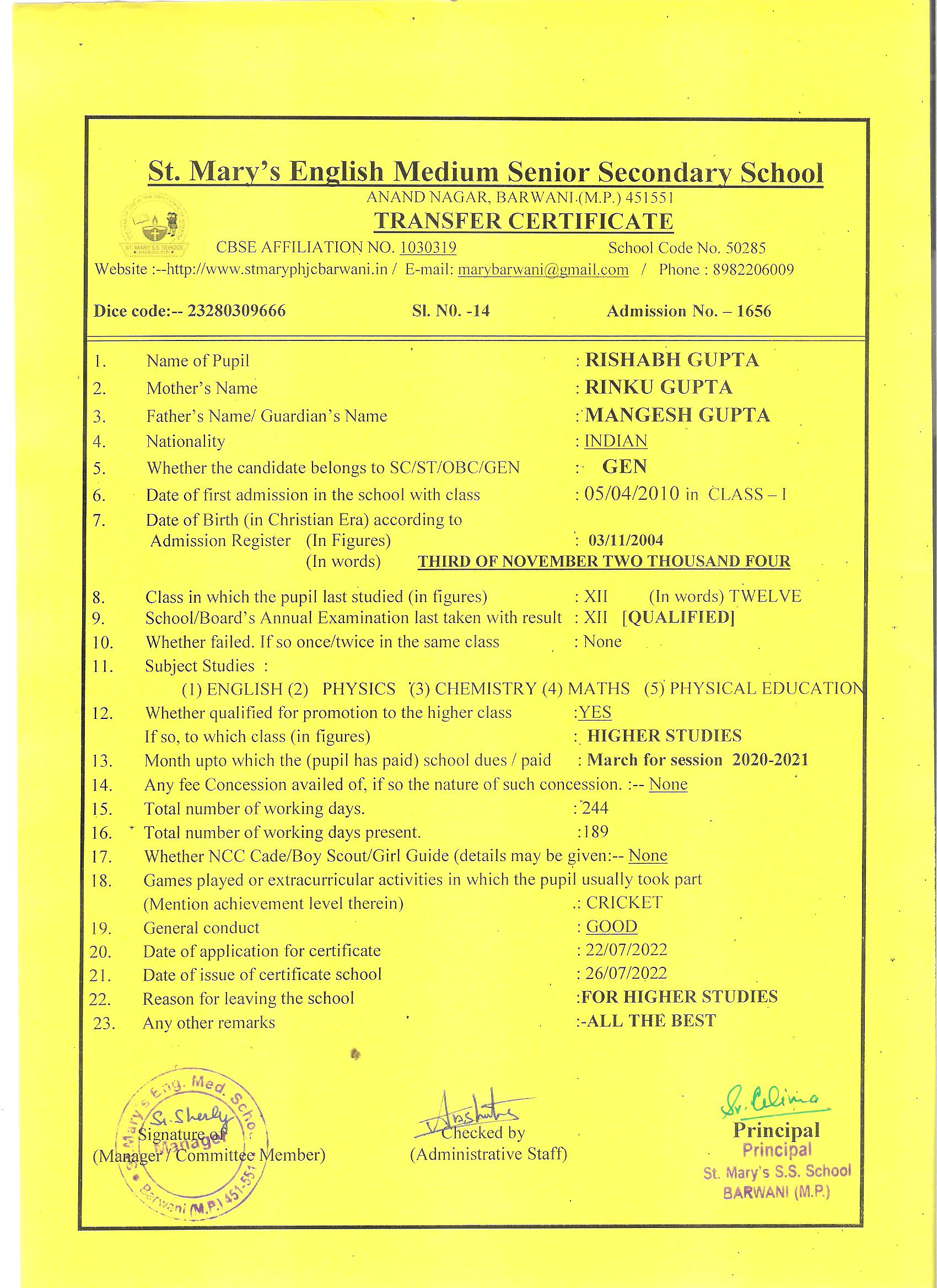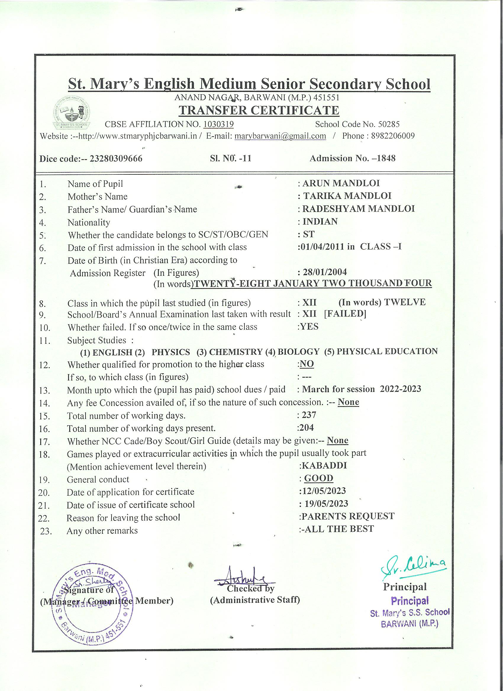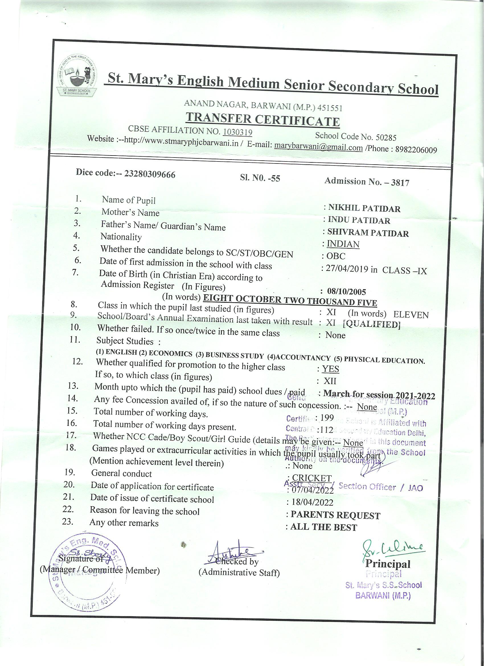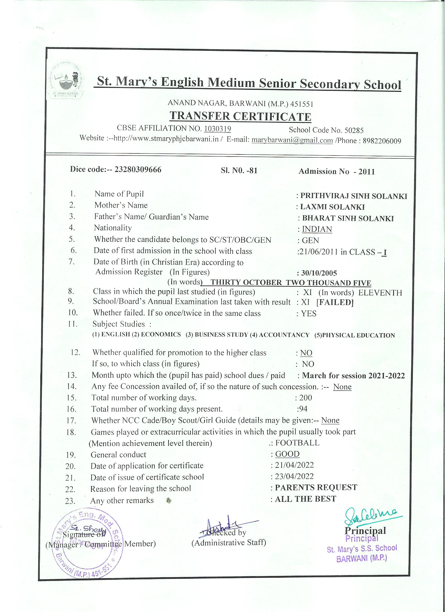 | 12 | Himanshu Sonwane | XII | View | Download |