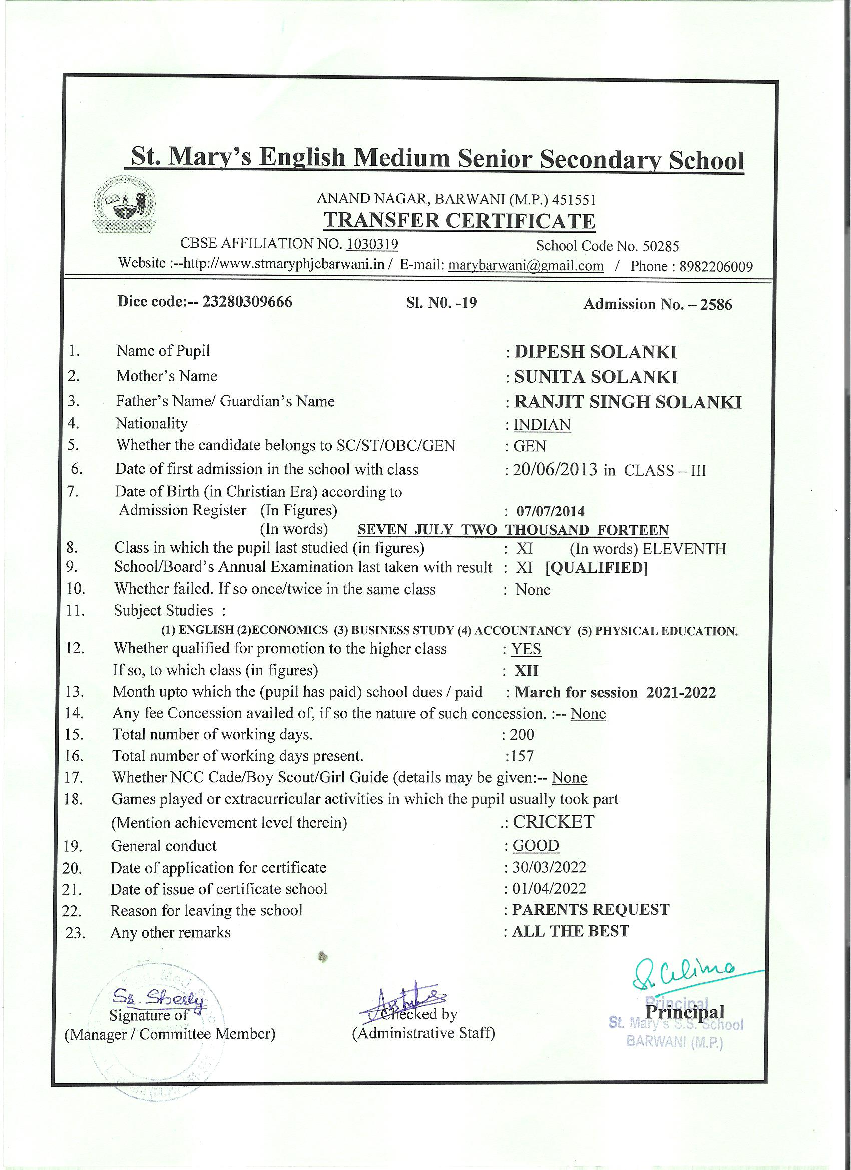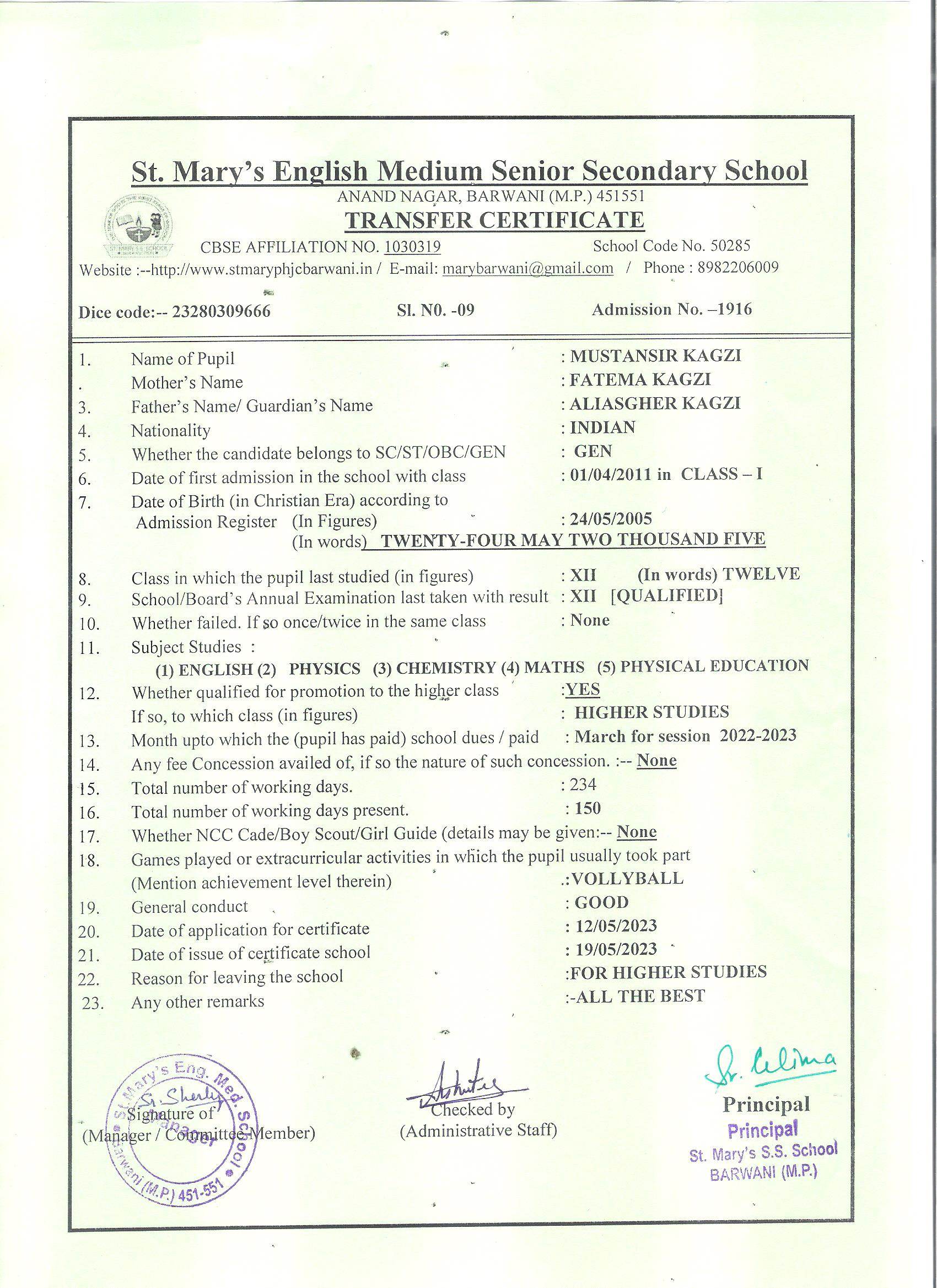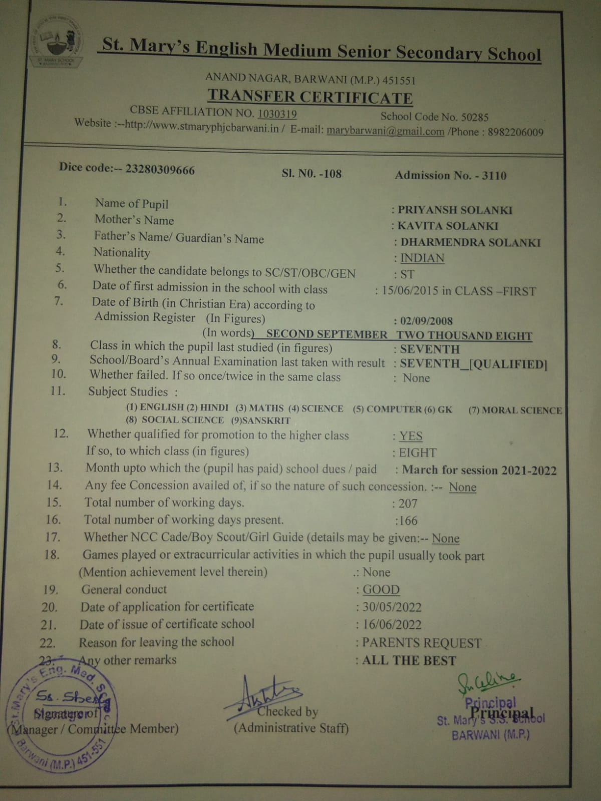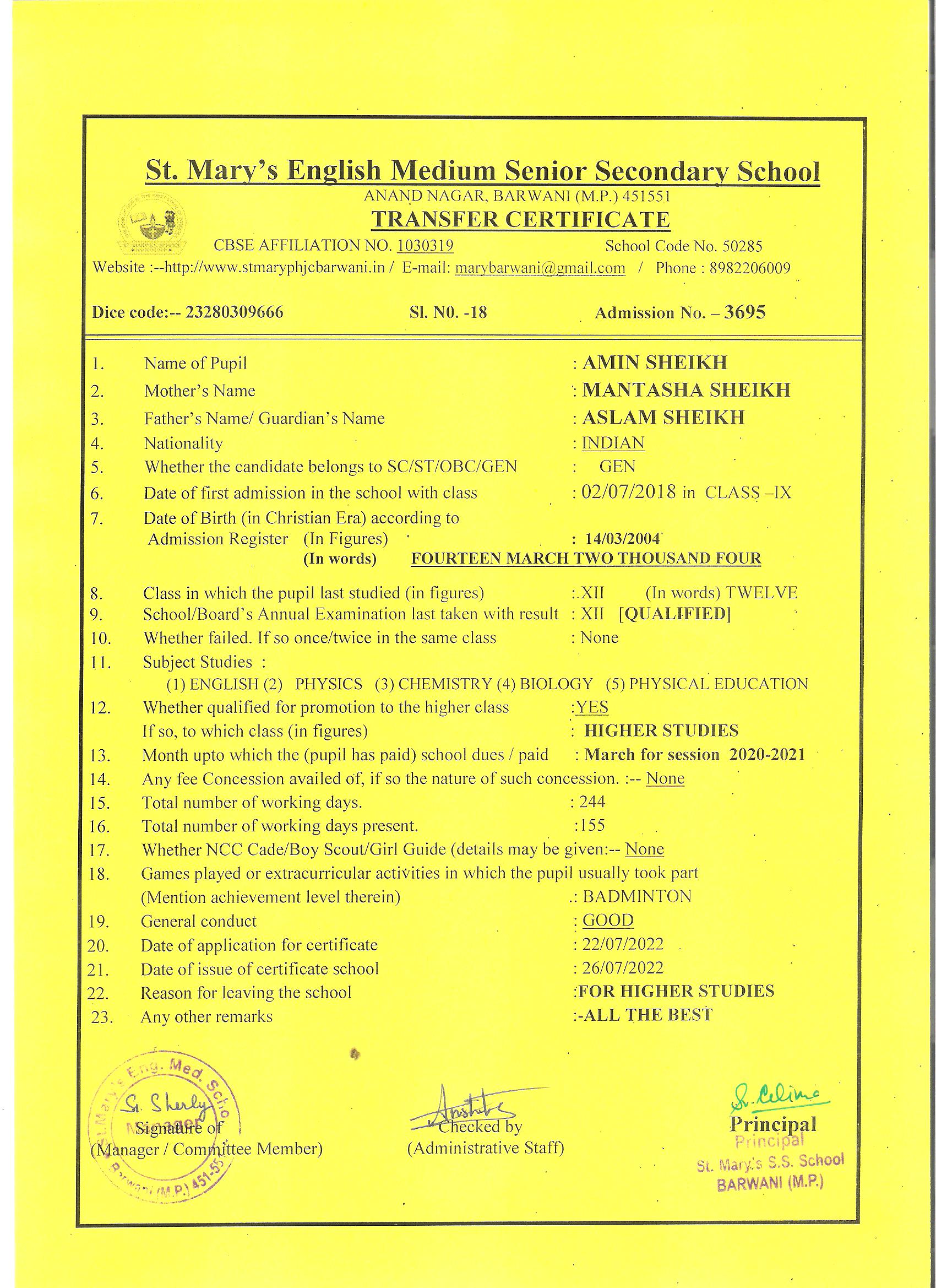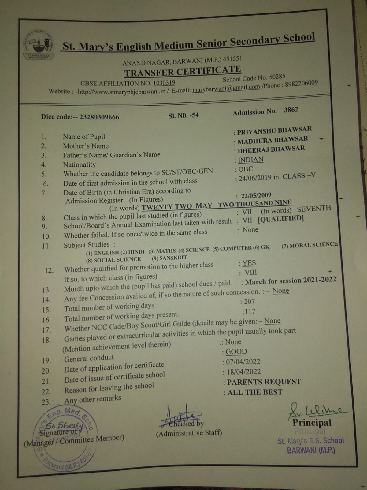 | 12 | Himanshu Sonwane | XII | View | Download |