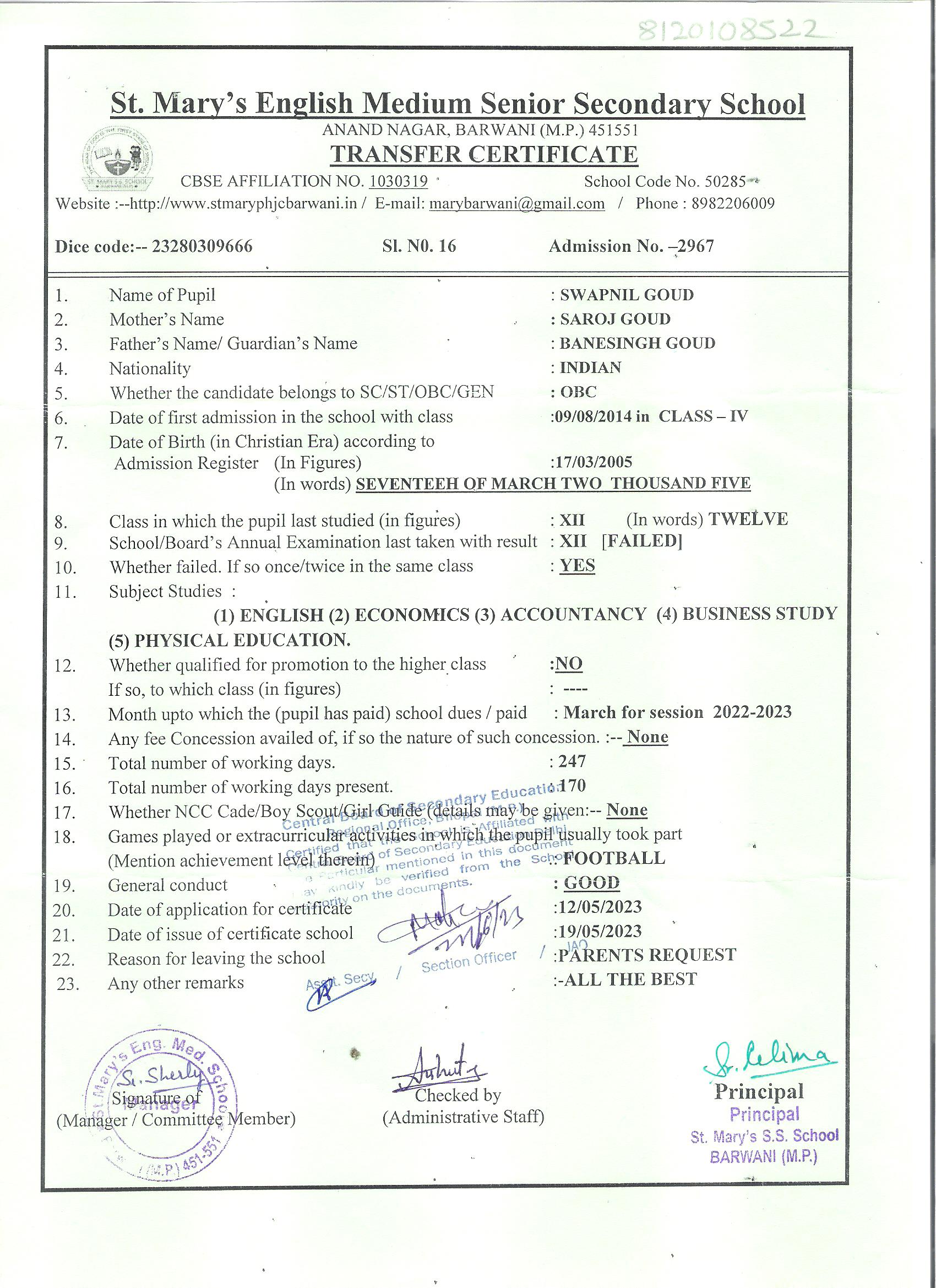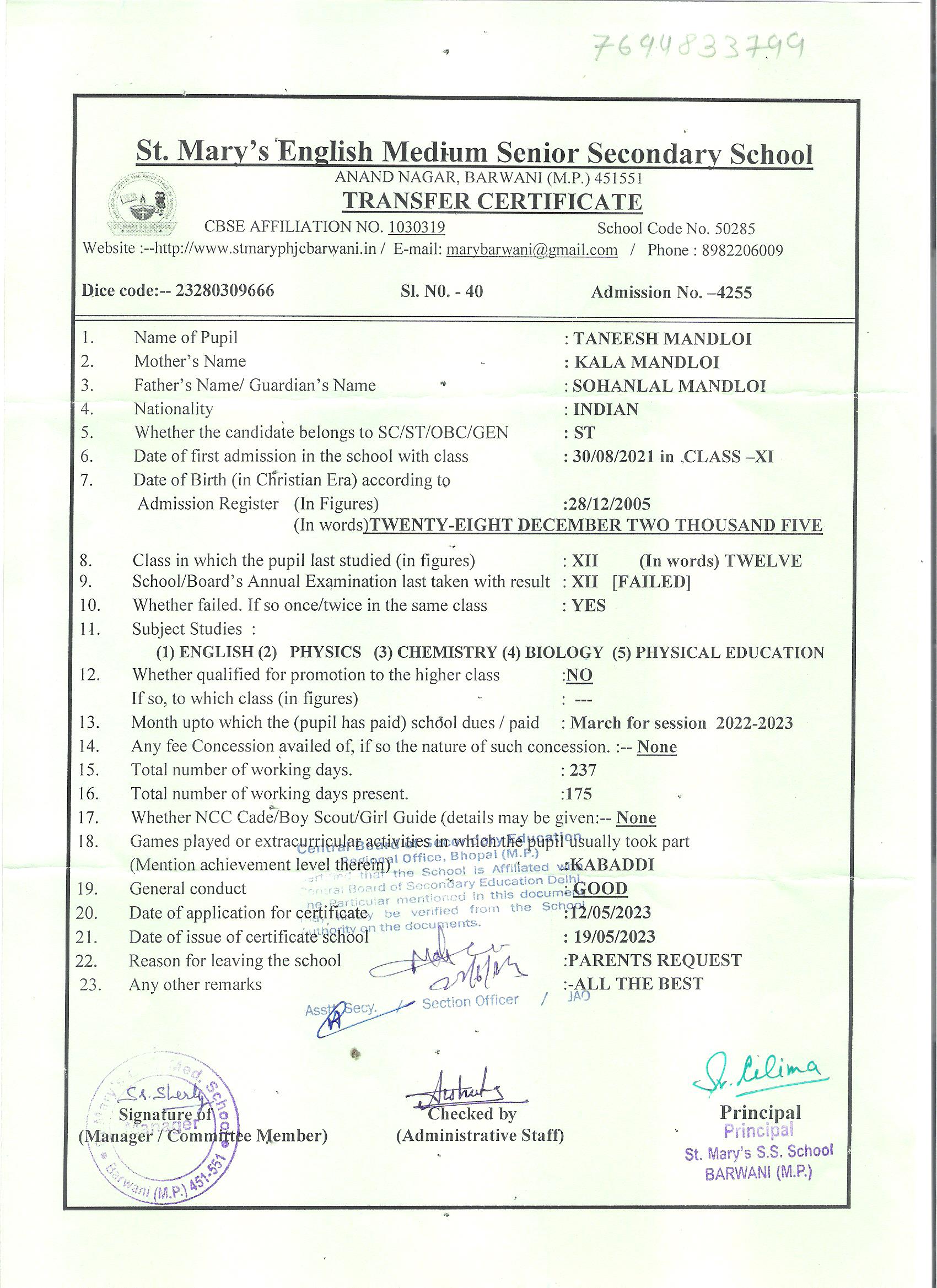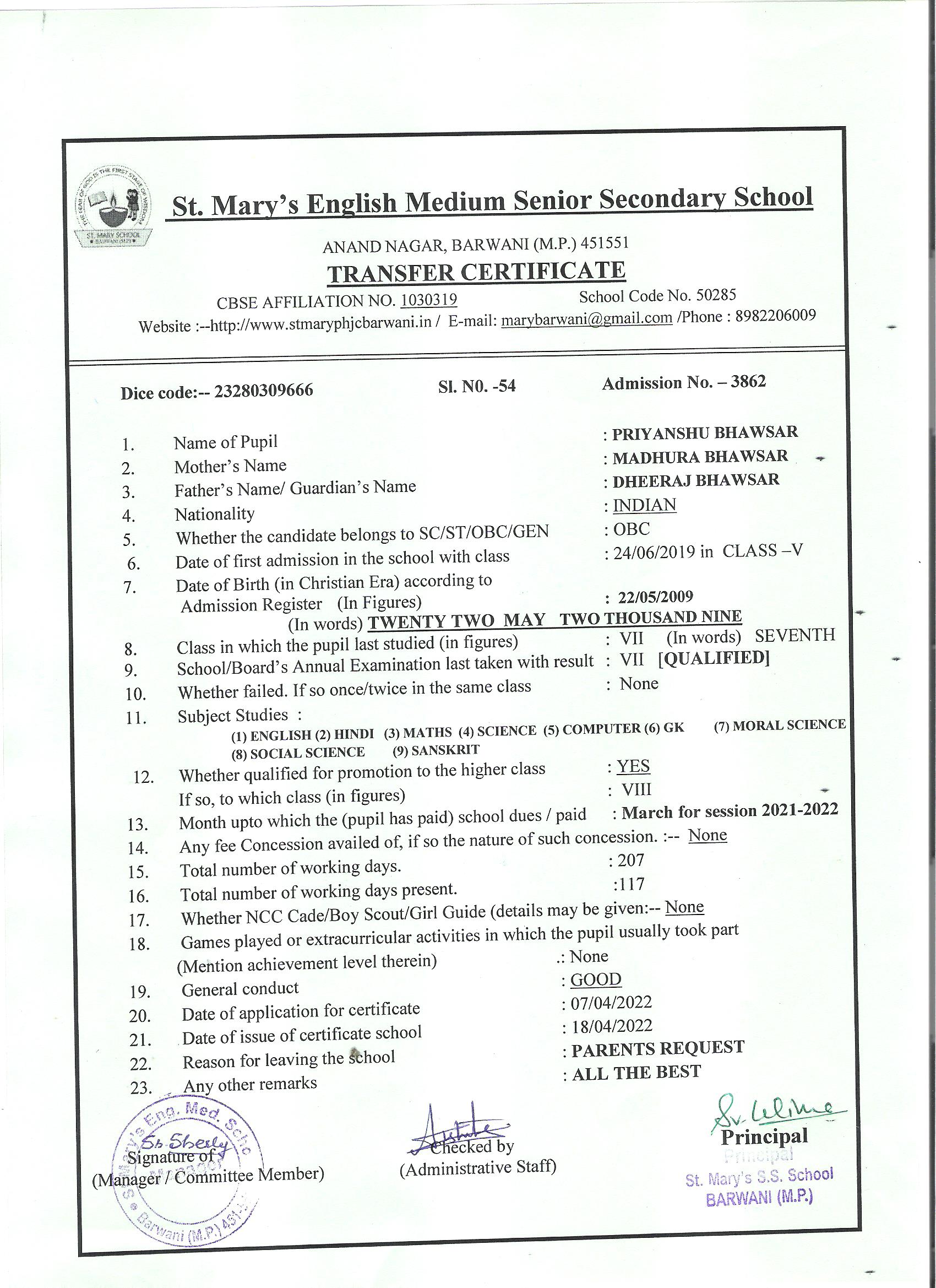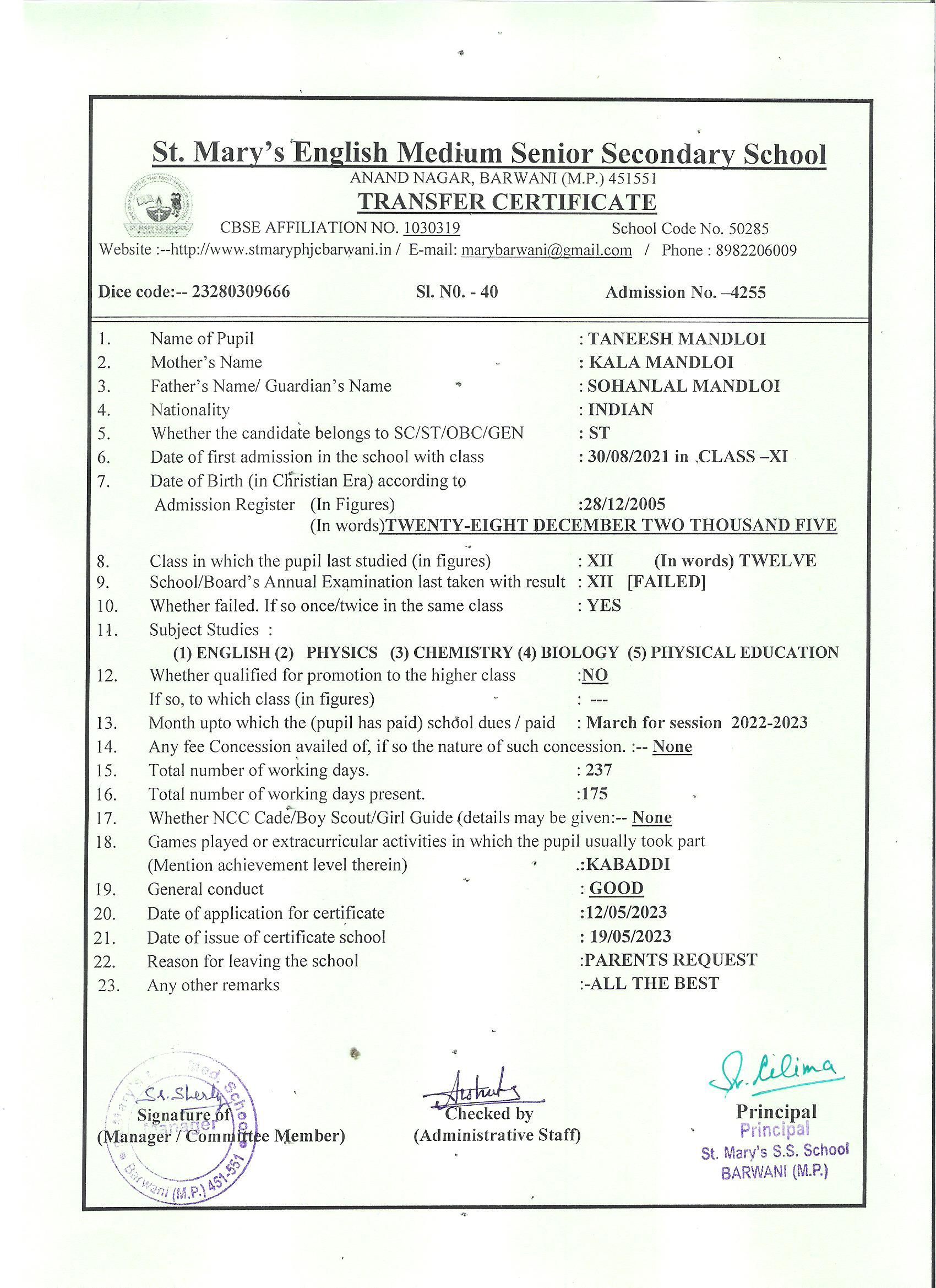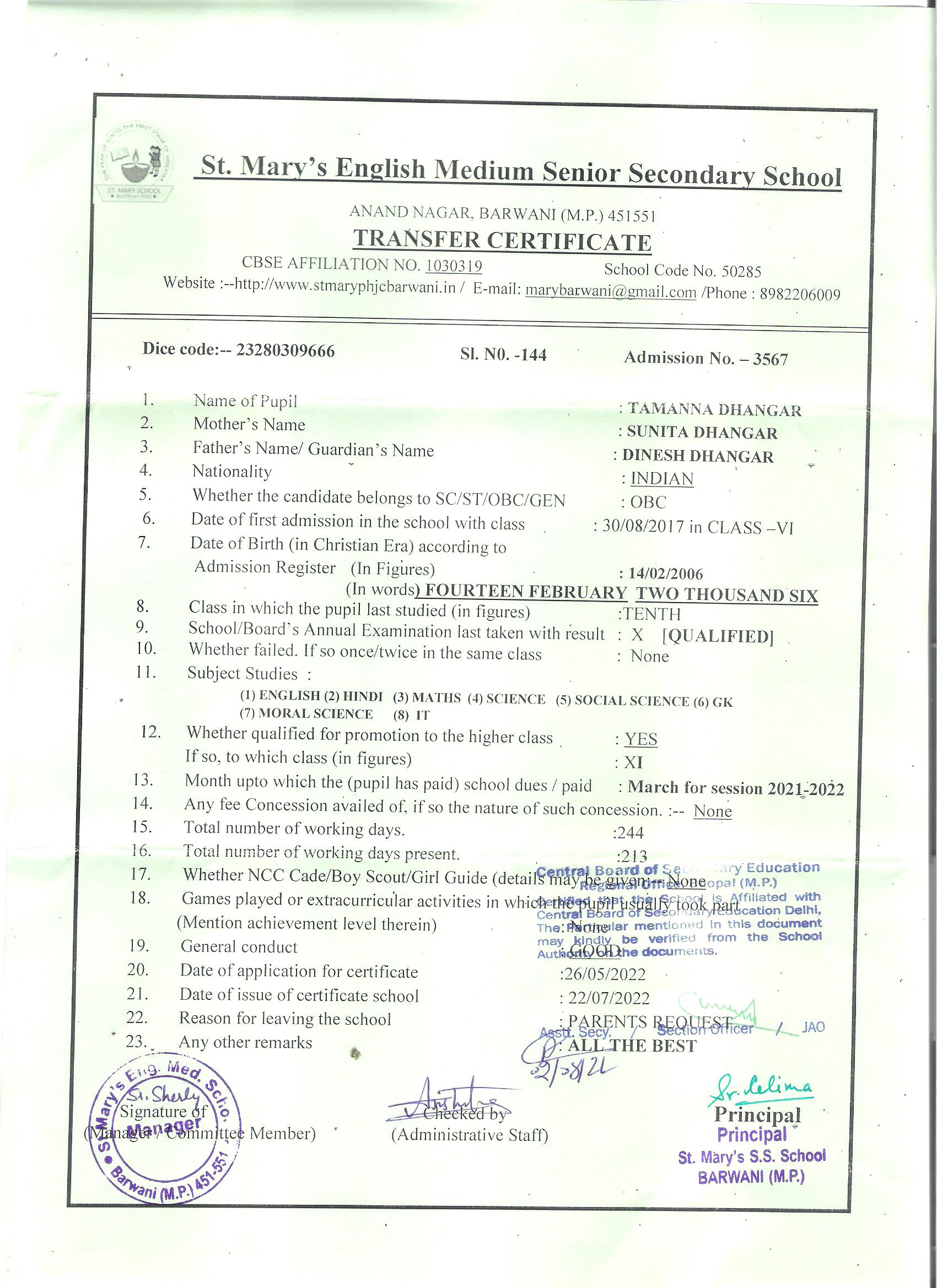 | 12 | Himanshu Sonwane | XII | View | Download |