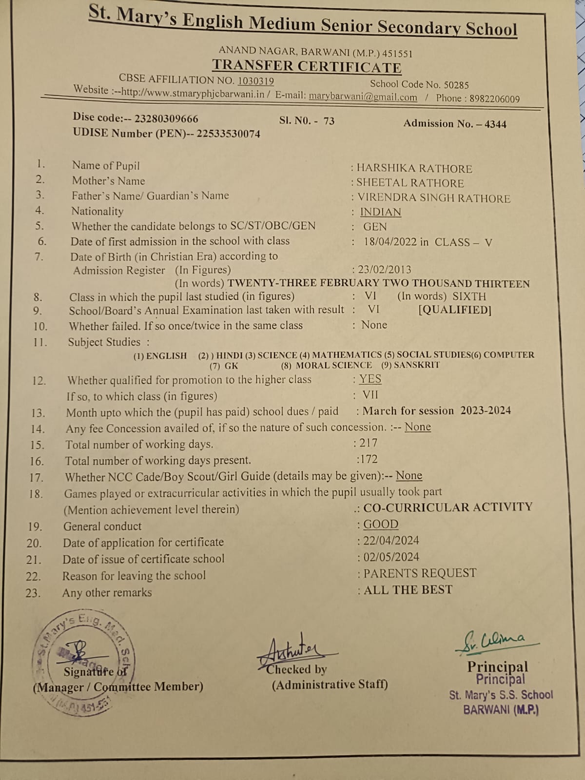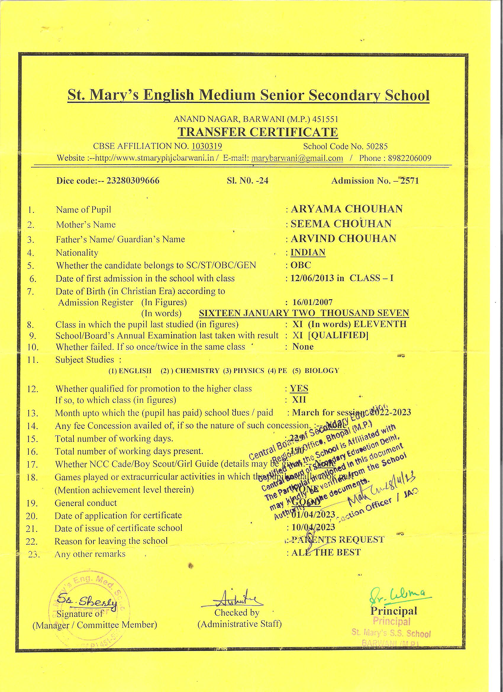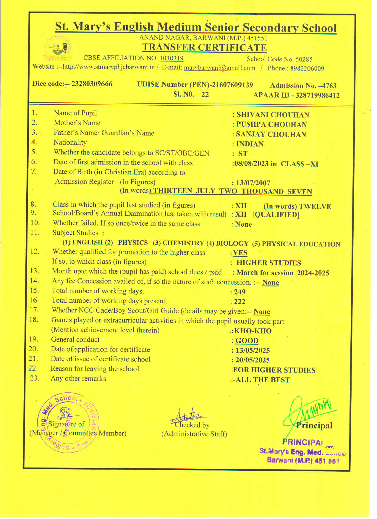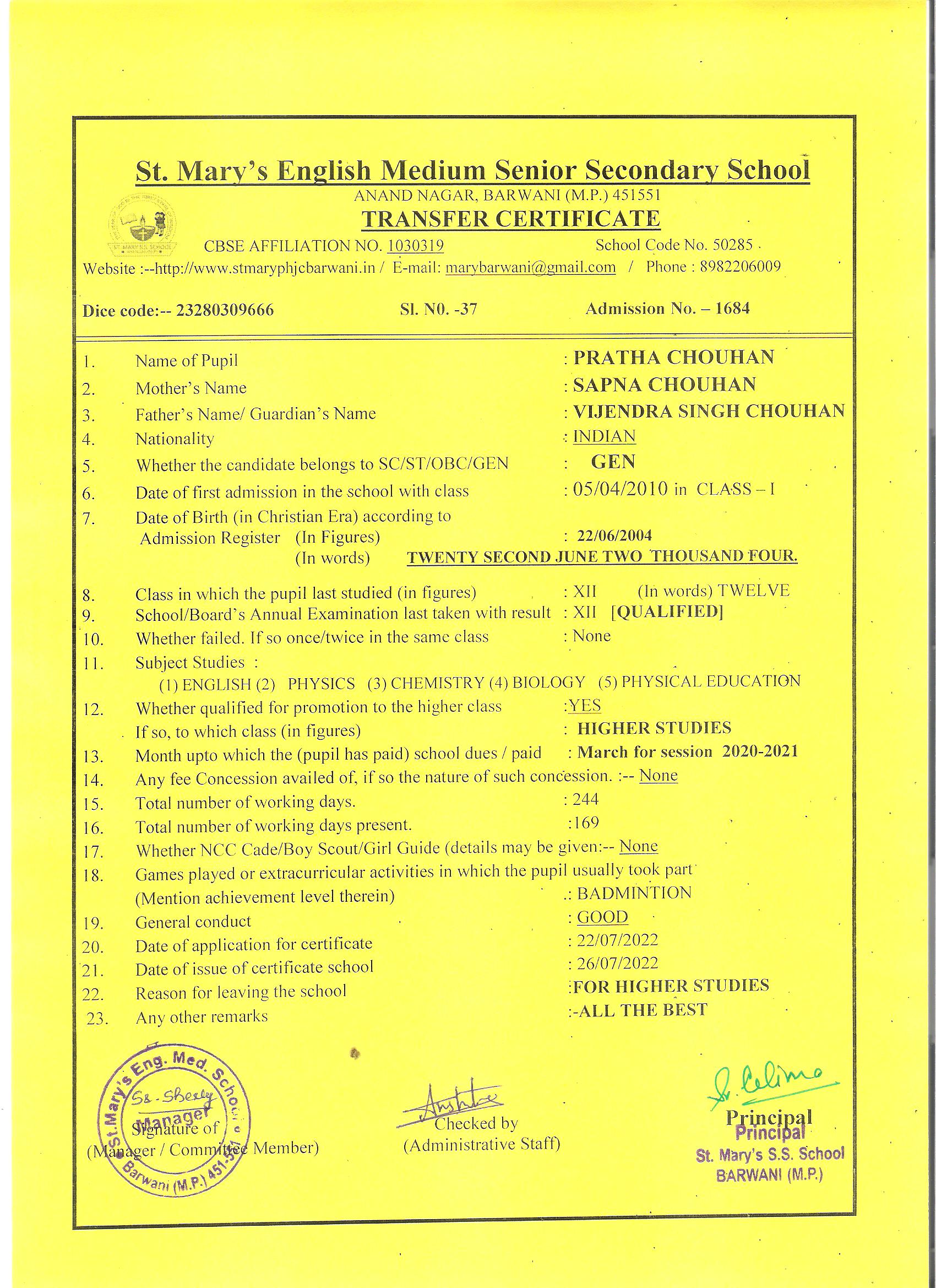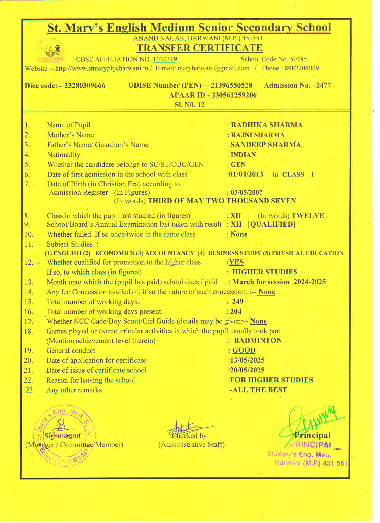 | 18 | Prisha Suryawanshi | XII | View | Download |