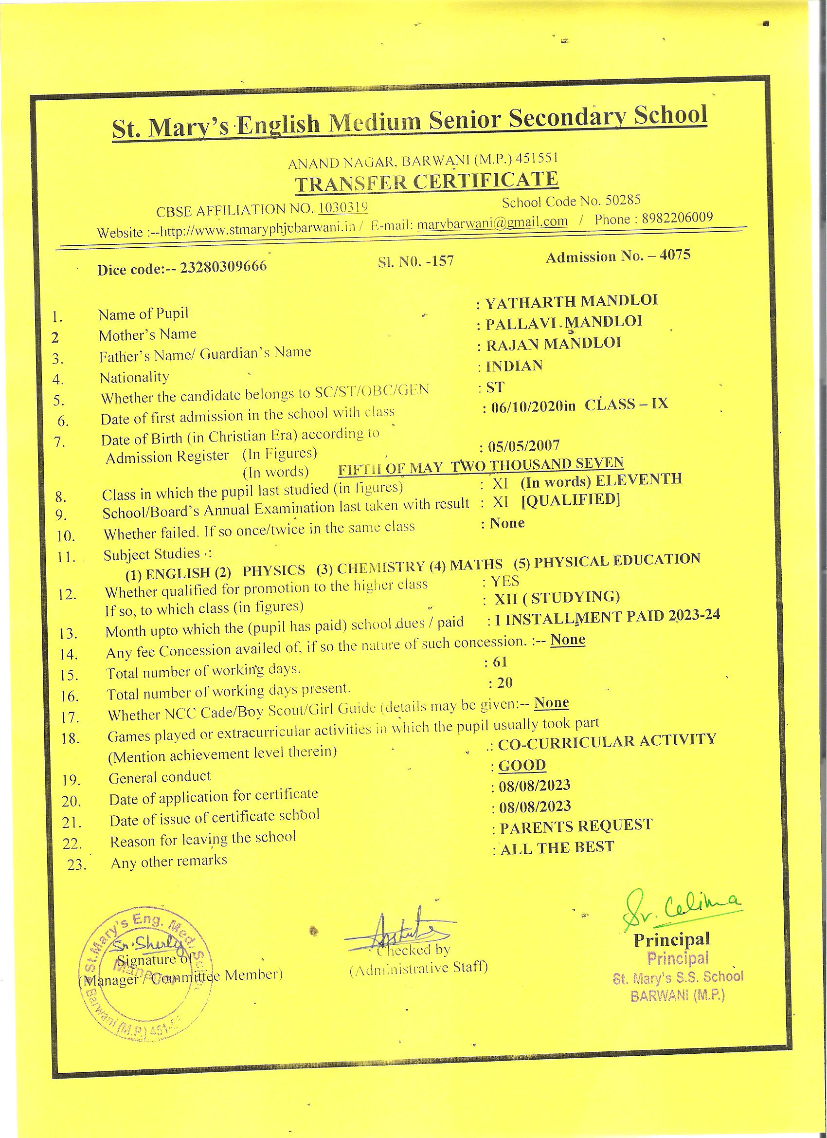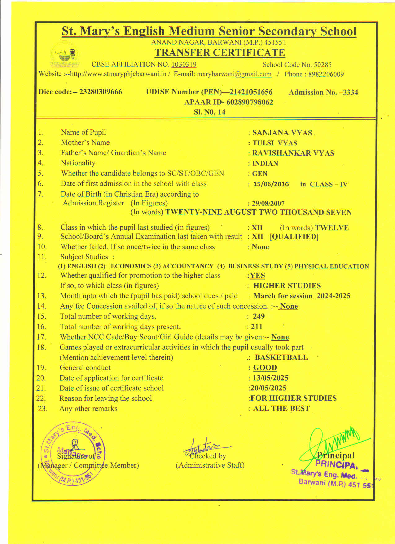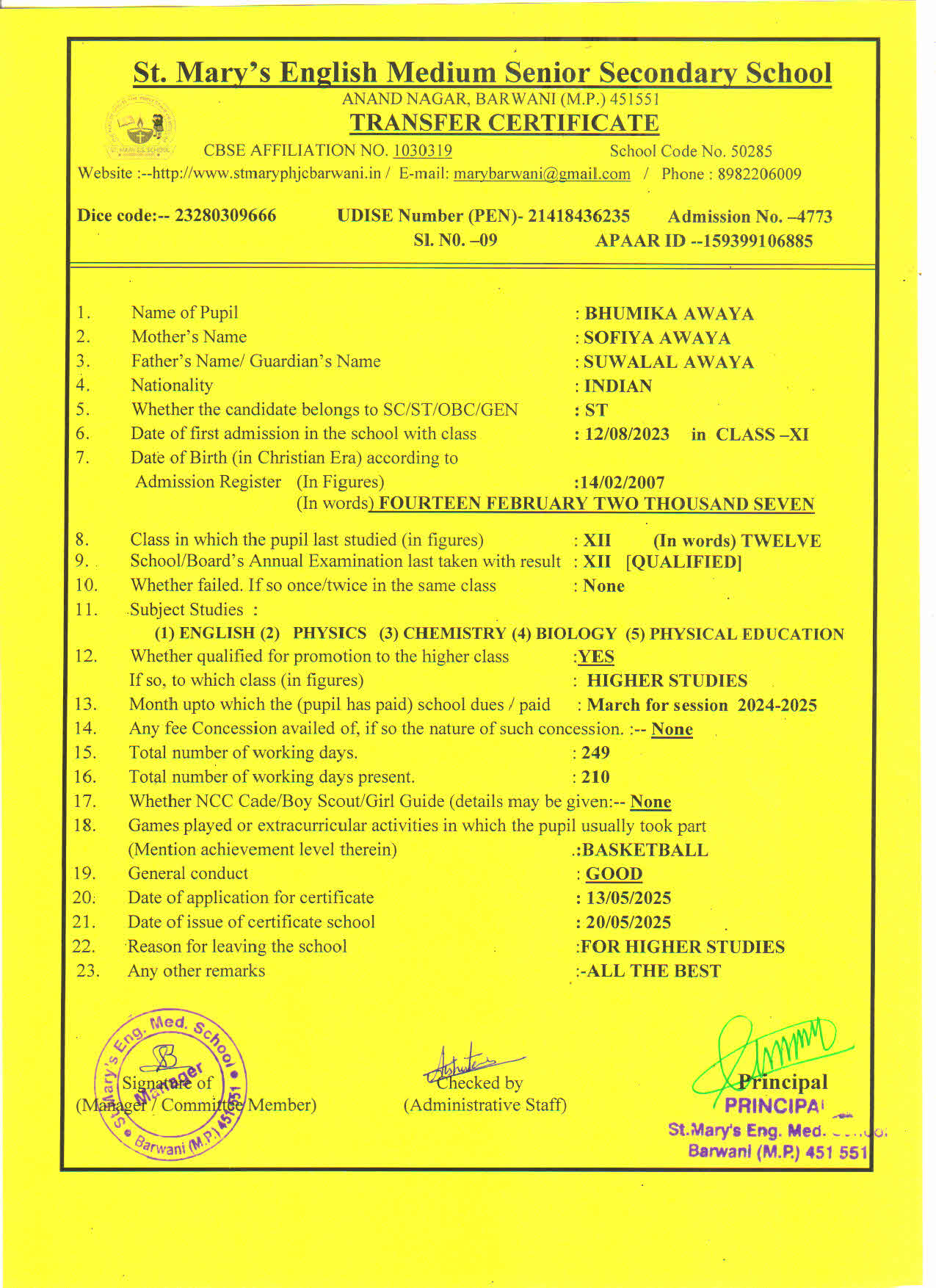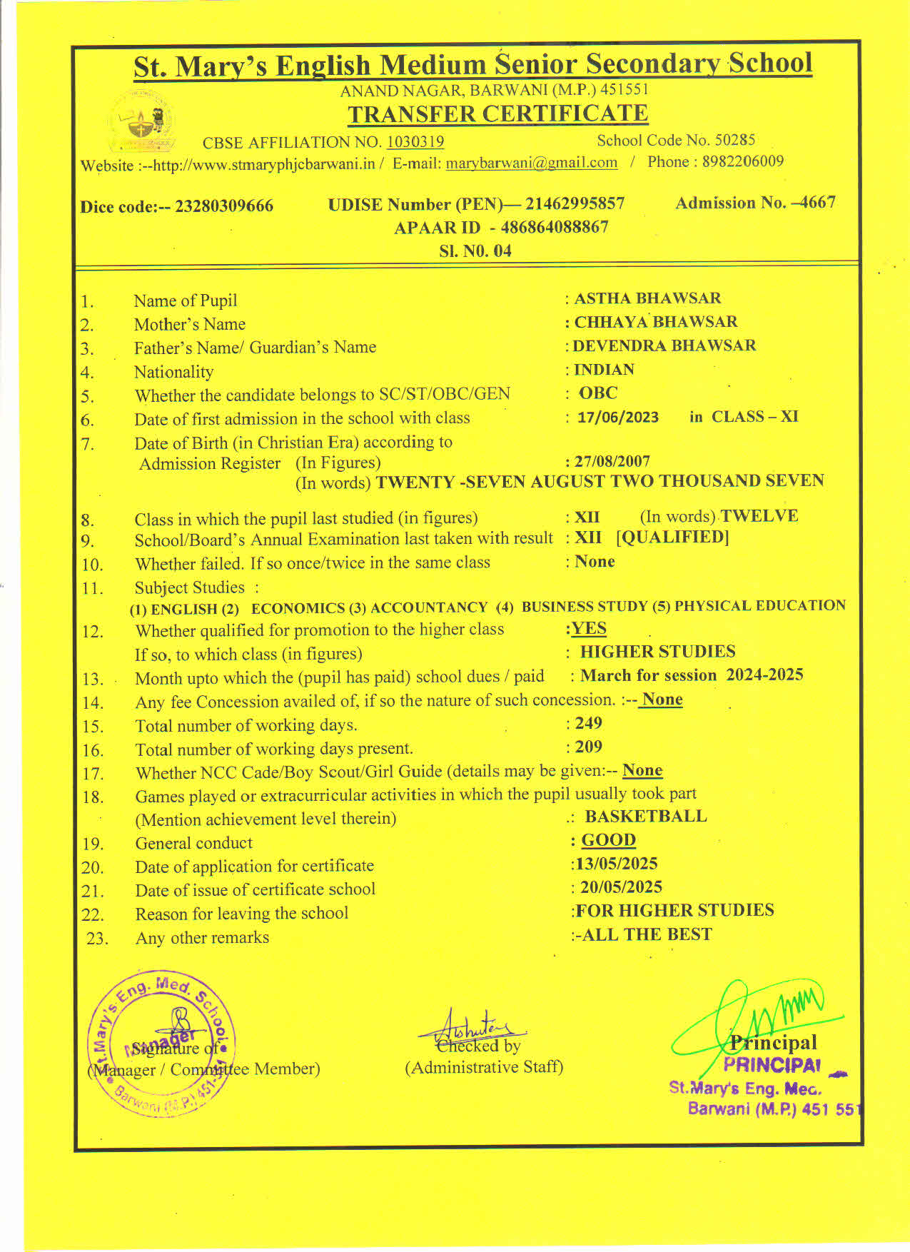 | 18 | Prisha Suryawanshi | XII | View | Download |