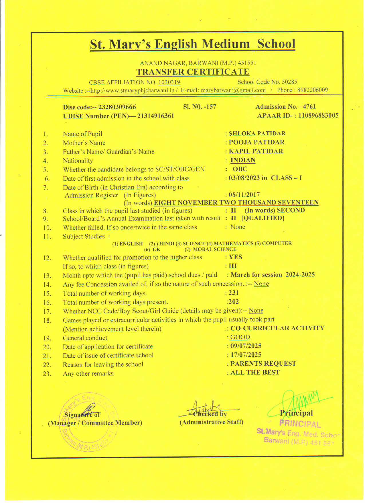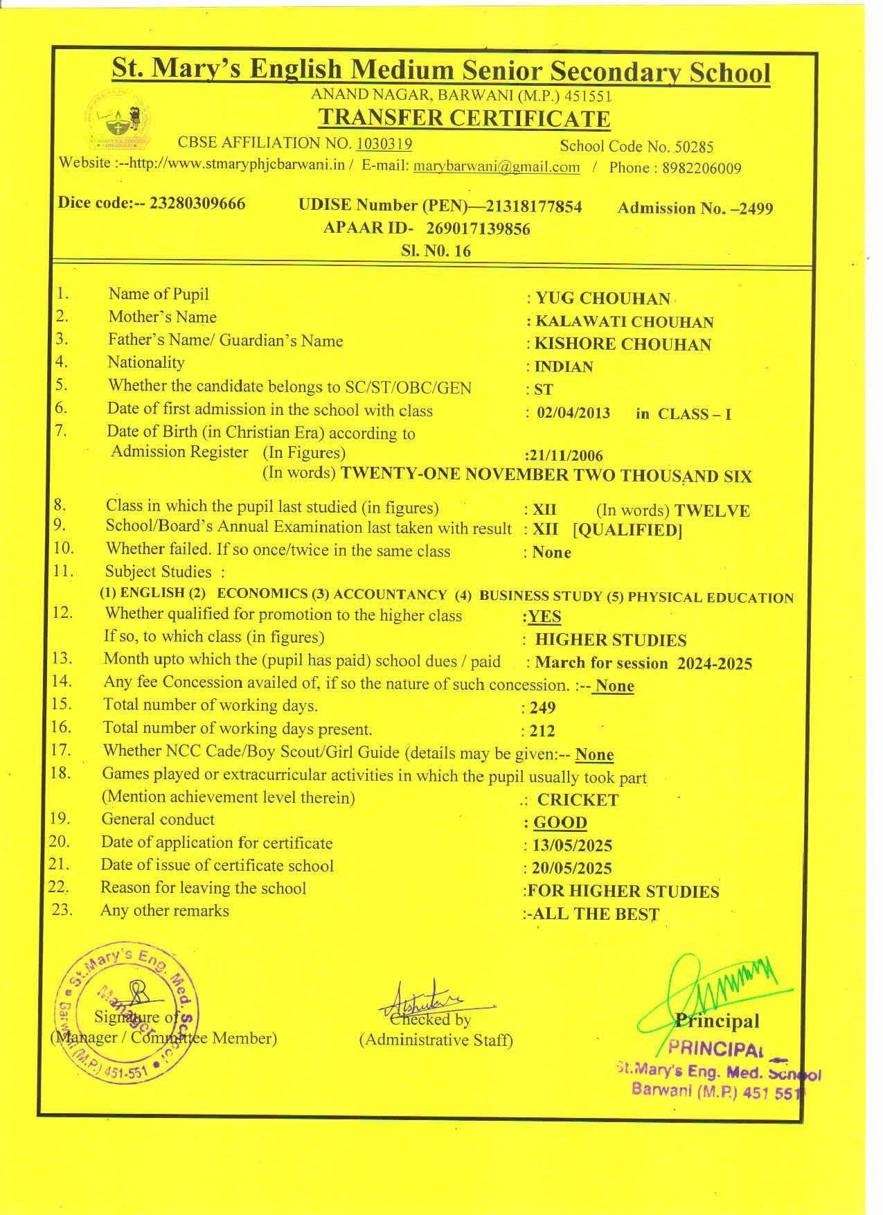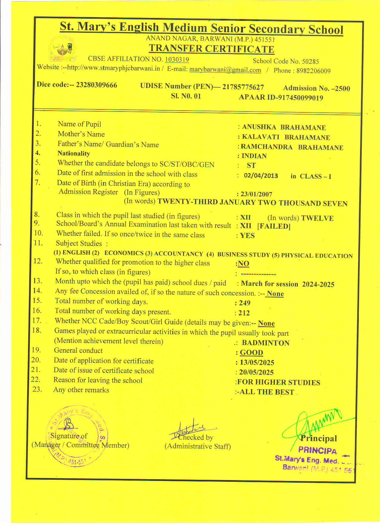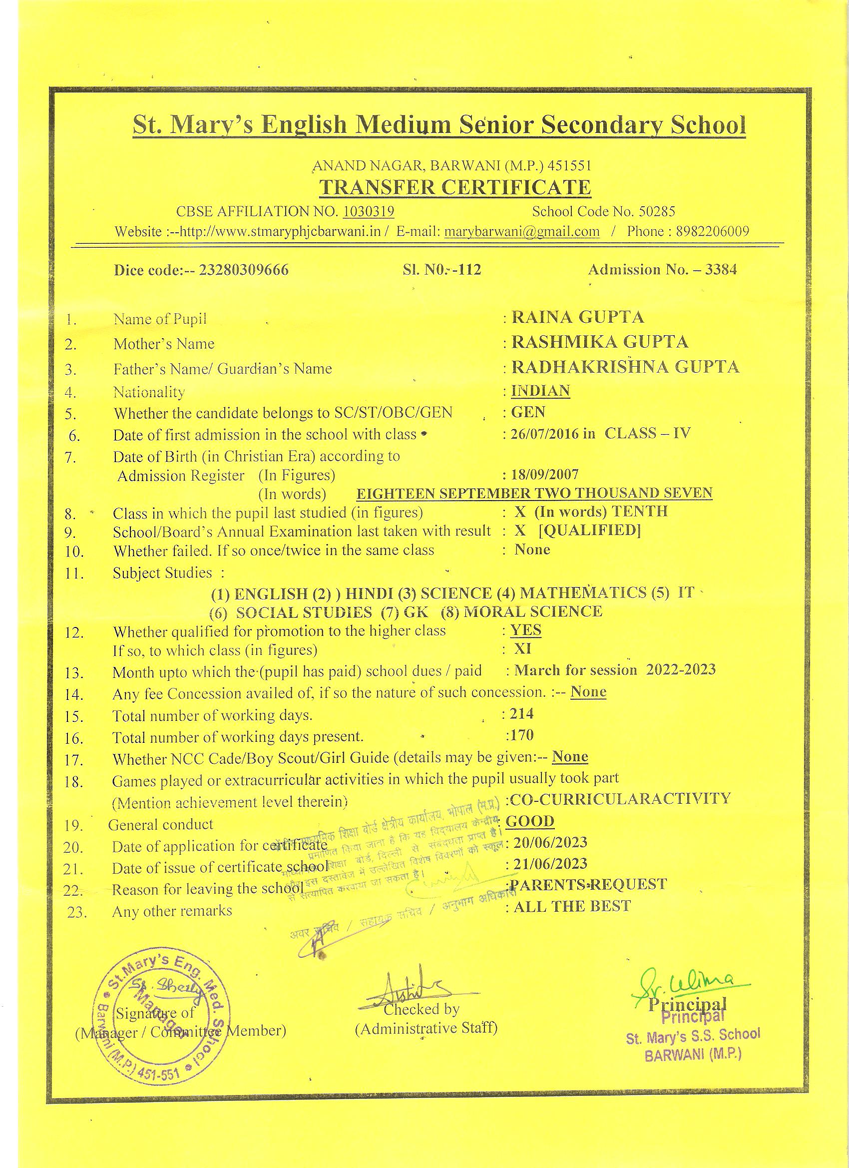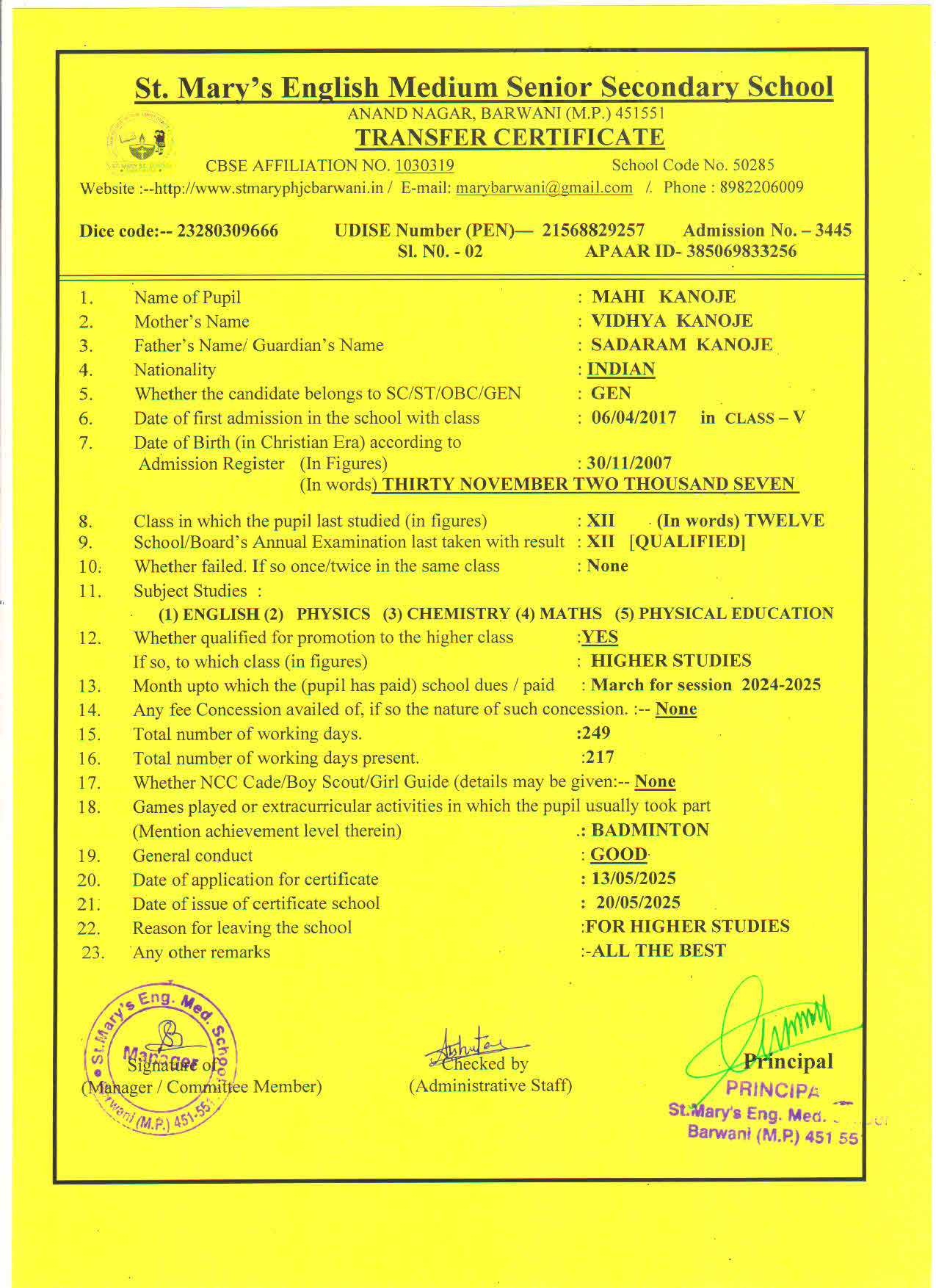 | 18 | Prisha Suryawanshi | XII | View | Download |