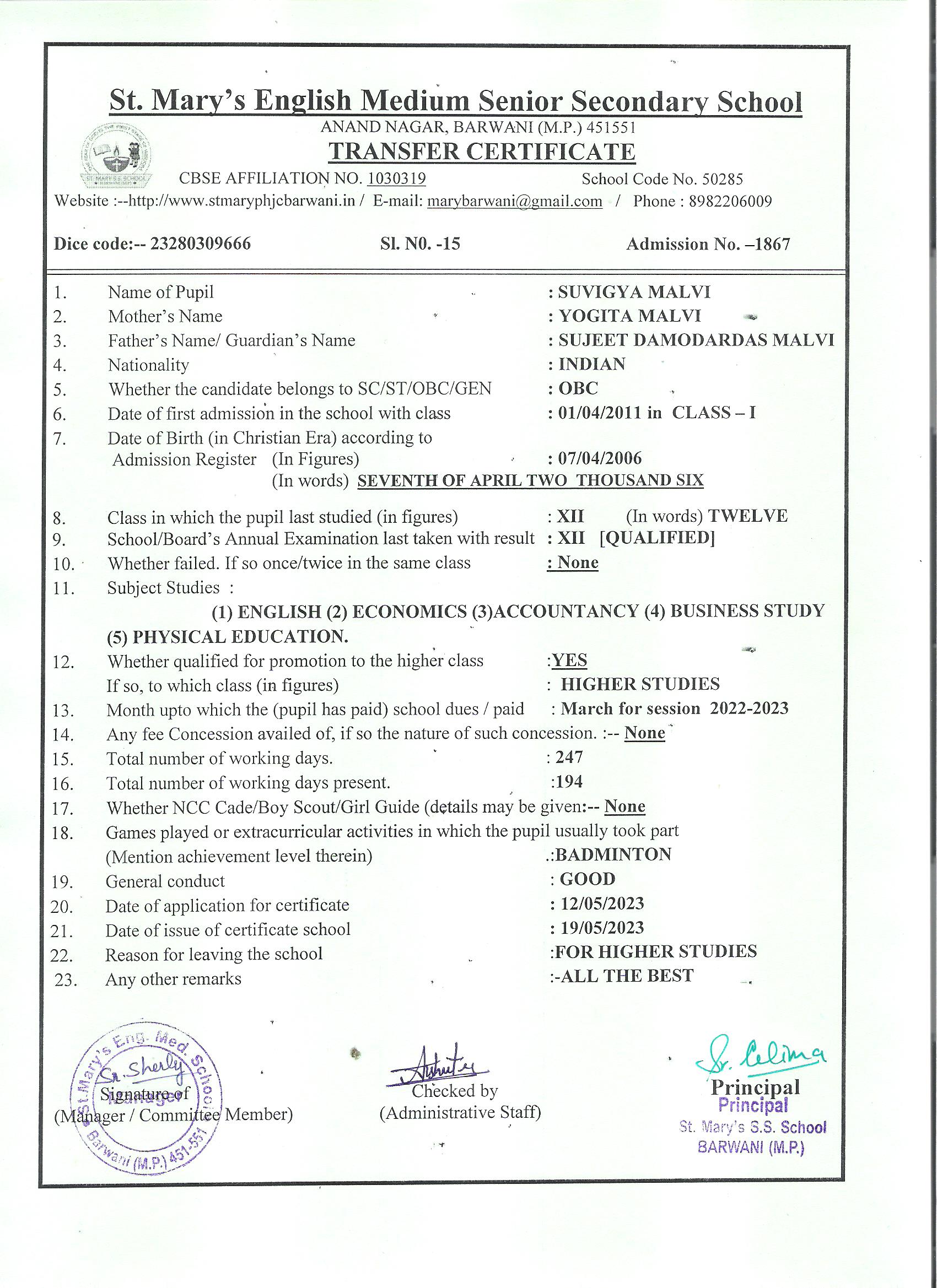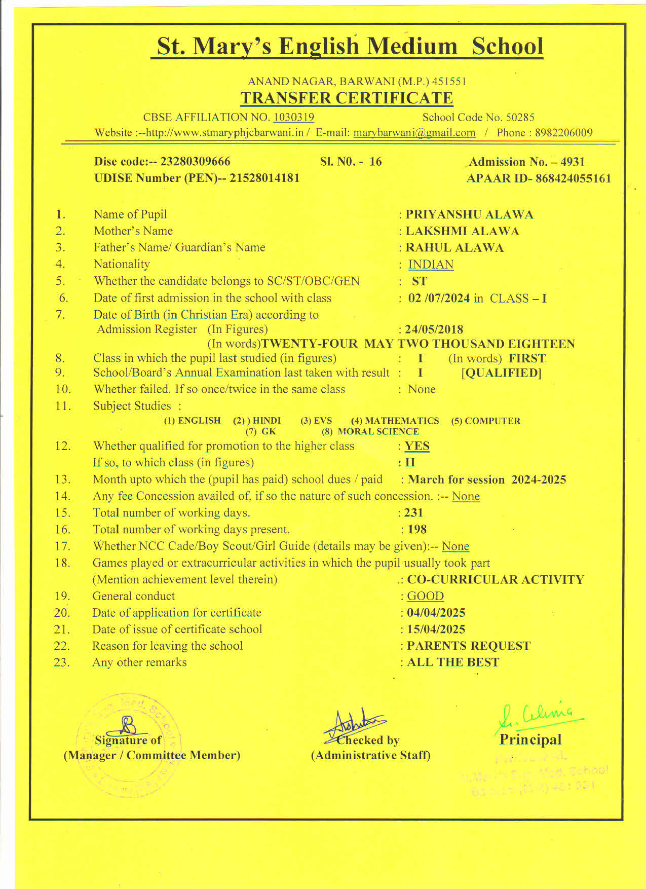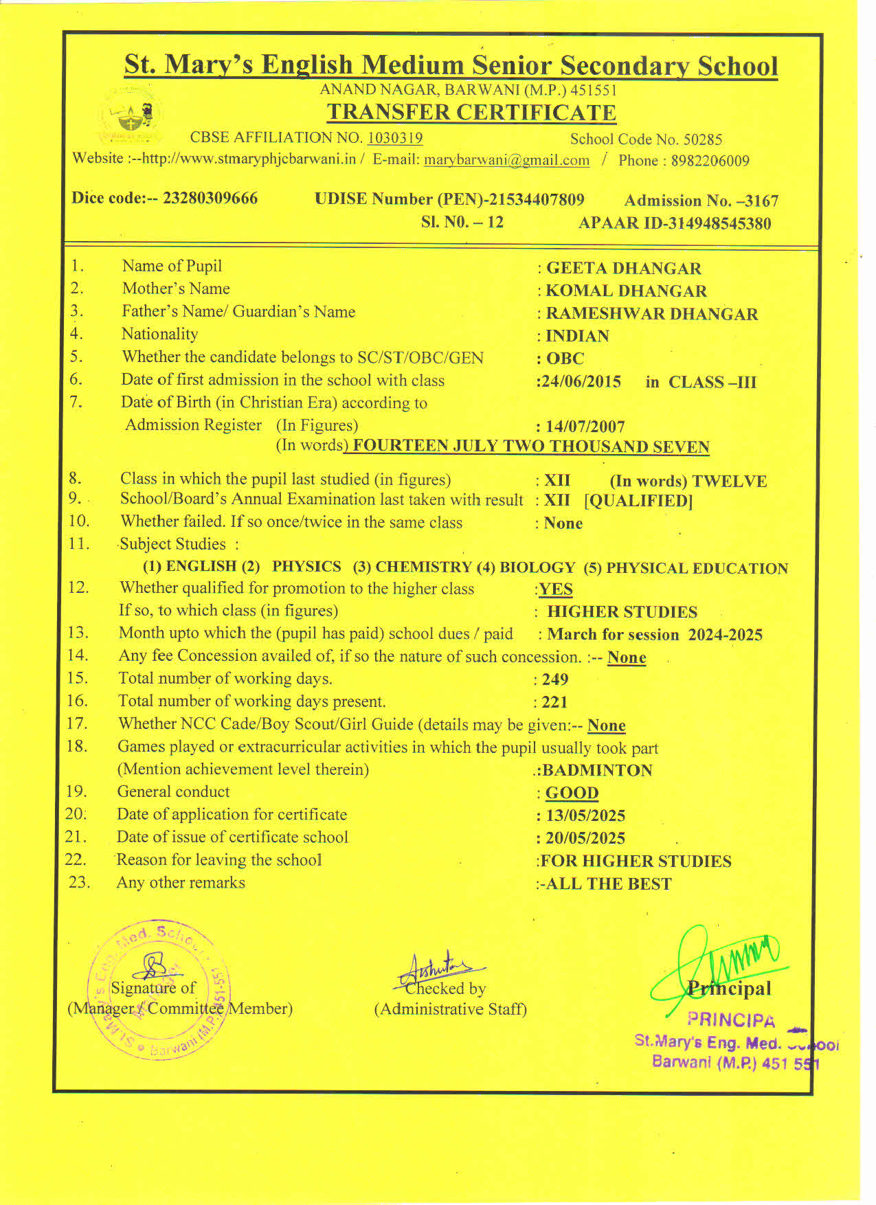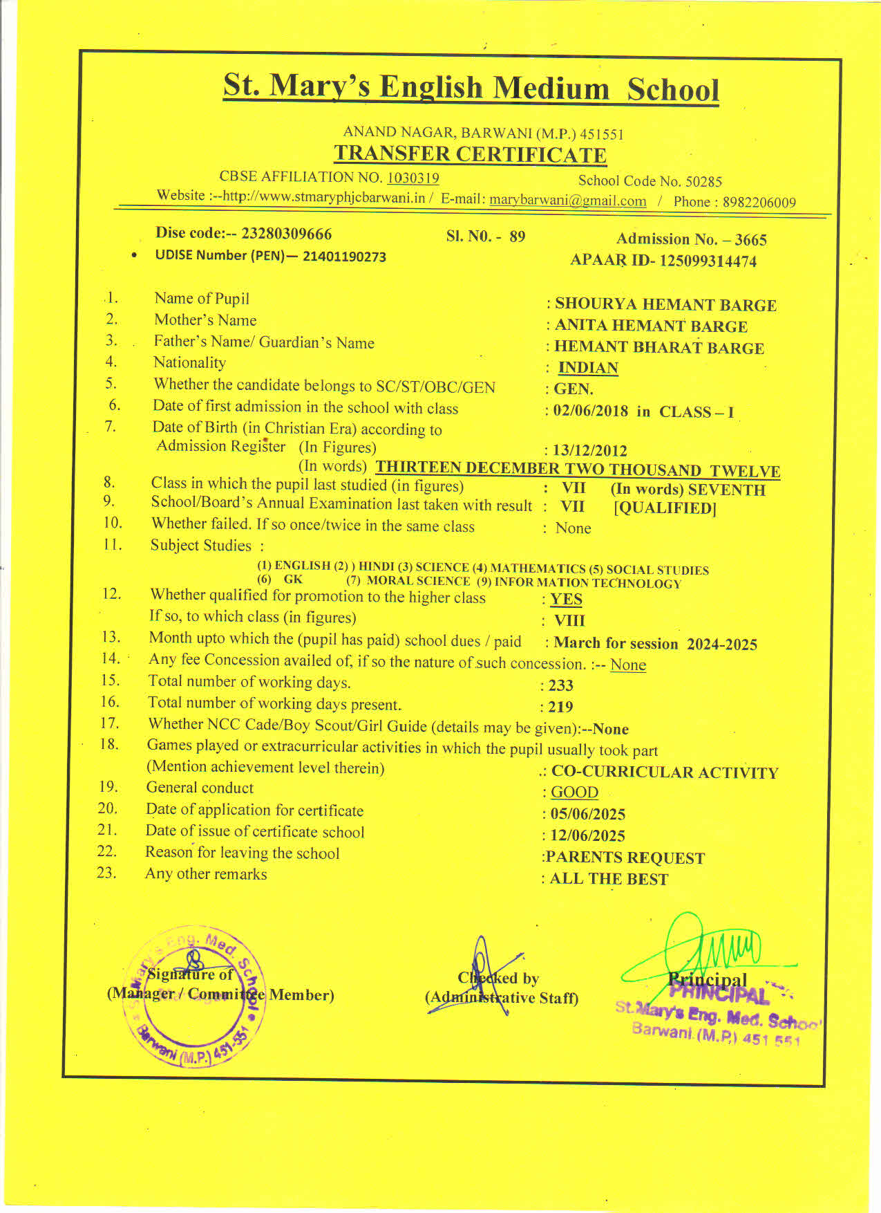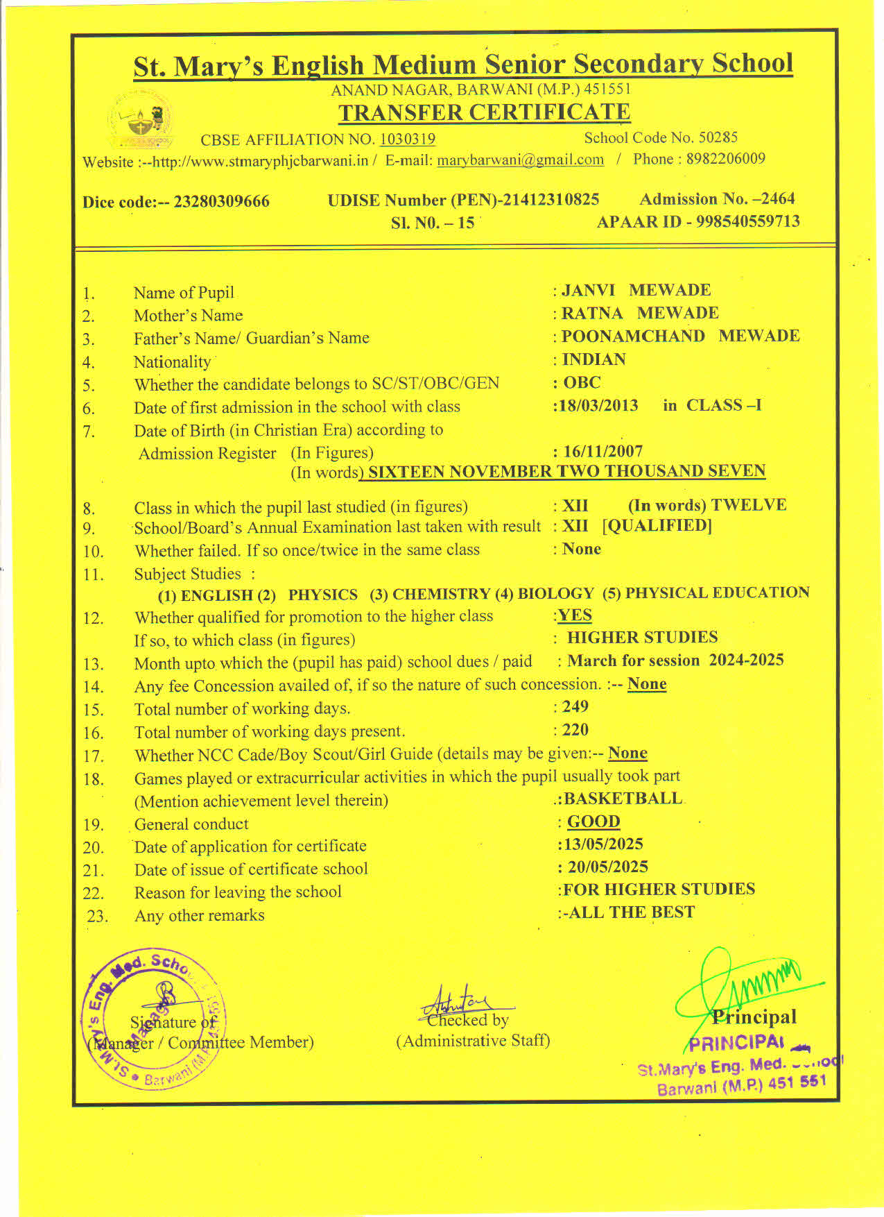 | 18 | Prisha Suryawanshi | XII | View | Download |