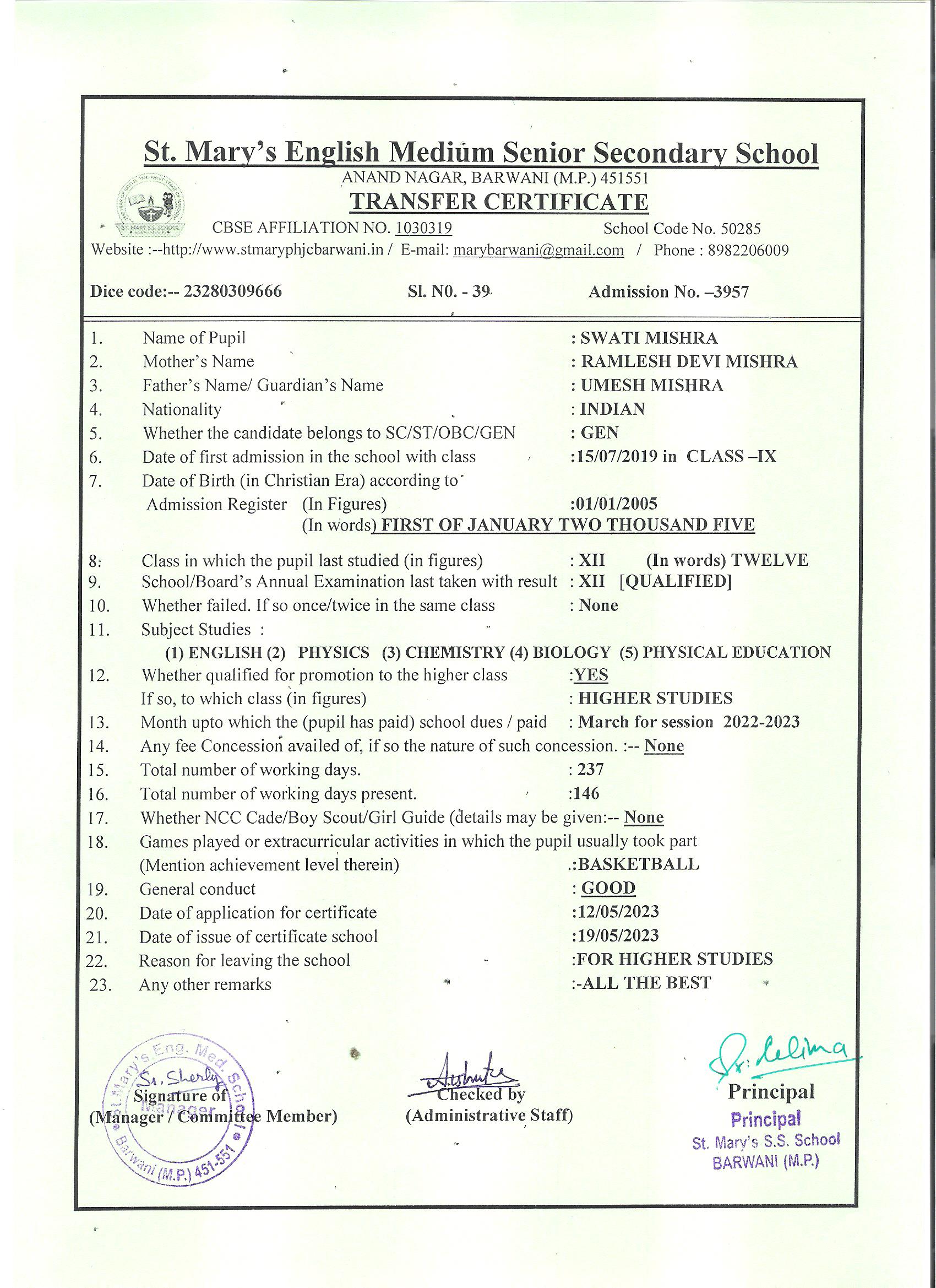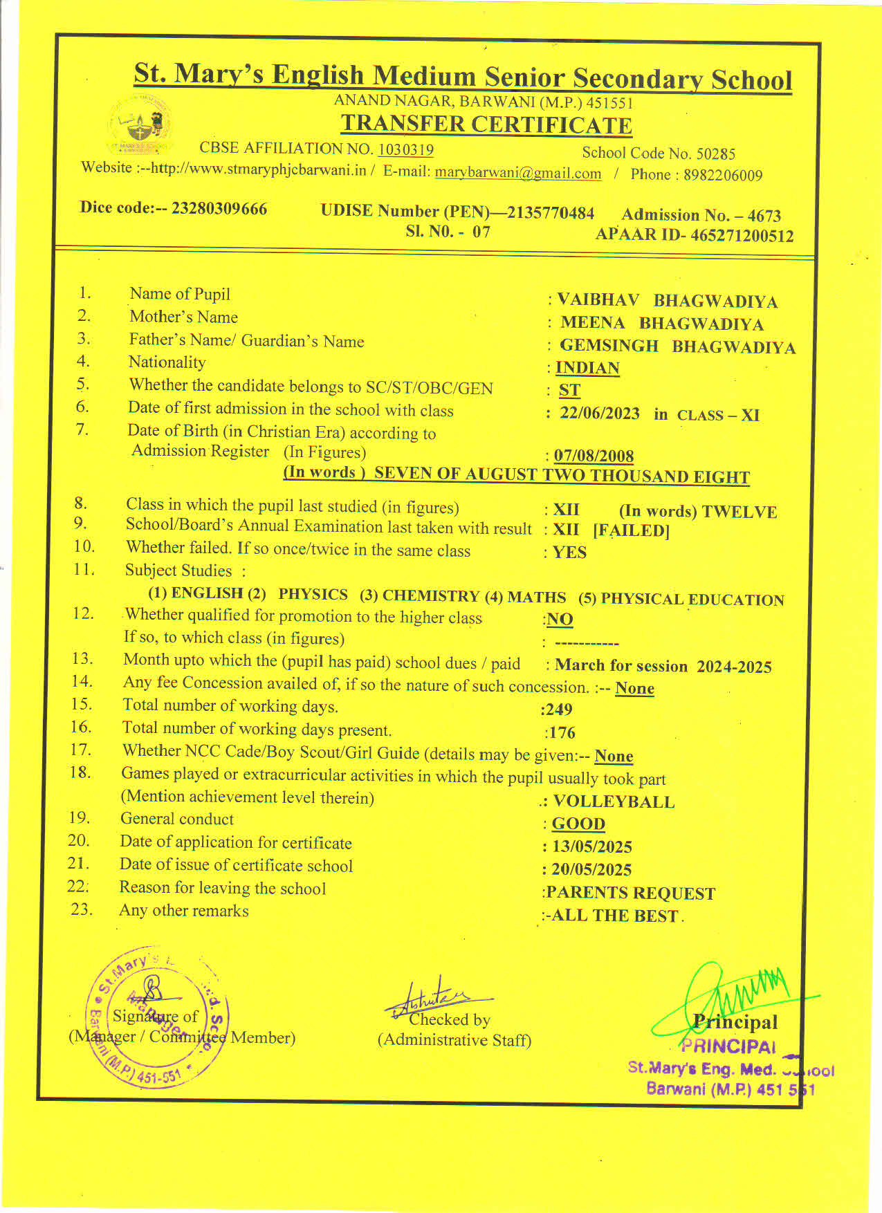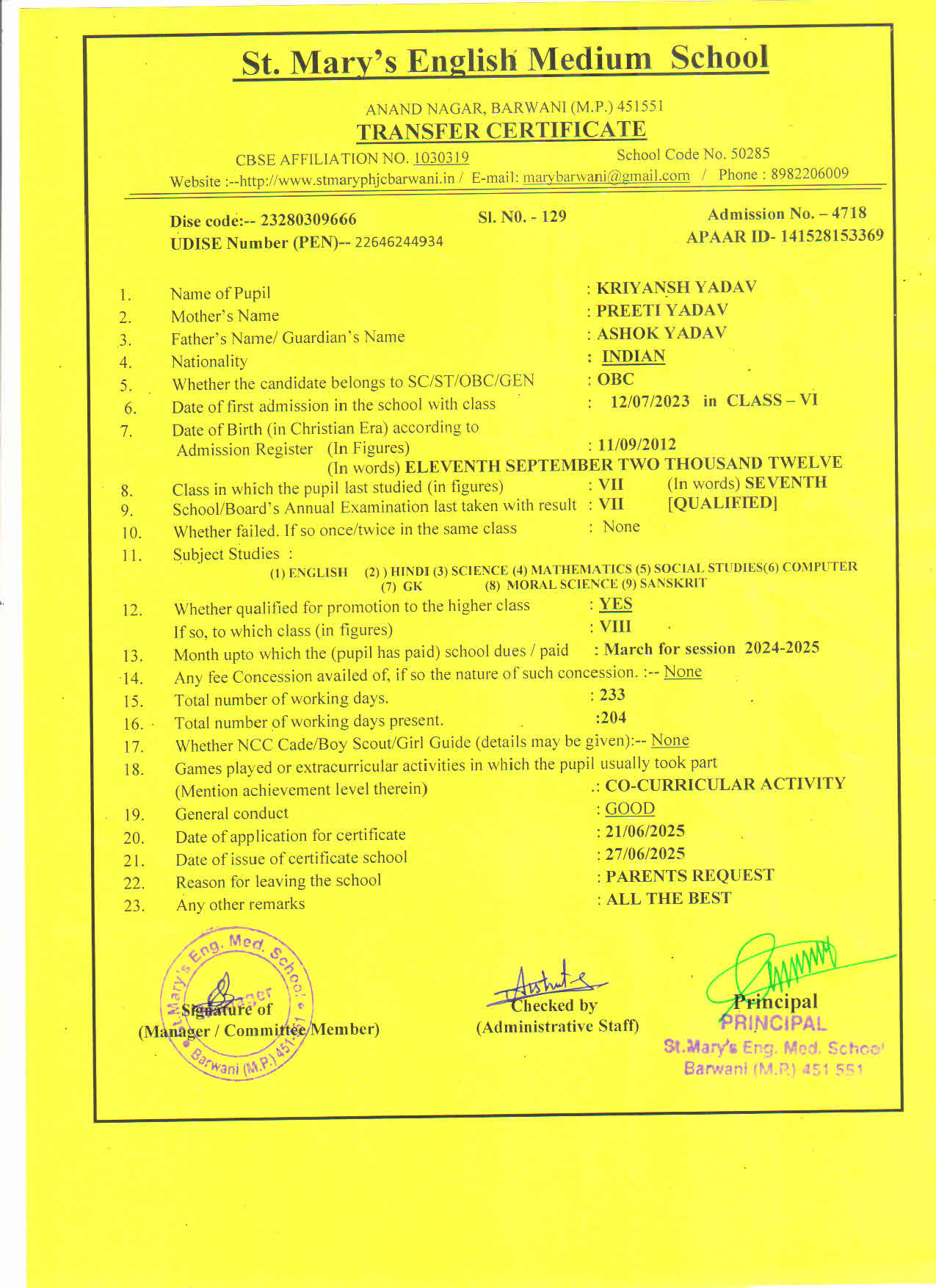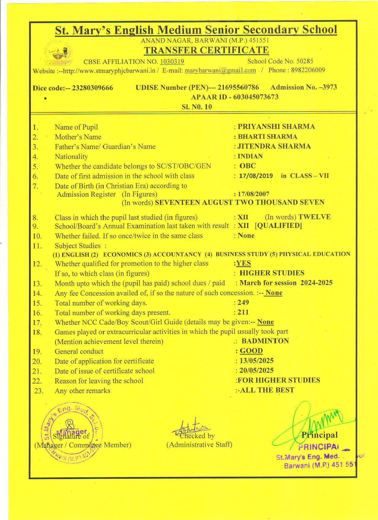 | 18 | Prisha Suryawanshi | XII | View | Download |