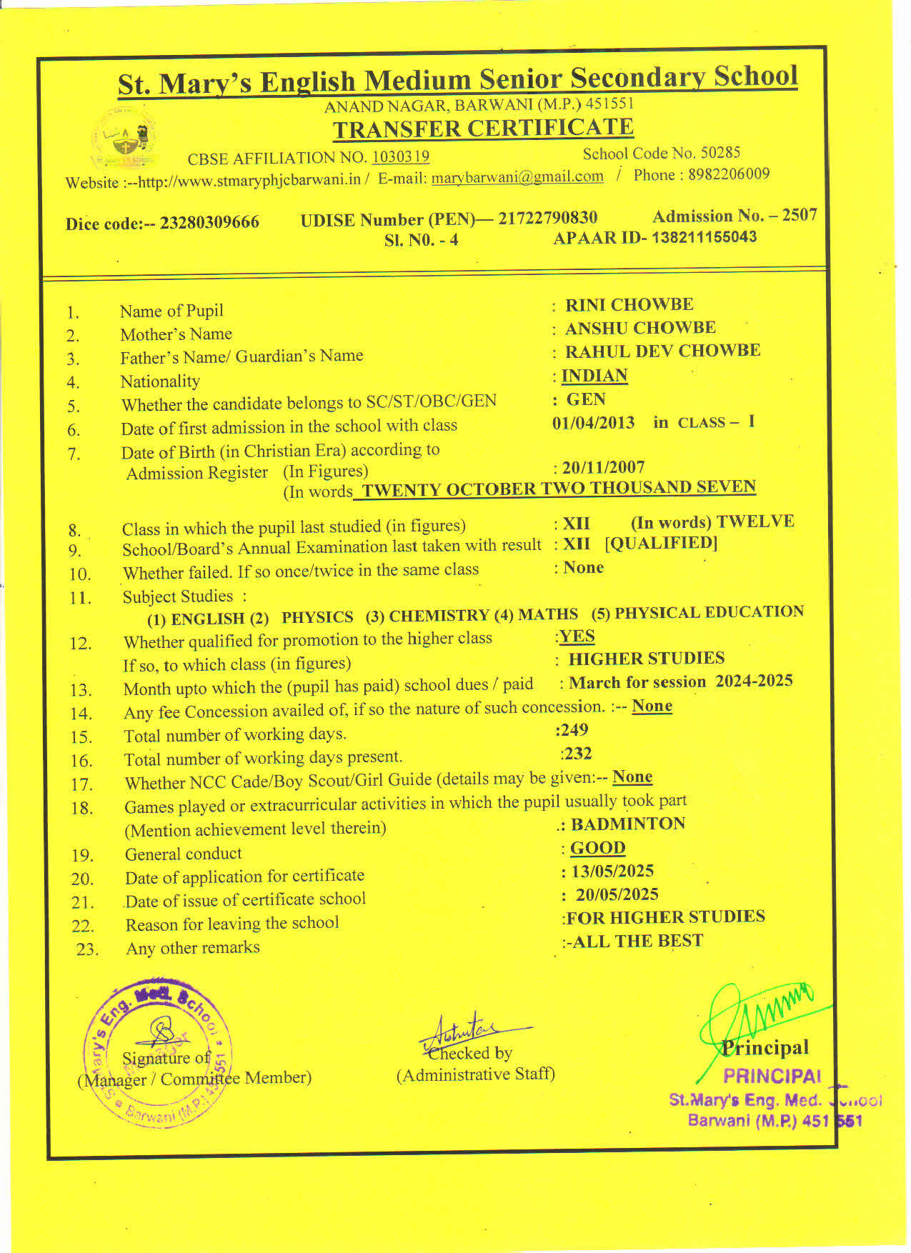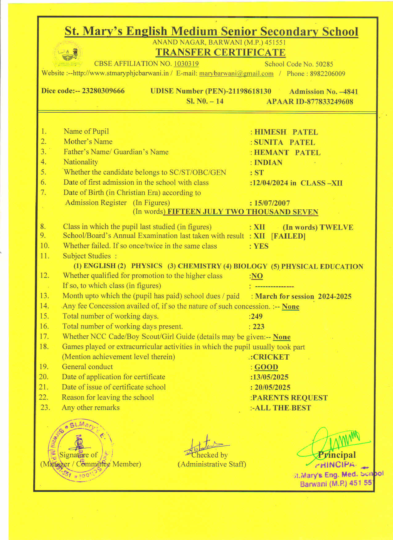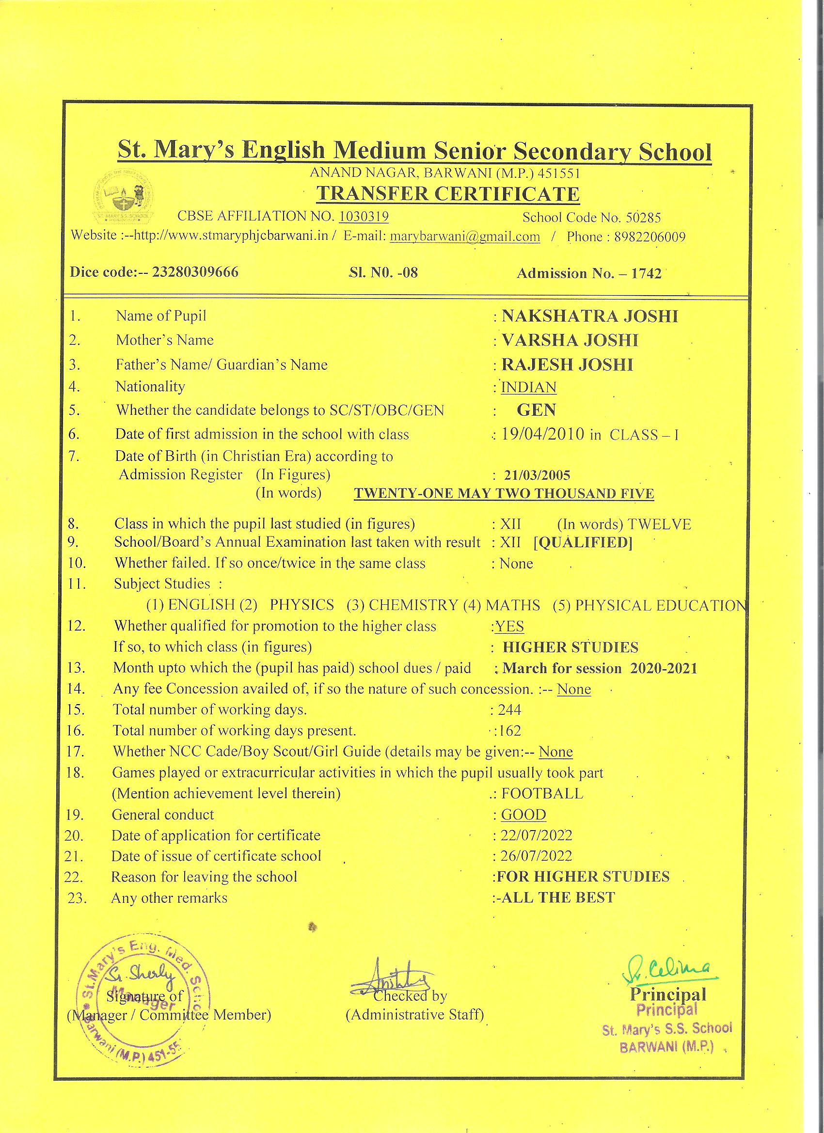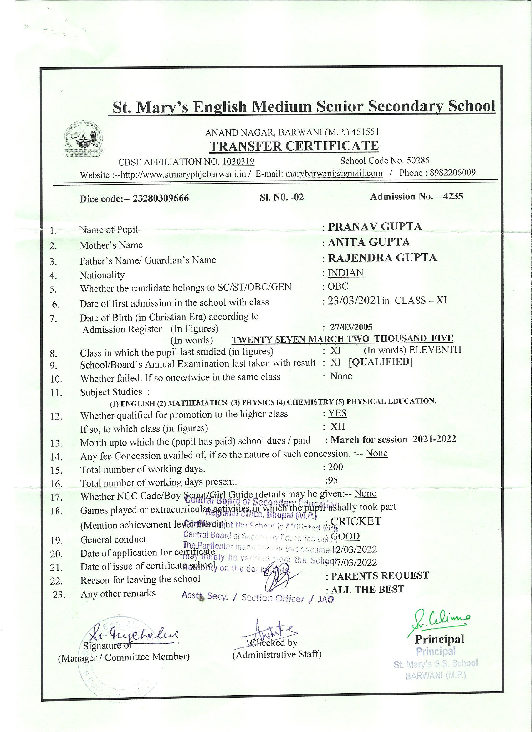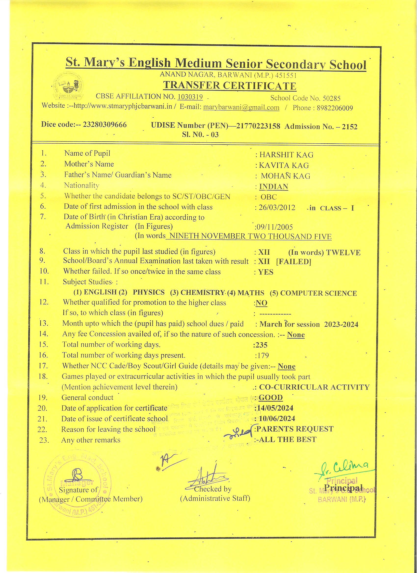 | 18 | Prisha Suryawanshi | XII | View | Download |