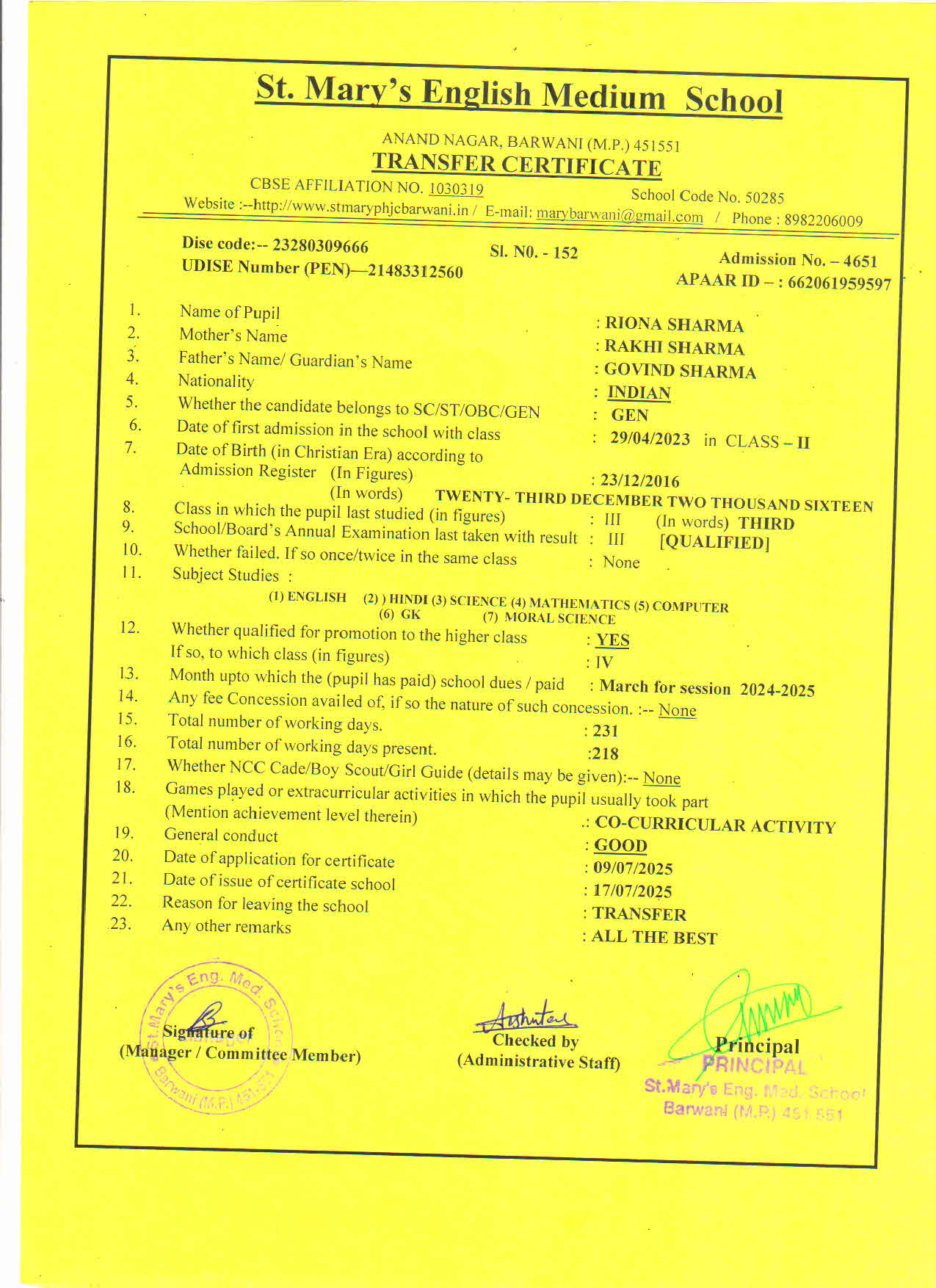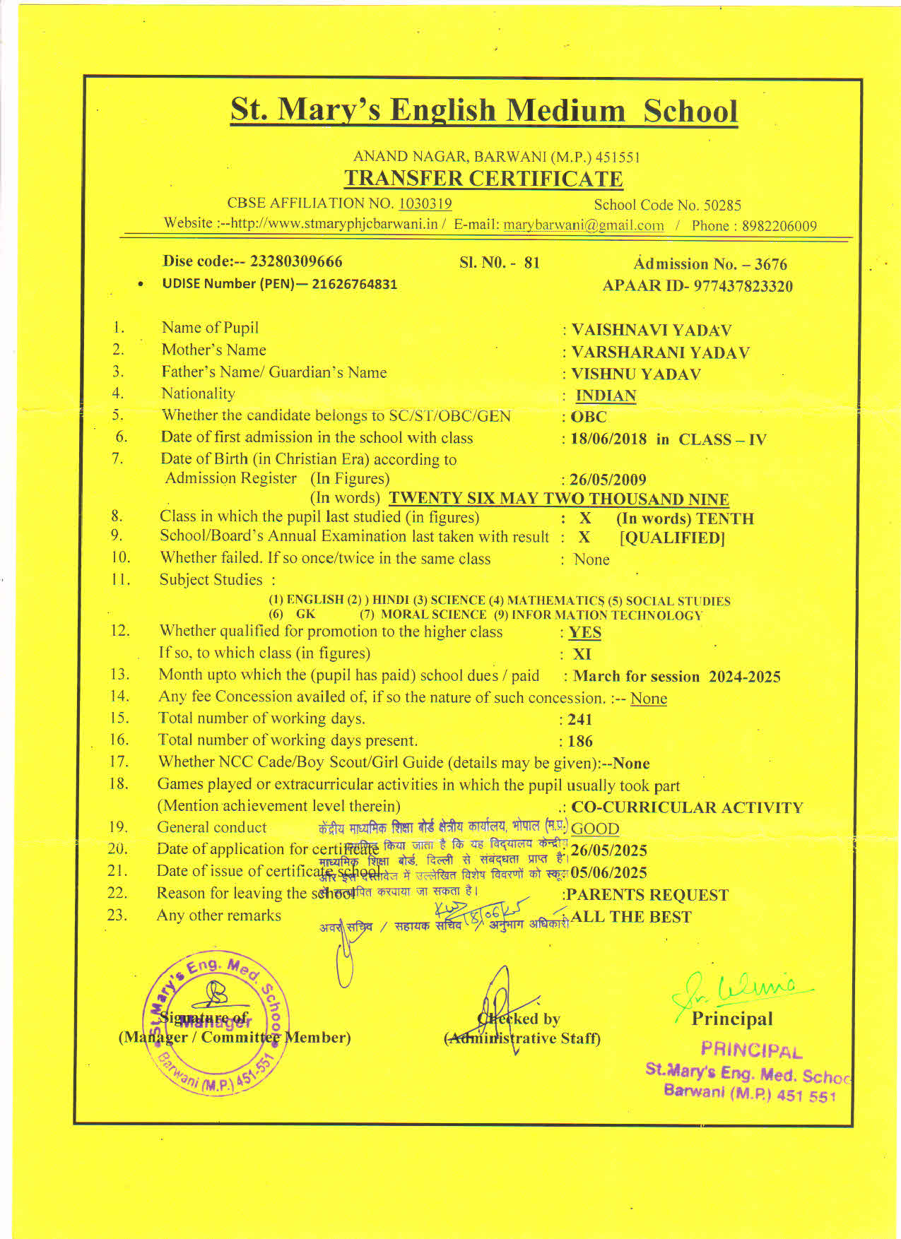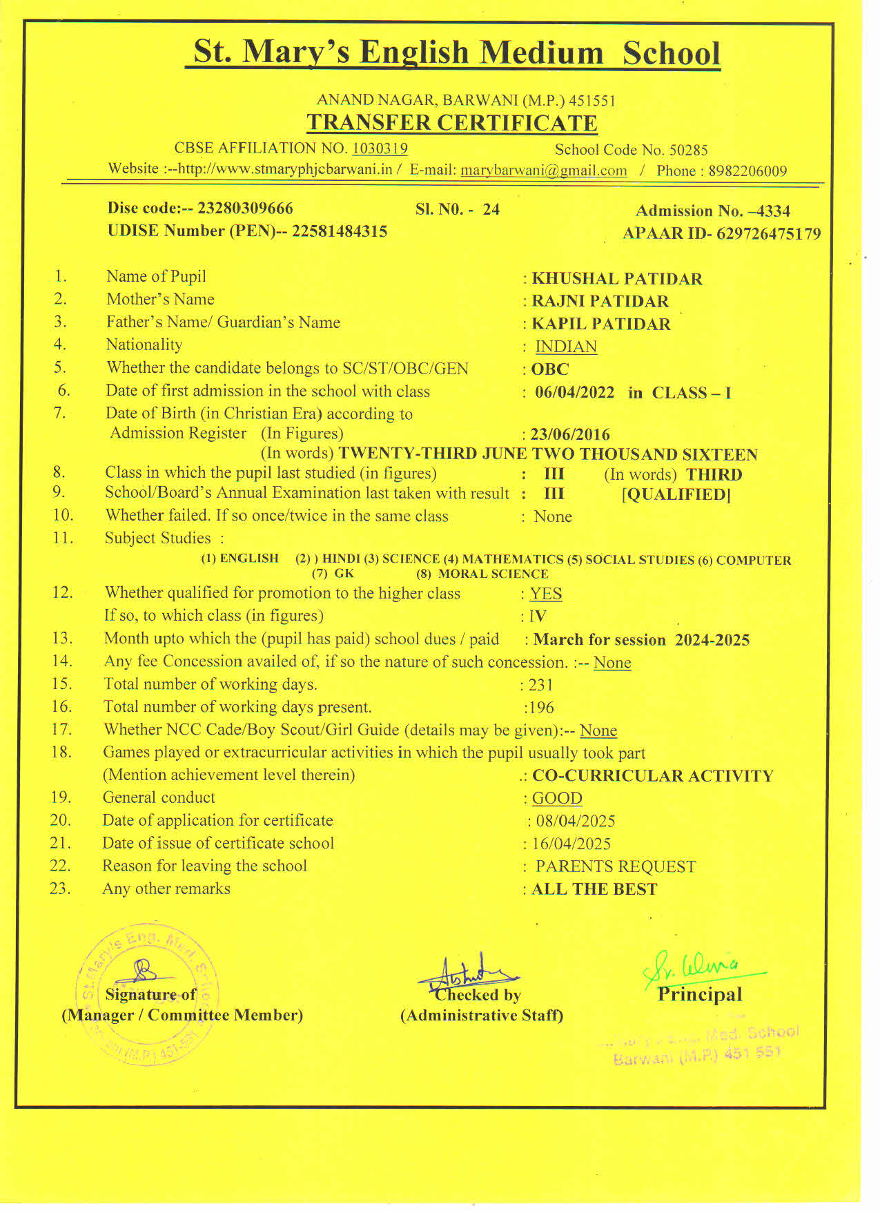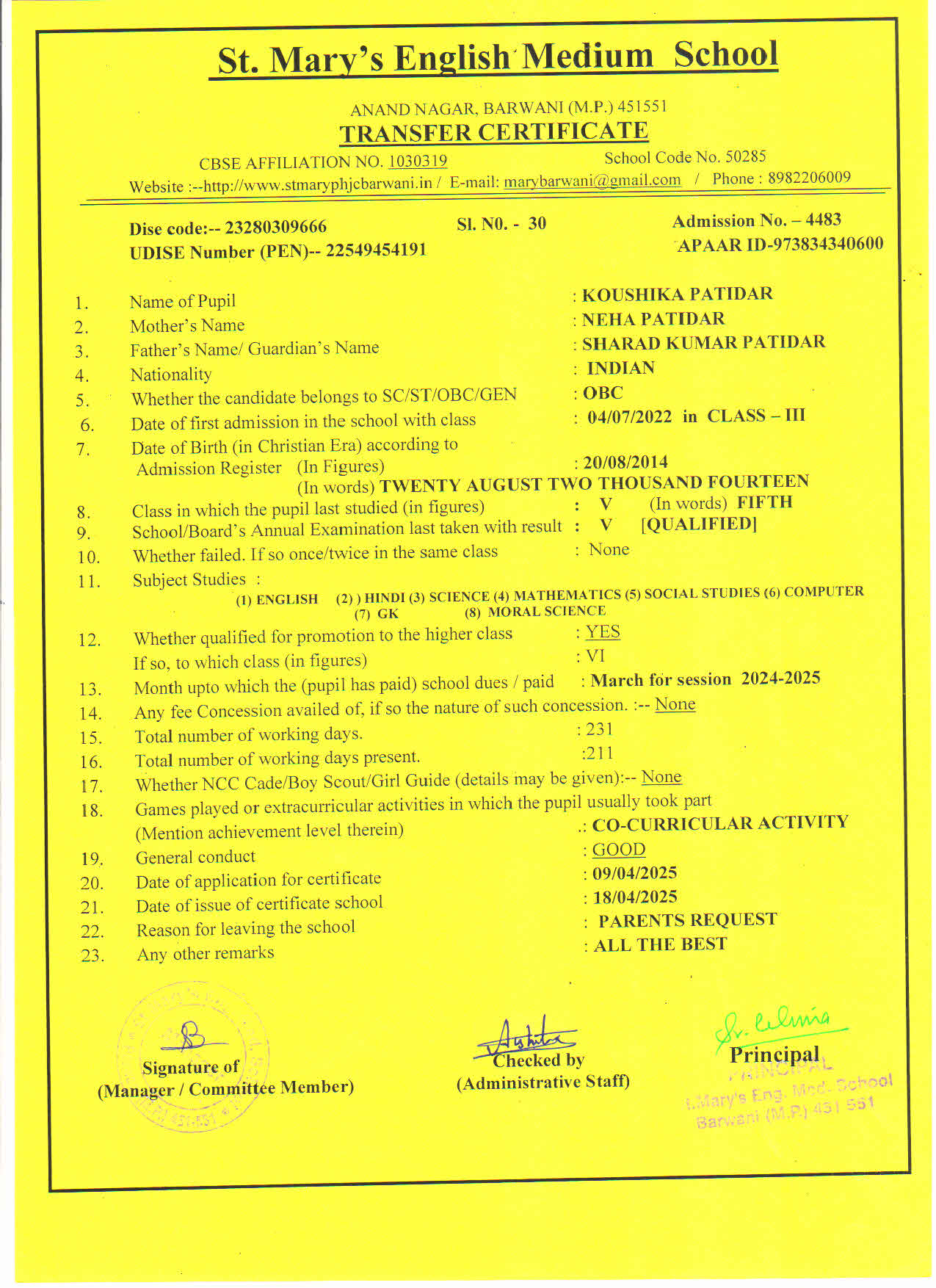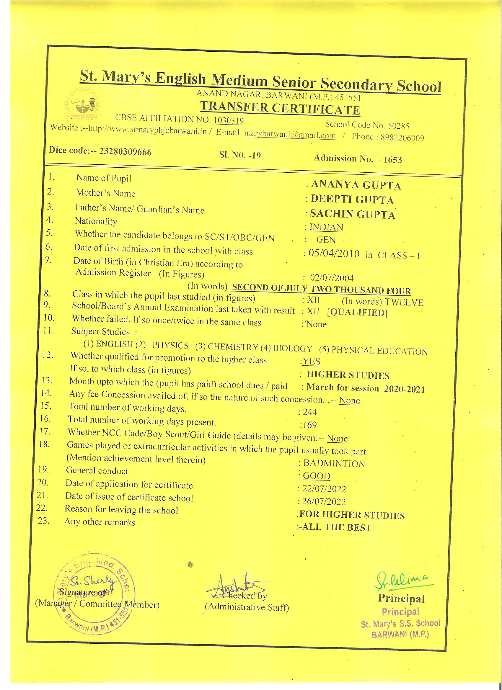 | 18 | Prisha Suryawanshi | XII | View | Download |