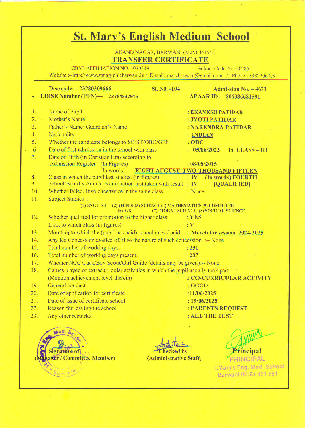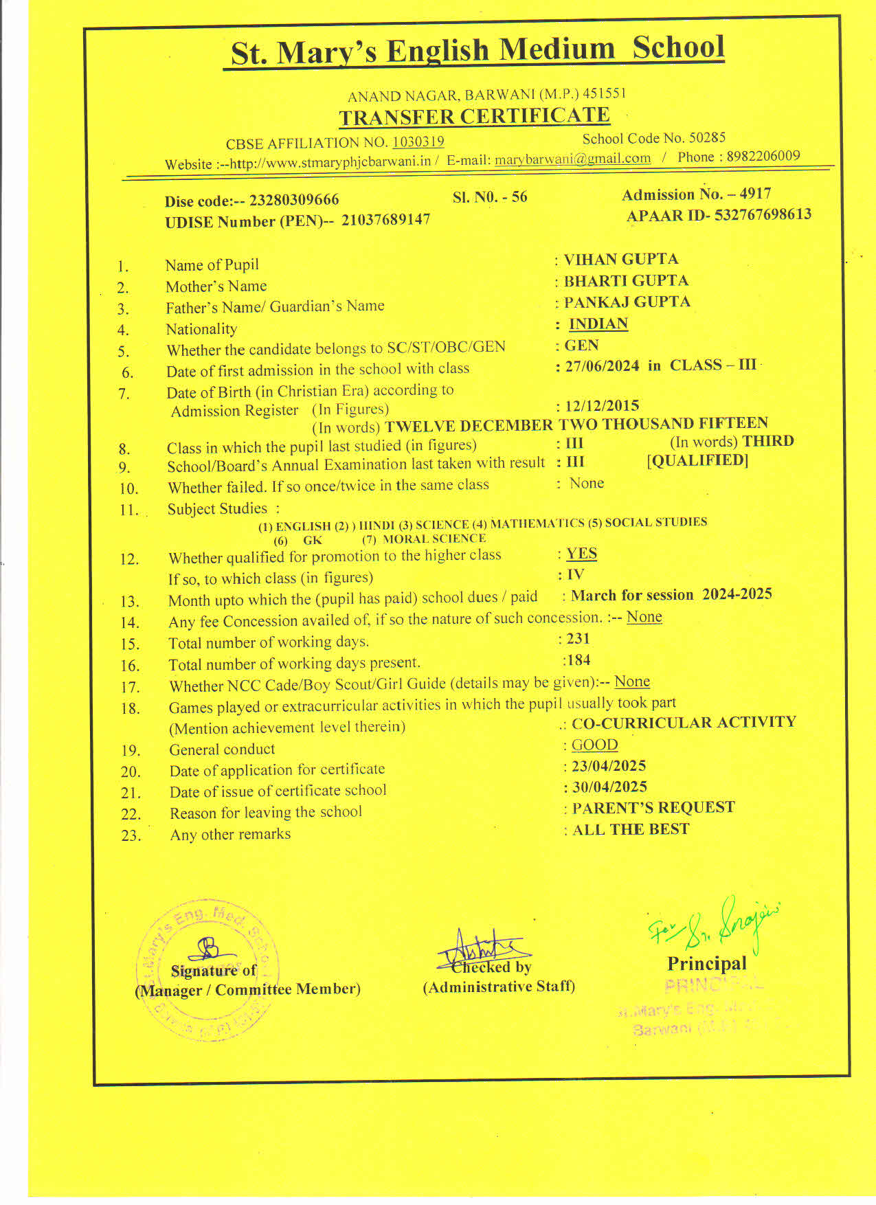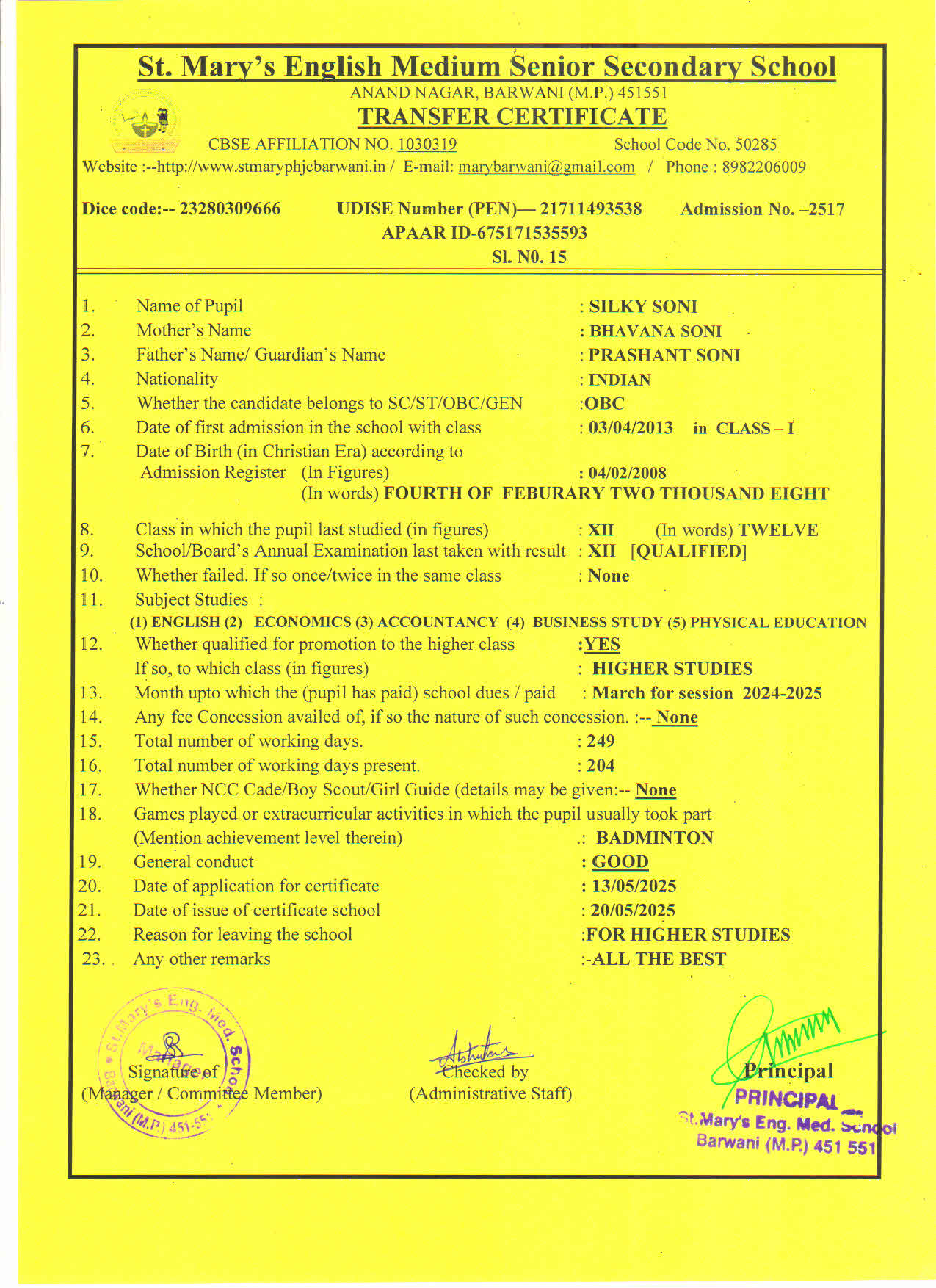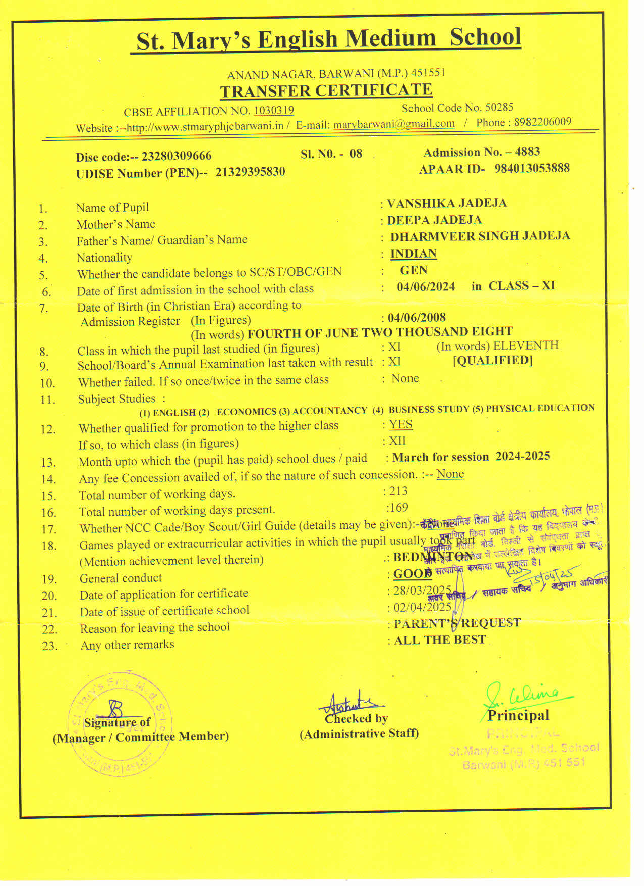 | 18 | Prisha Suryawanshi | XII | View | Download |