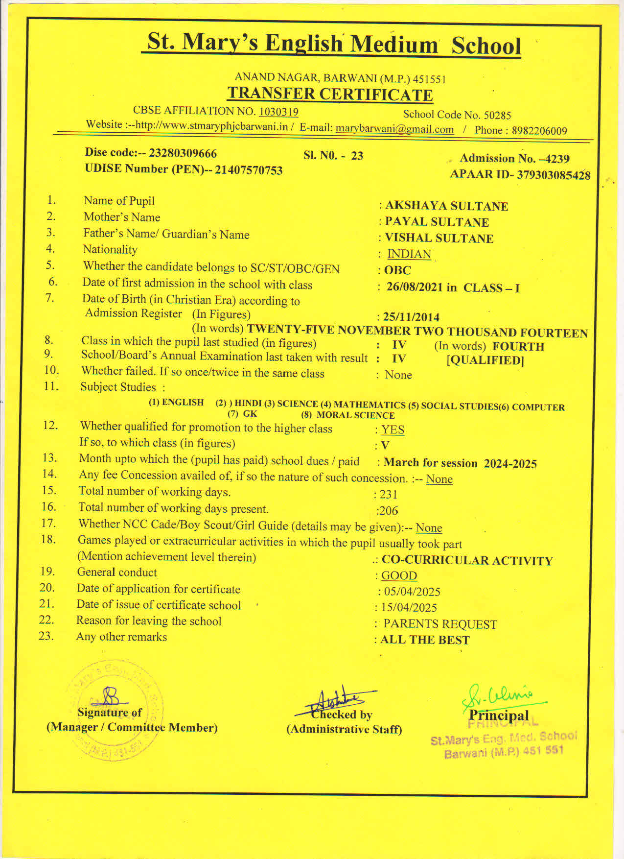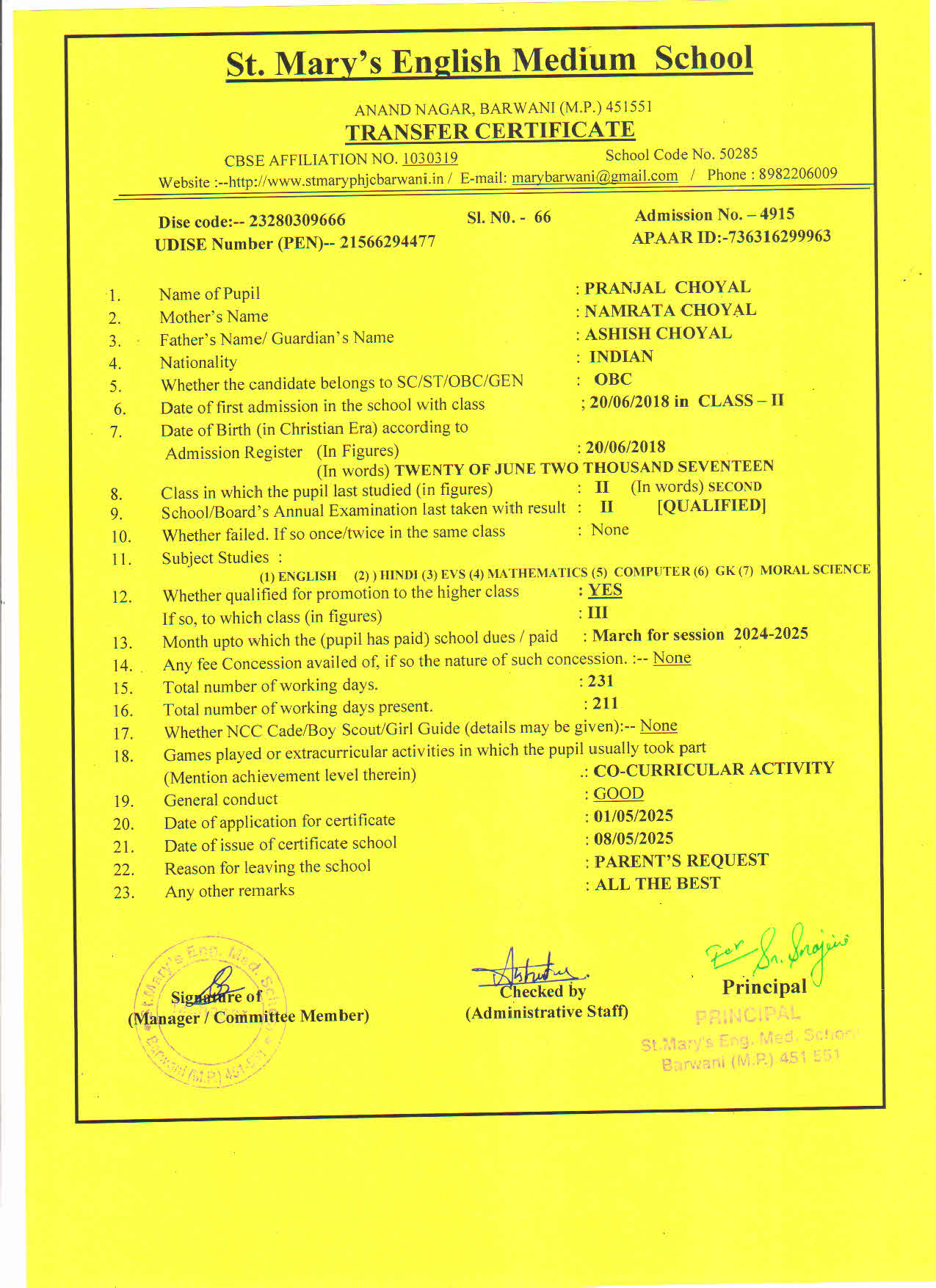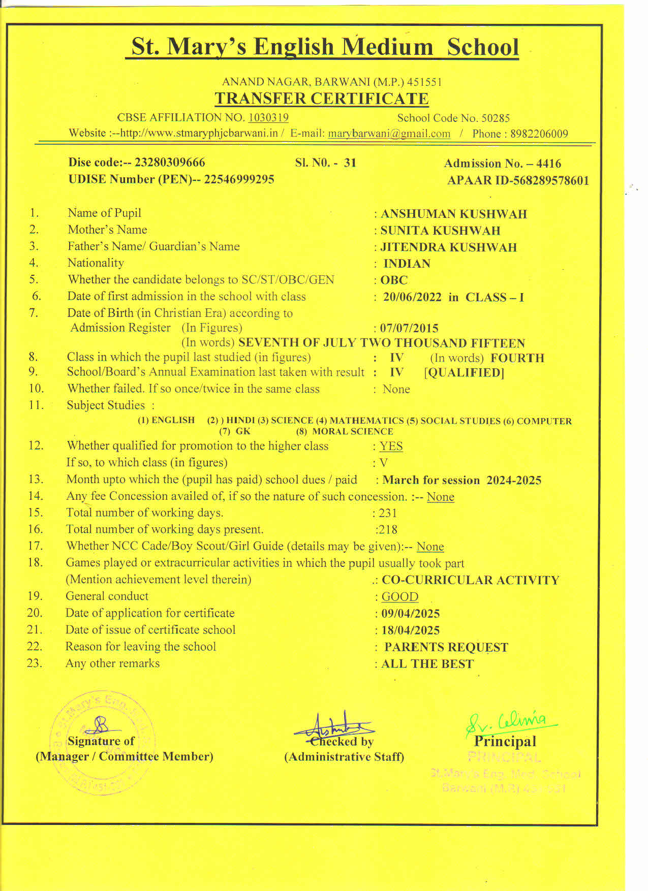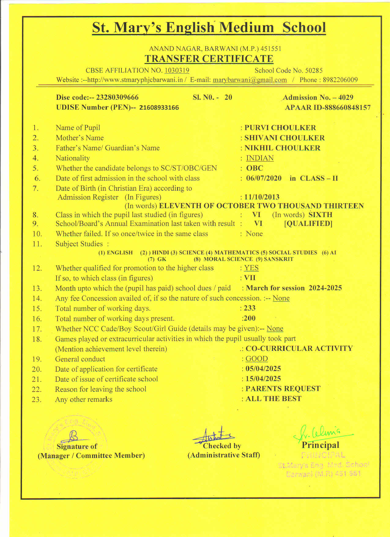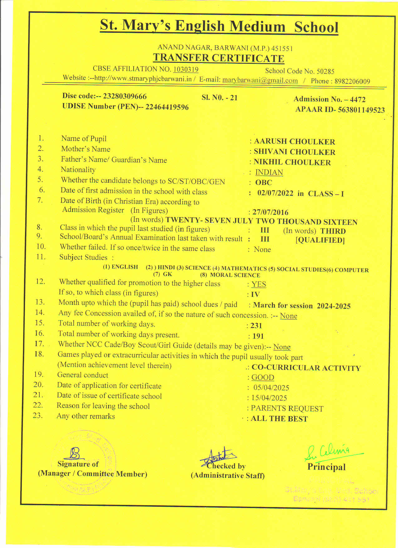 | 18 | Prisha Suryawanshi | XII | View | Download |