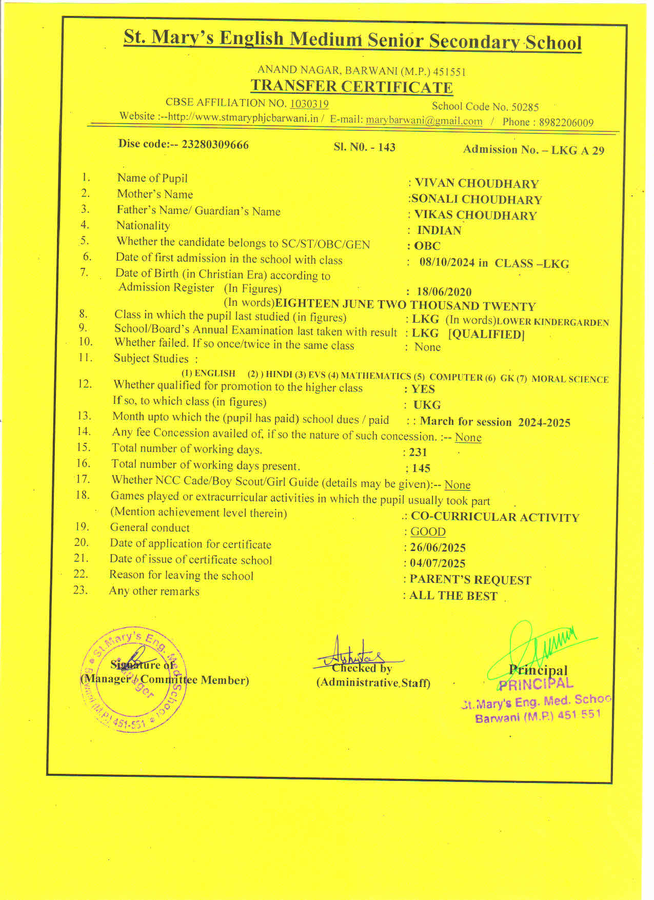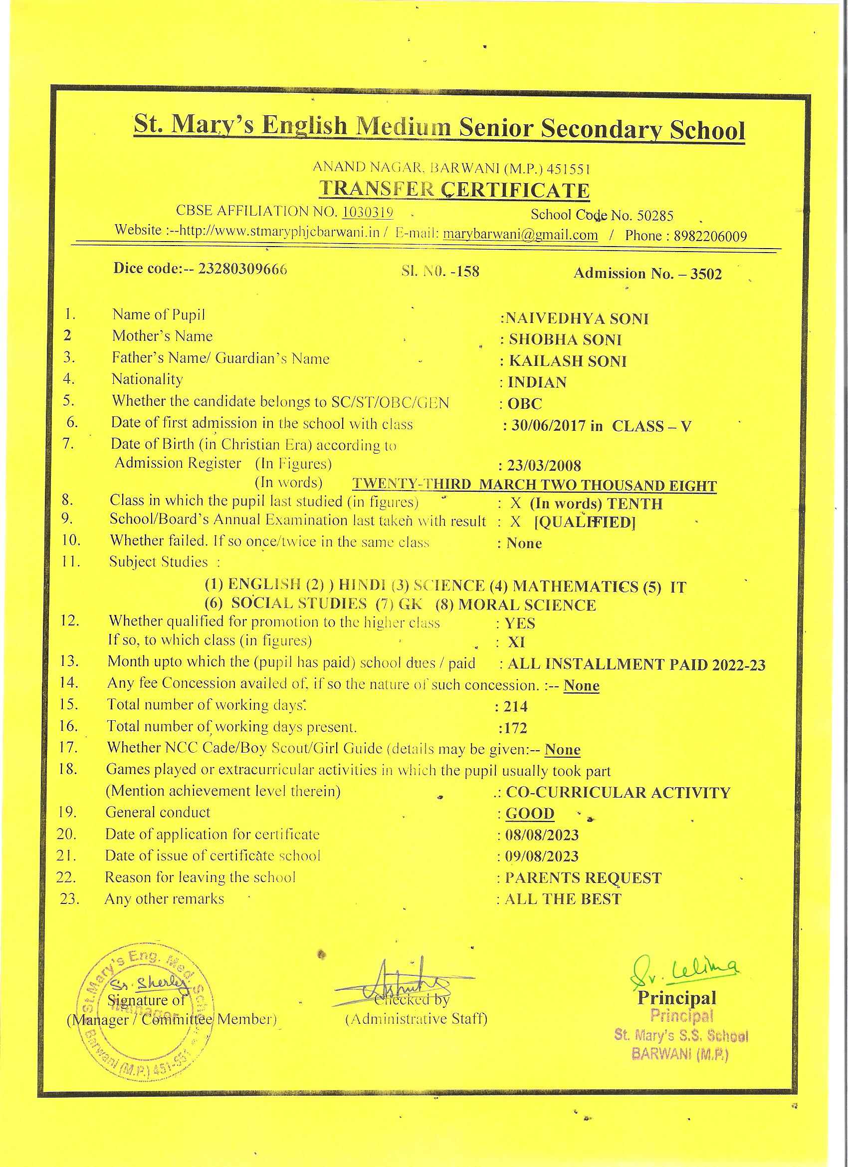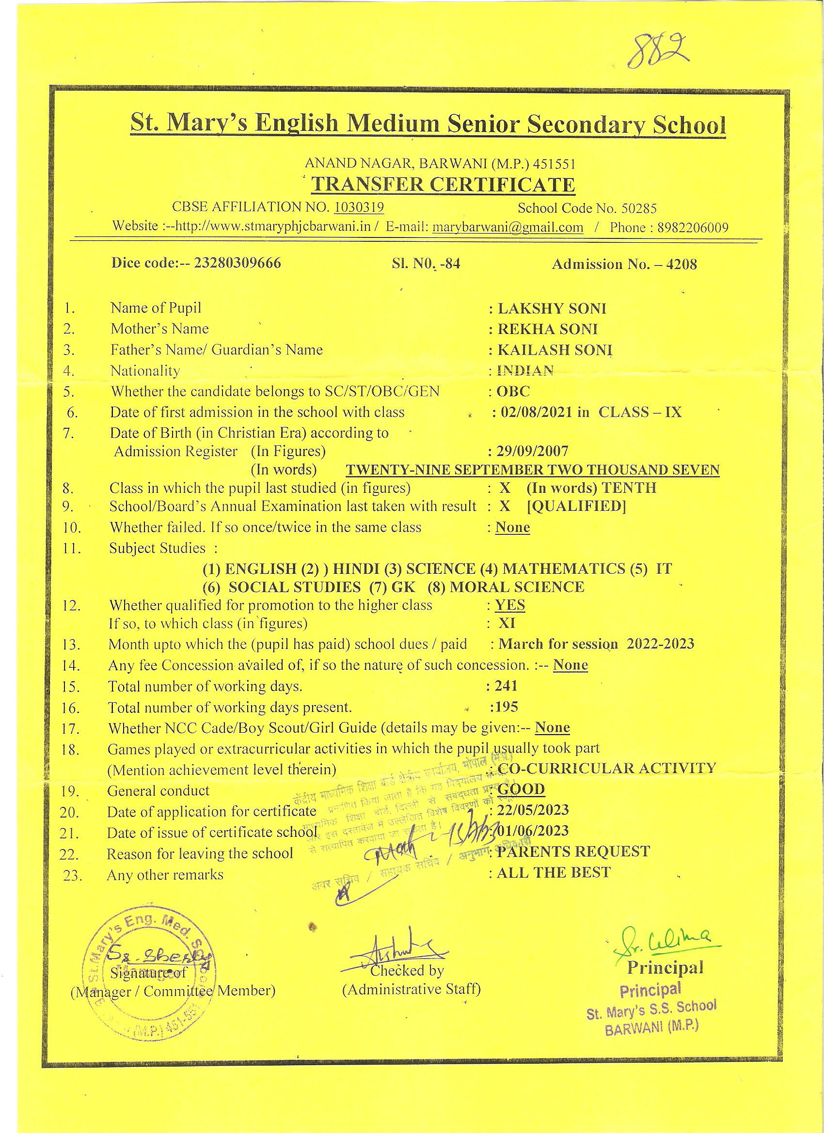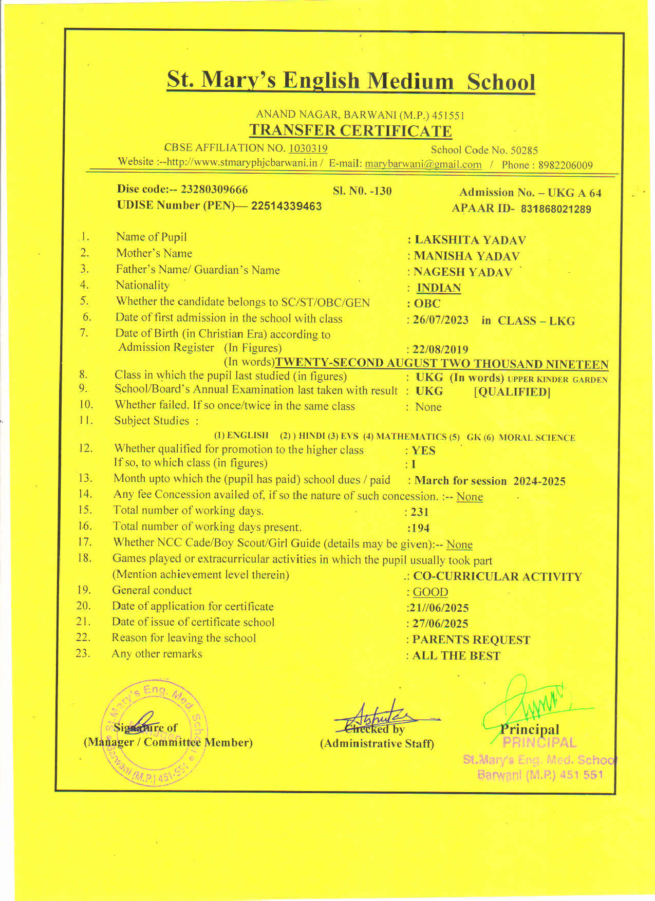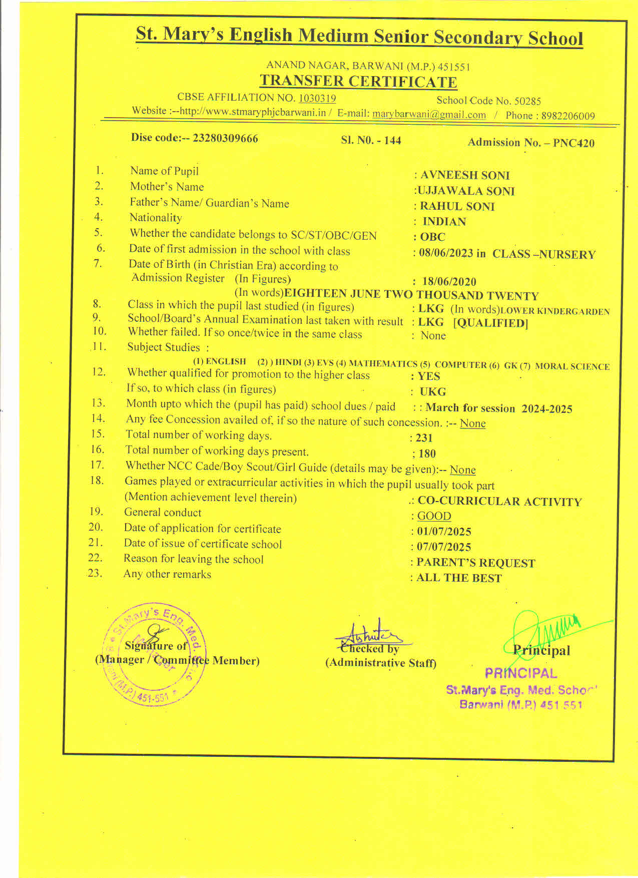 | 51 | AVNEESH SONI | LKG | View | Download |
