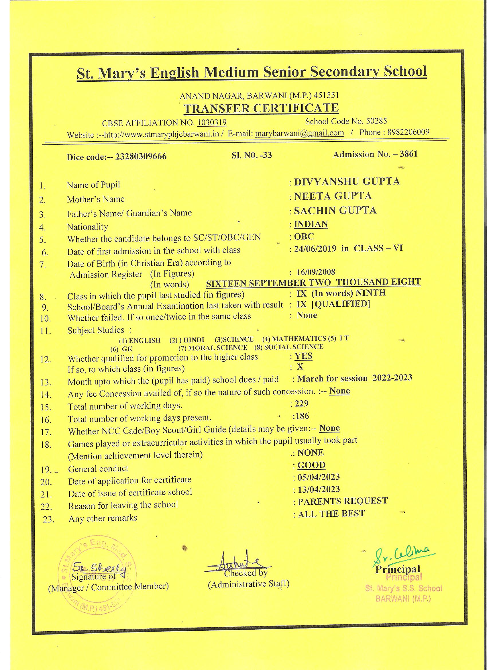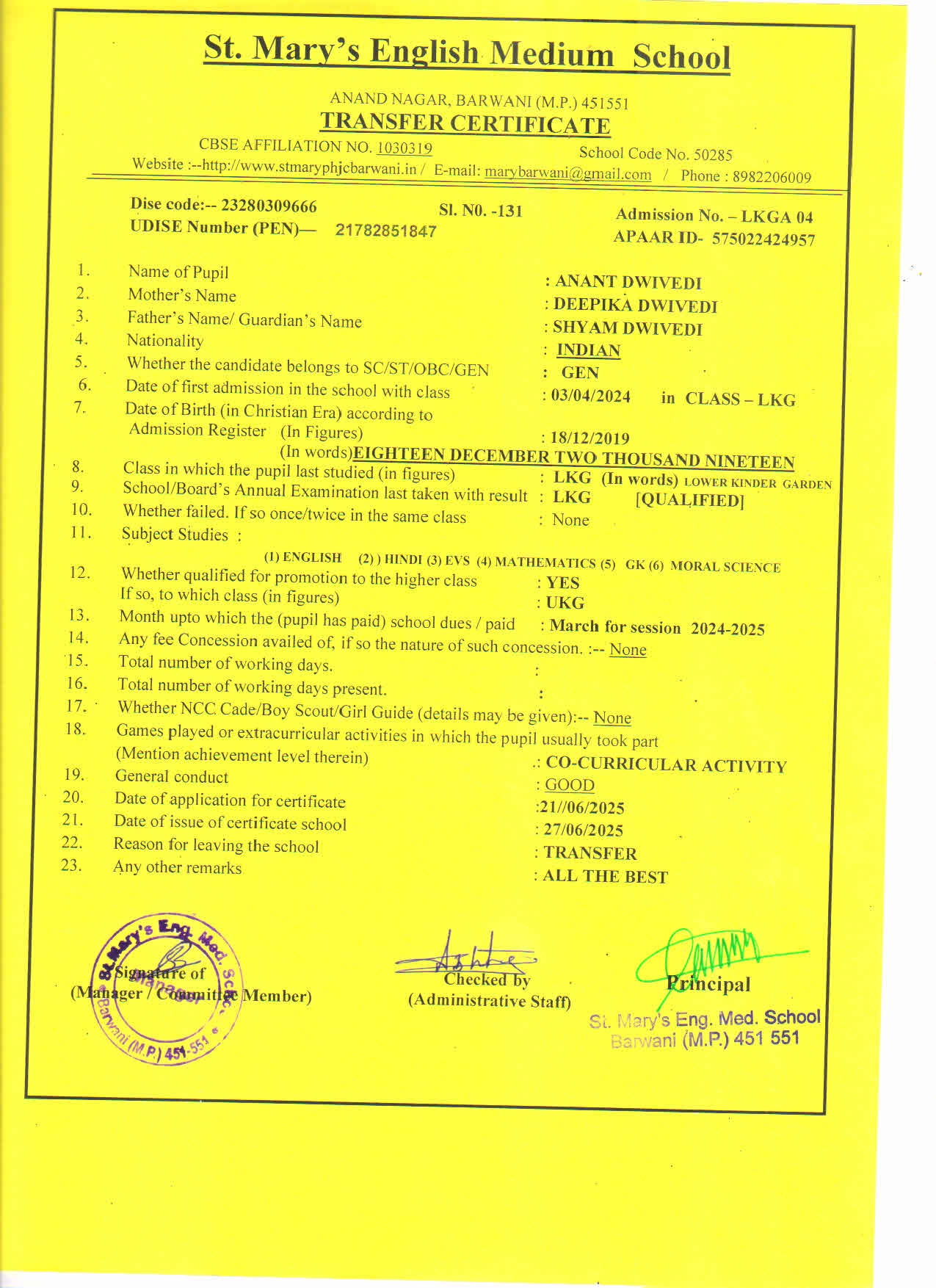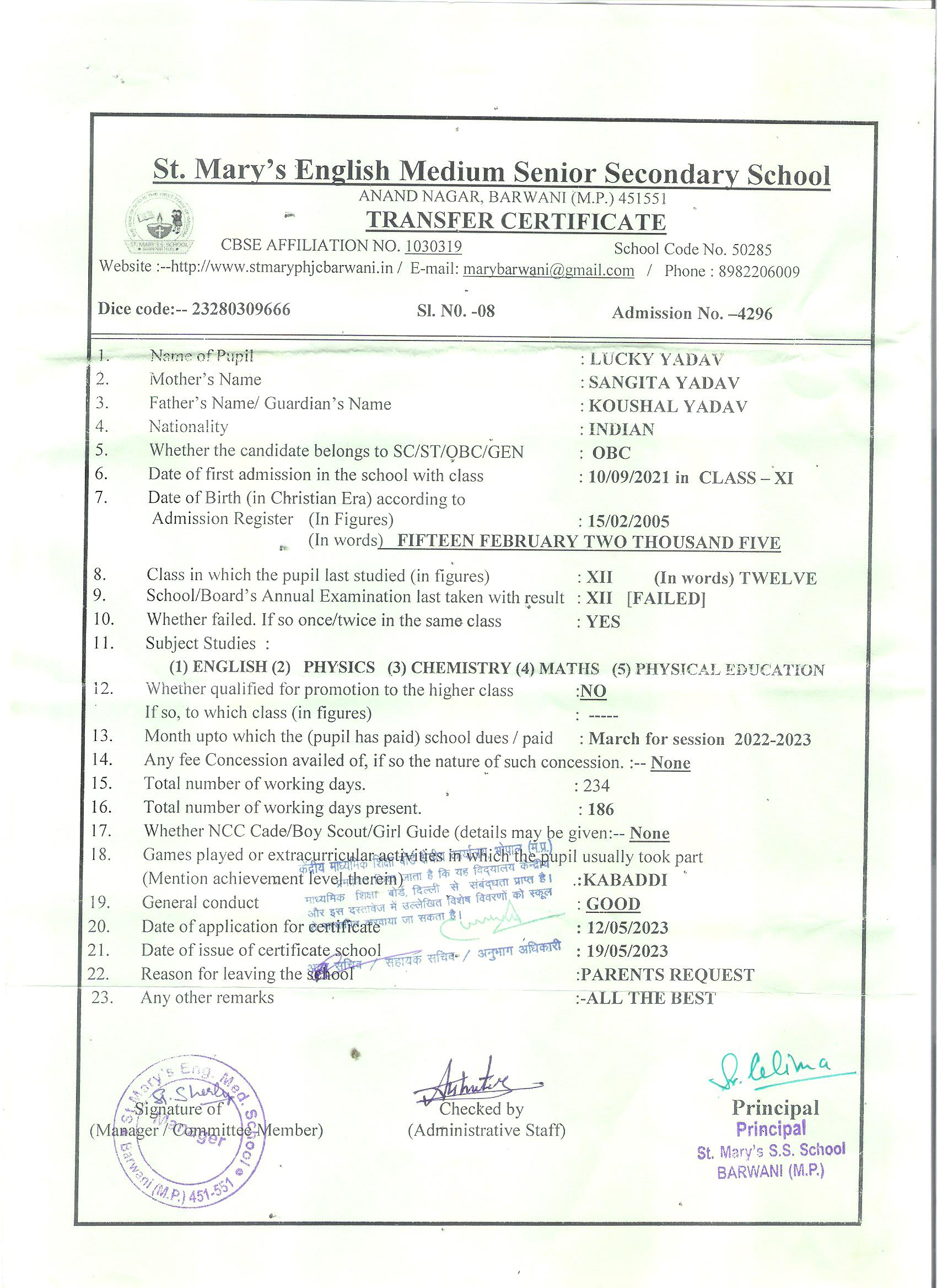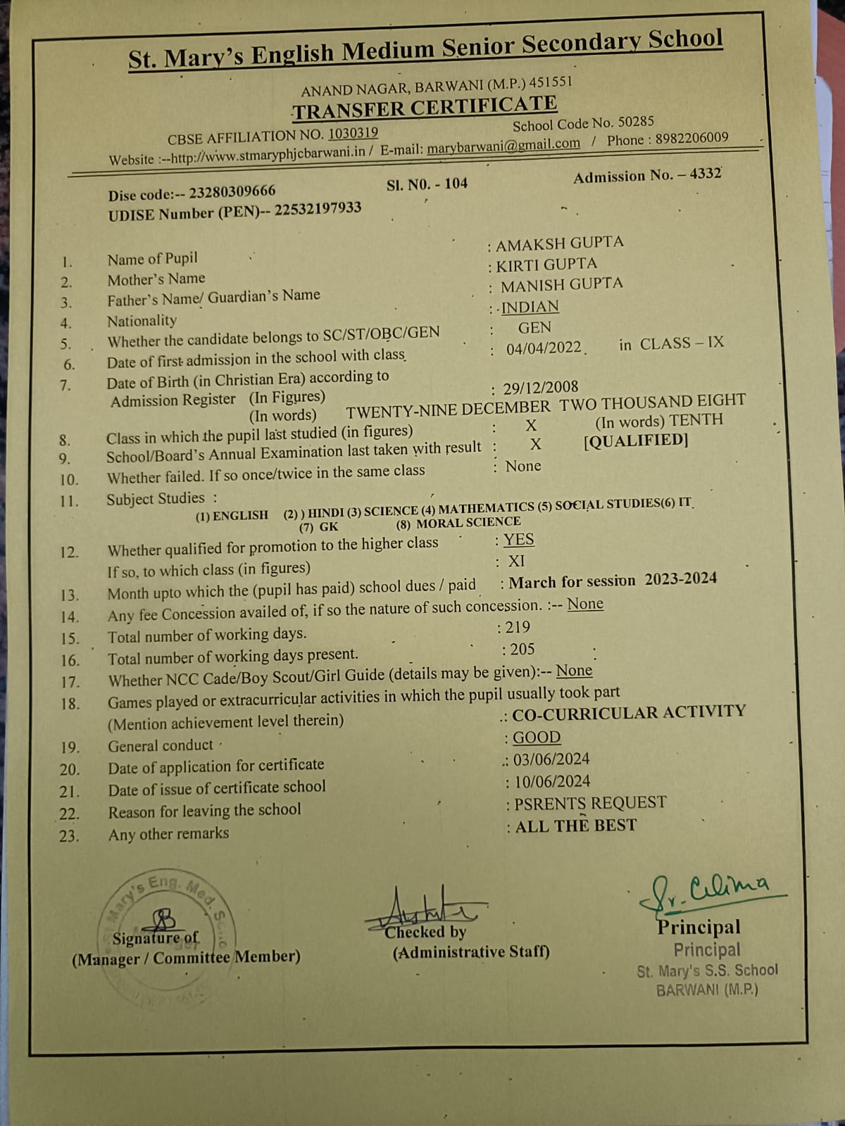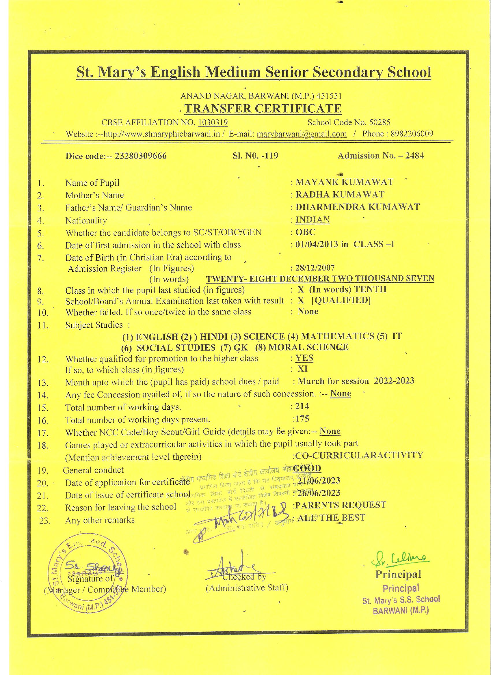 | 51 | AVNEESH SONI | LKG | View | Download |
