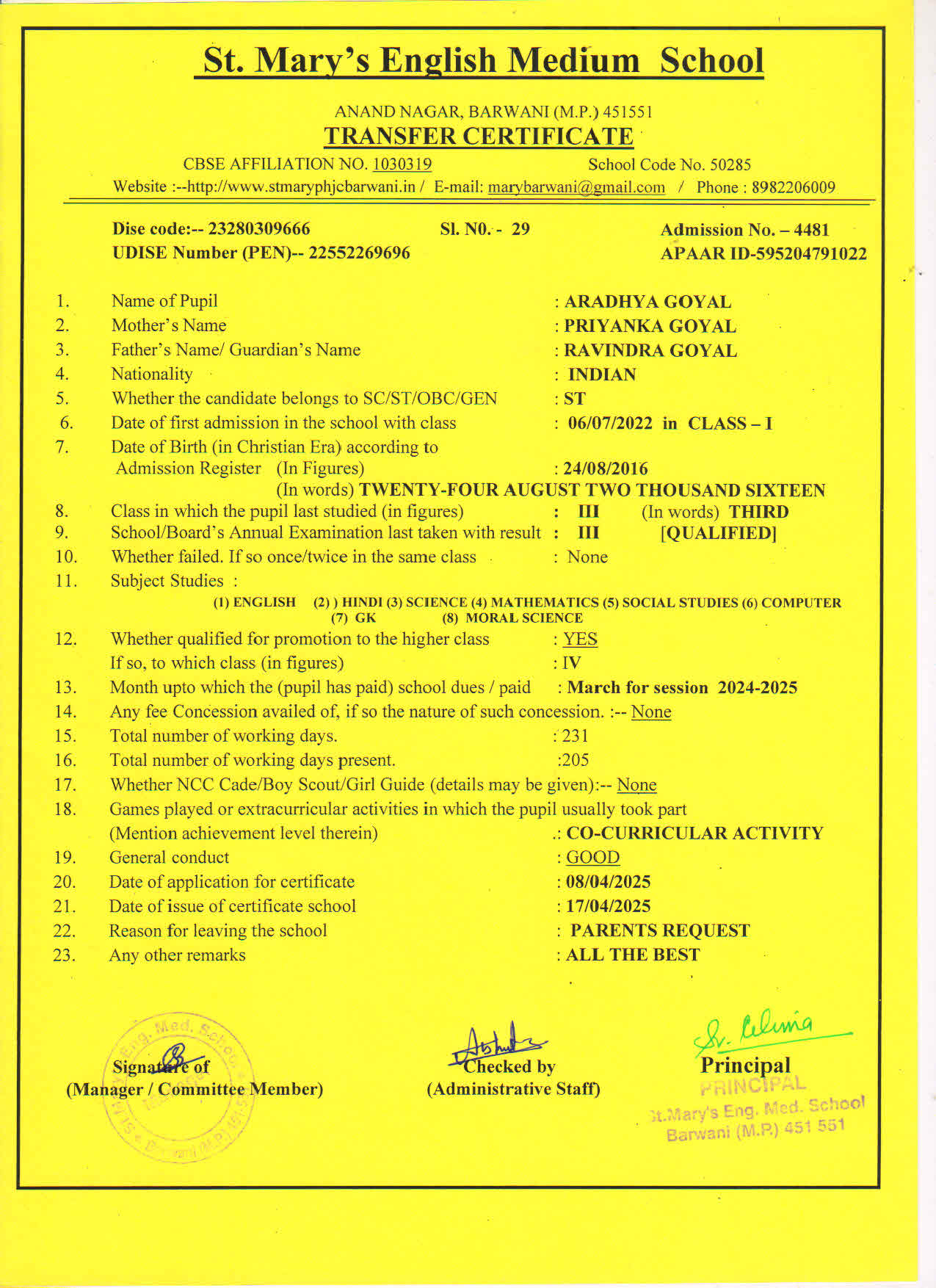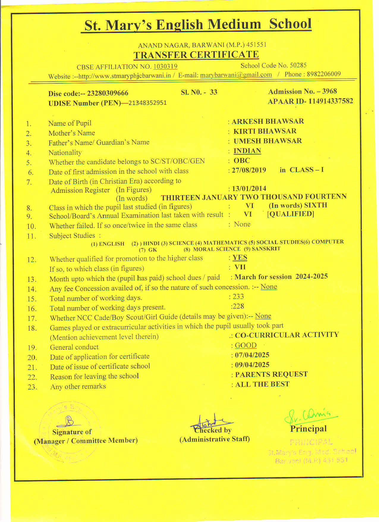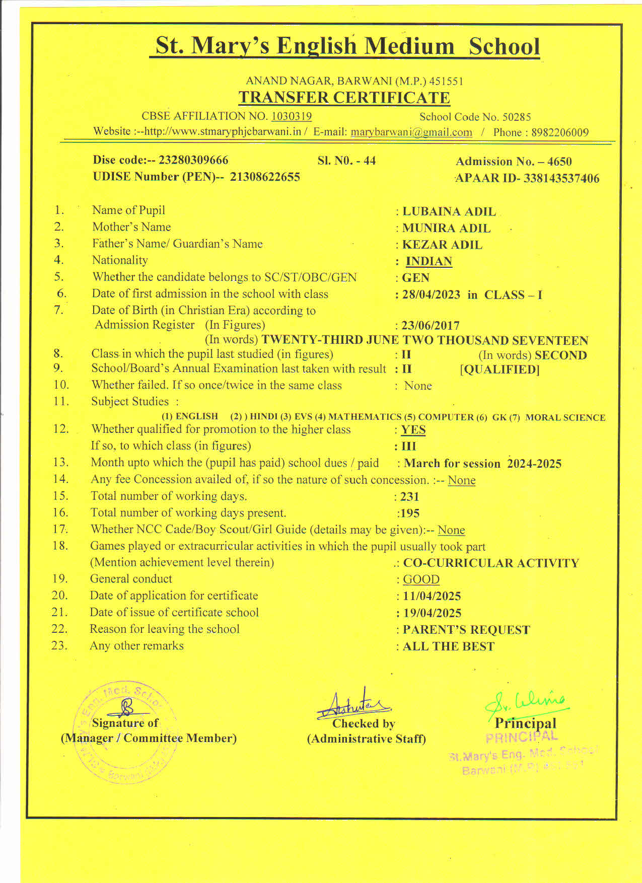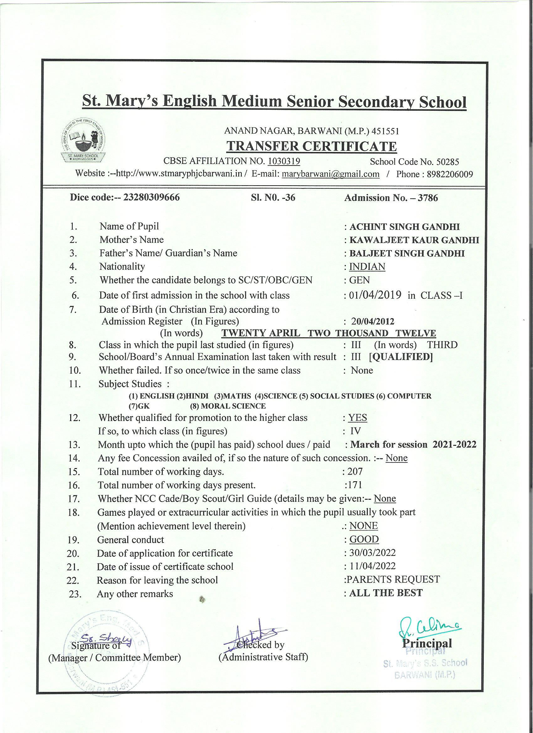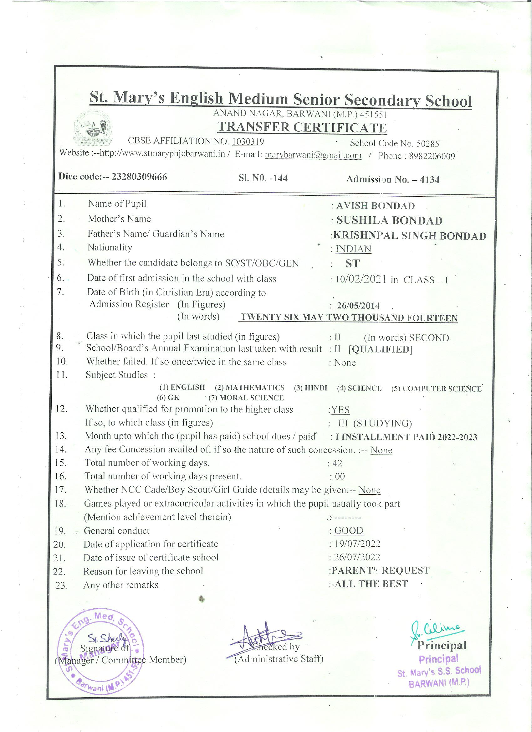 | 51 | AVNEESH SONI | LKG | View | Download |