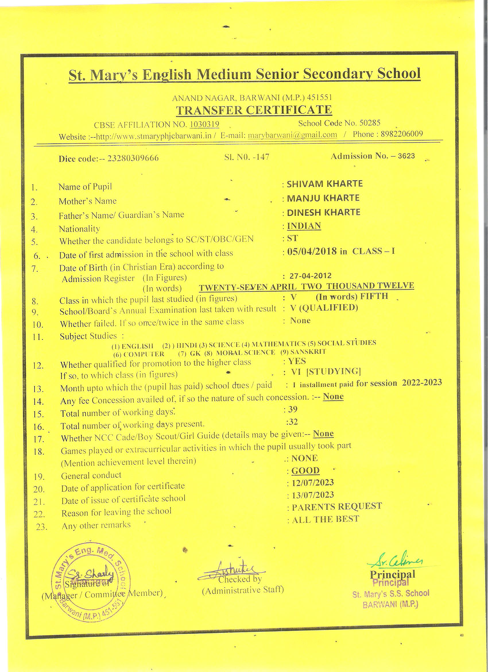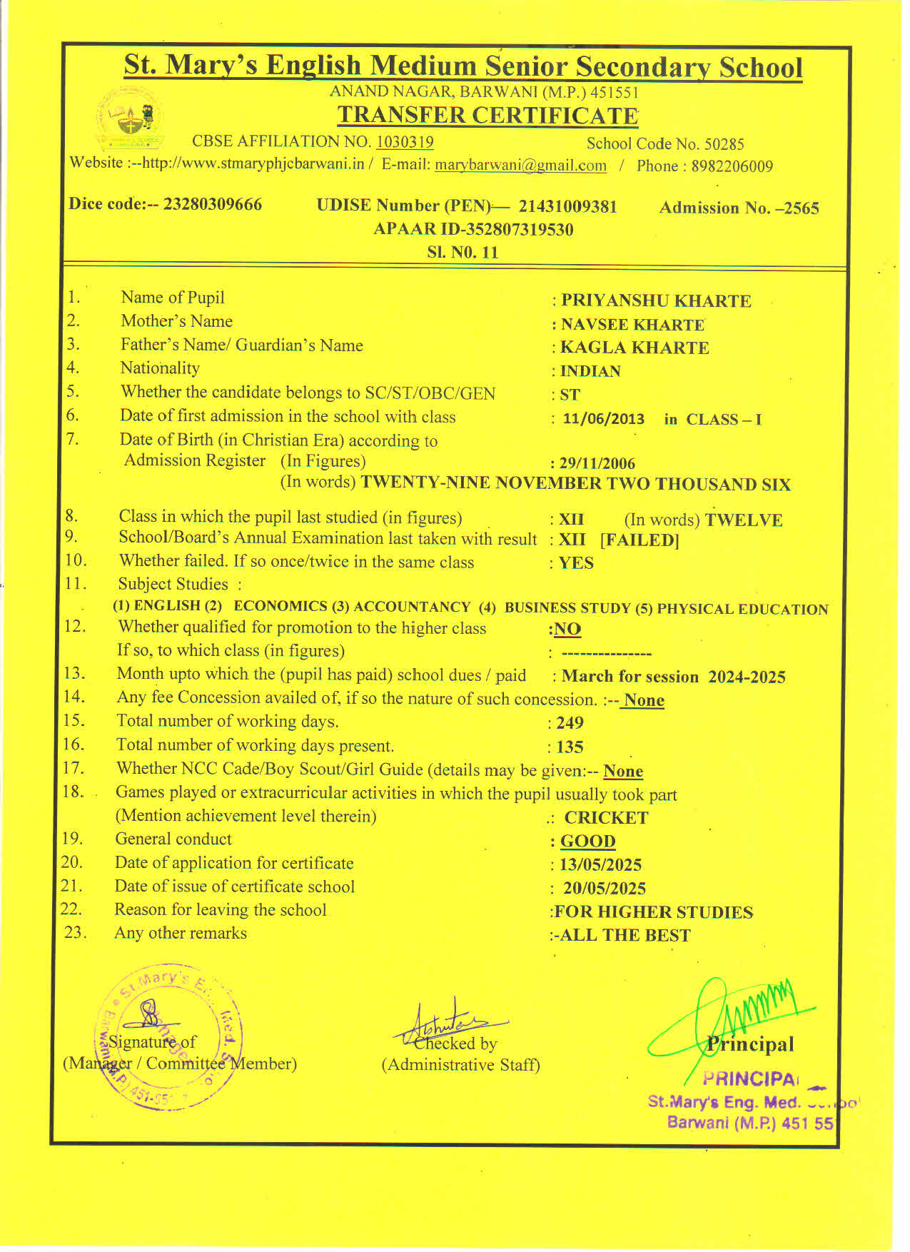 | 20 | Priyanshu Kharte | XII | View | Download |