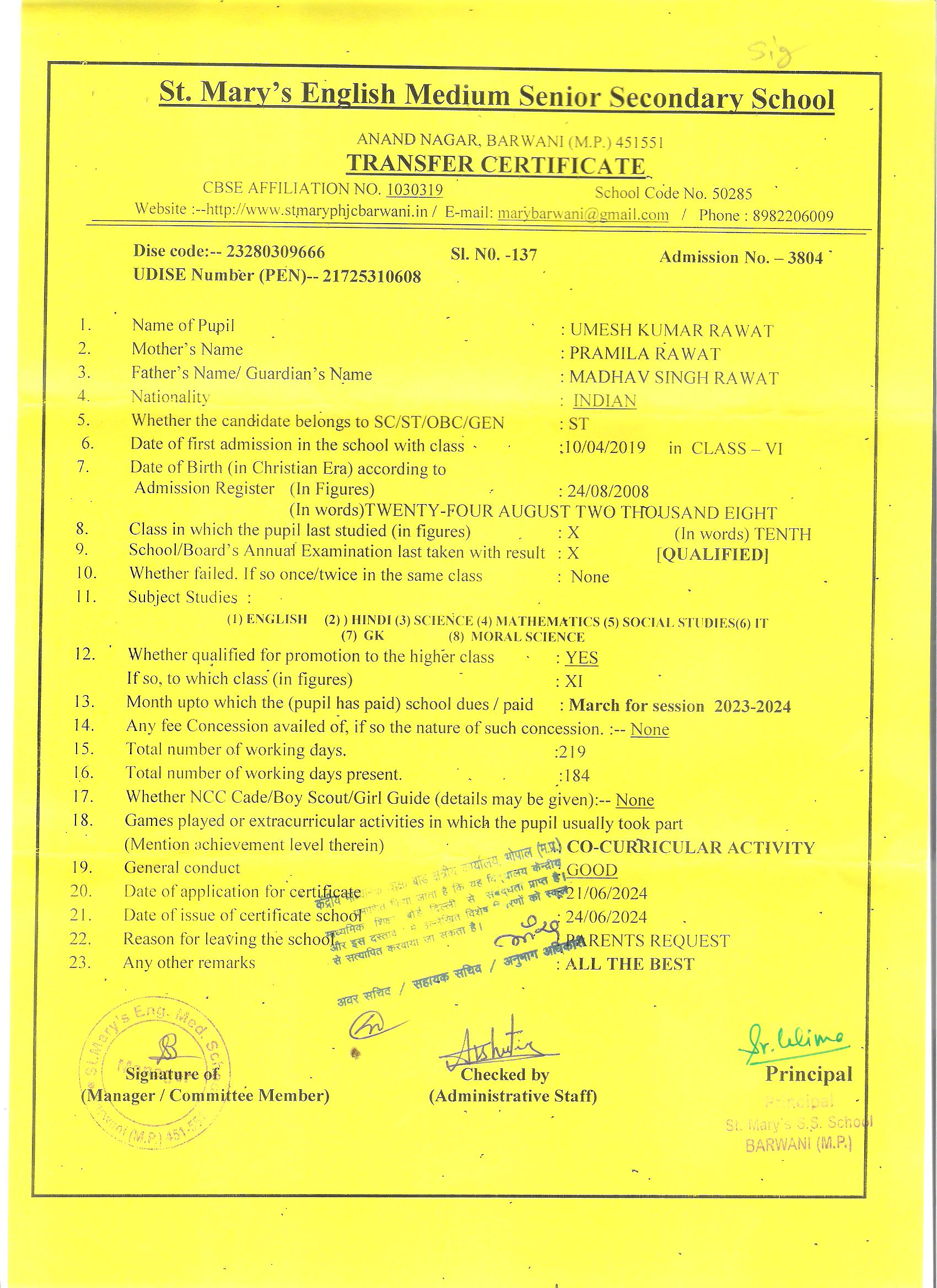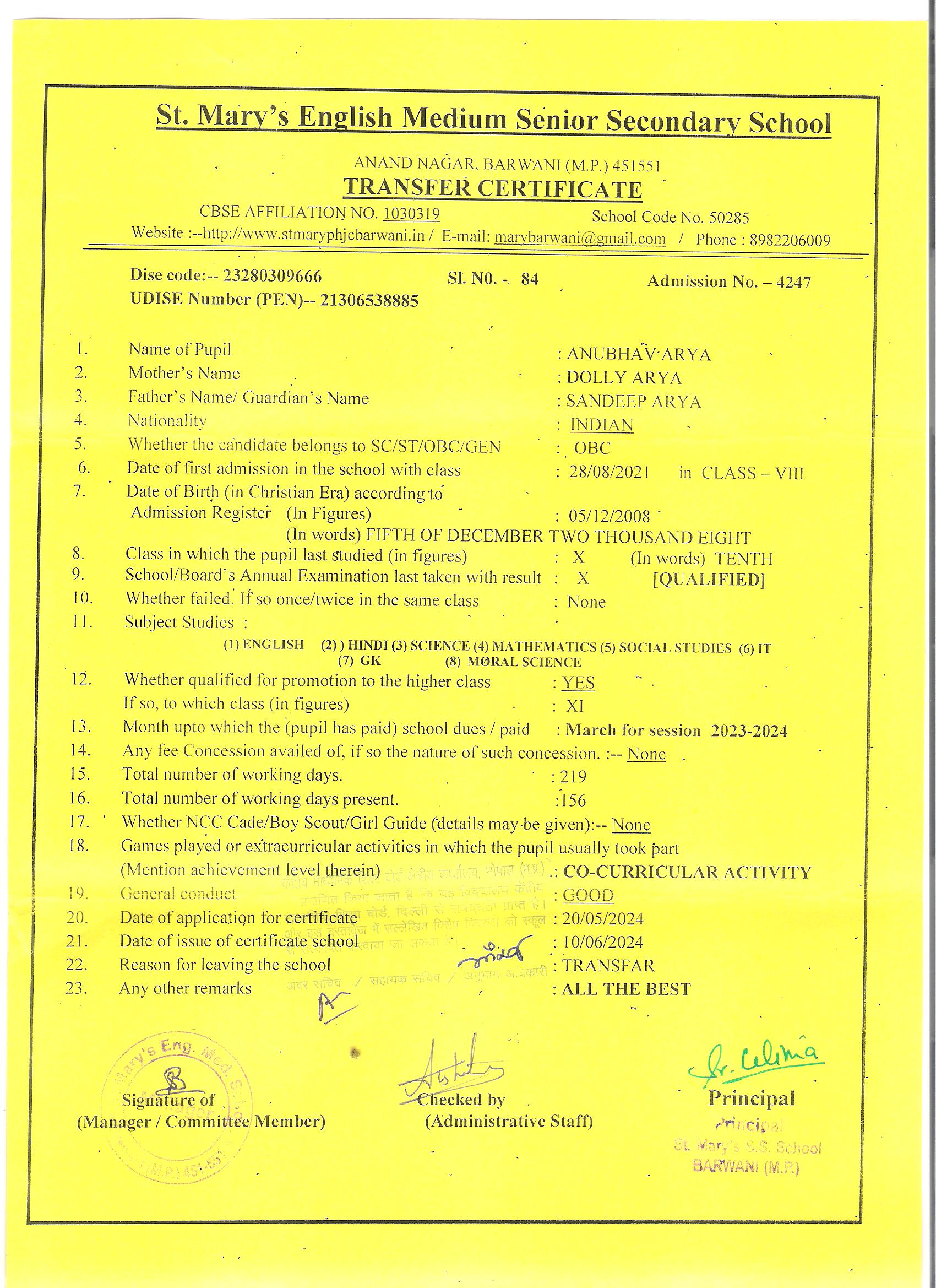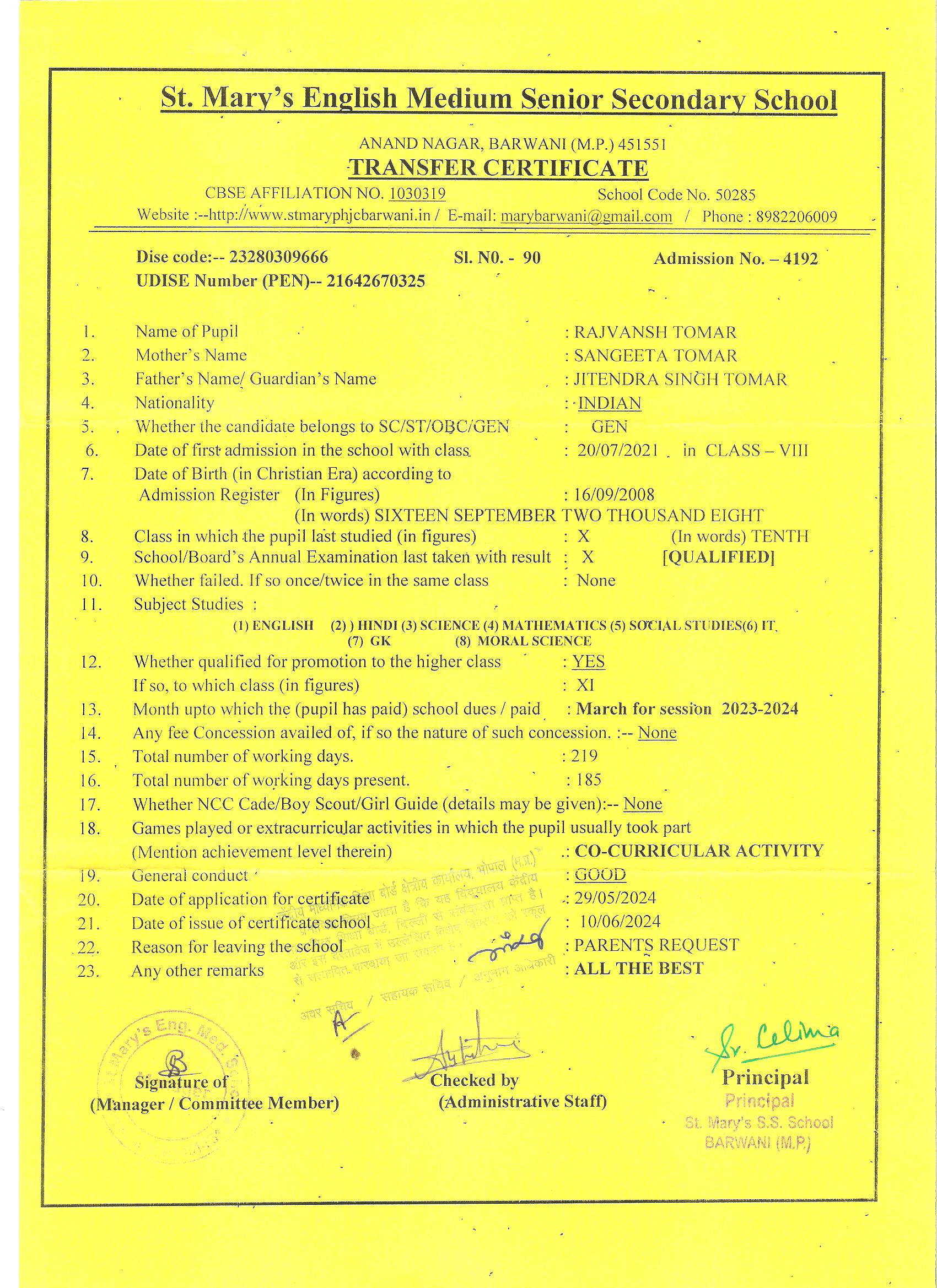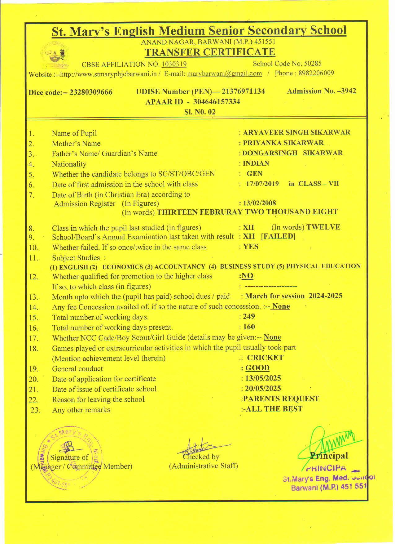 | 6 | Aryaveer Singh Sikharwar | XII | View | Download |