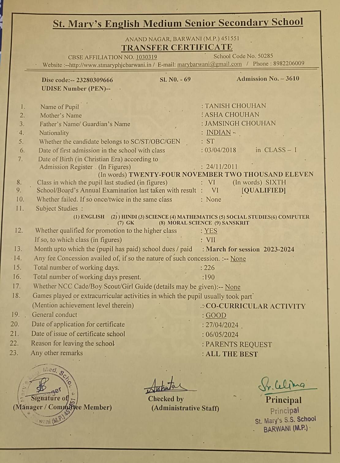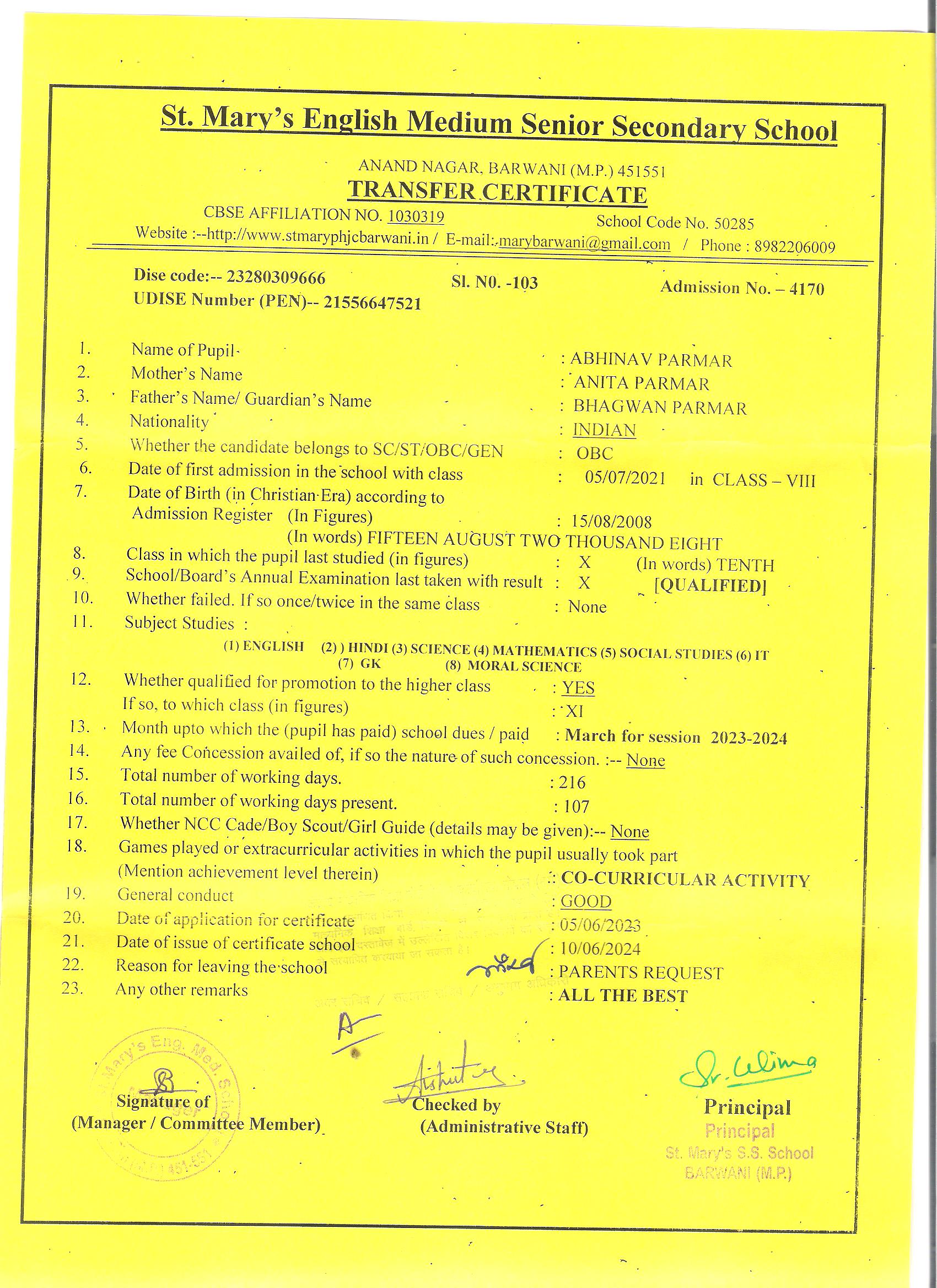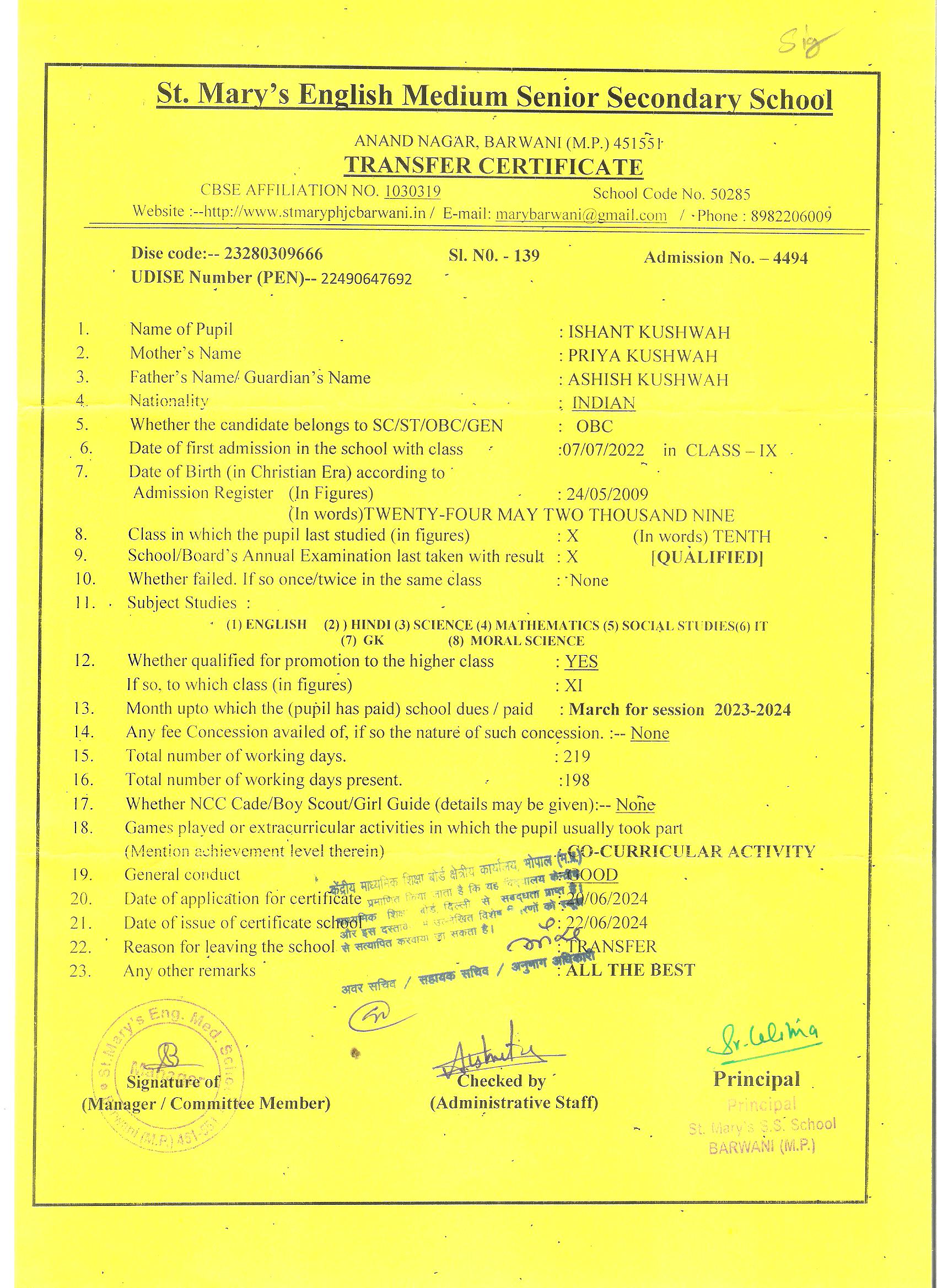 | 6 | Aryaveer Singh Sikharwar | XII | View | Download |