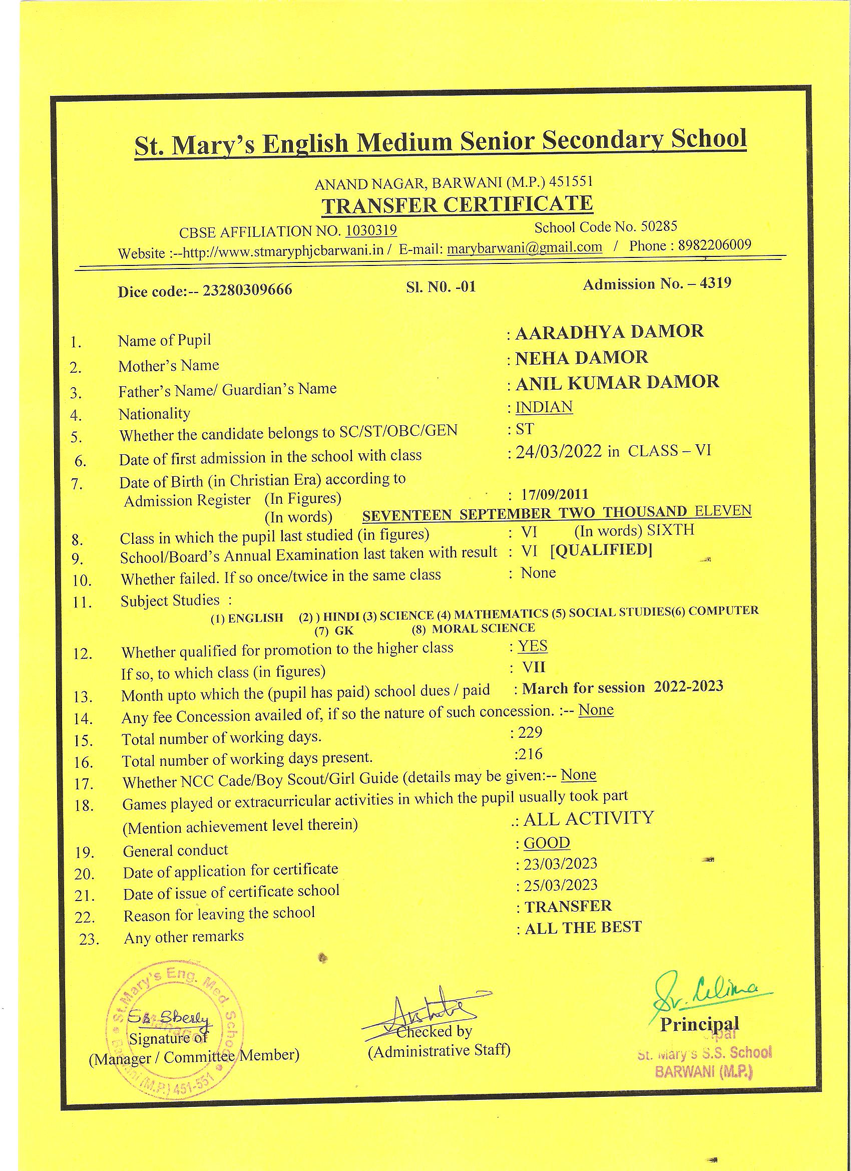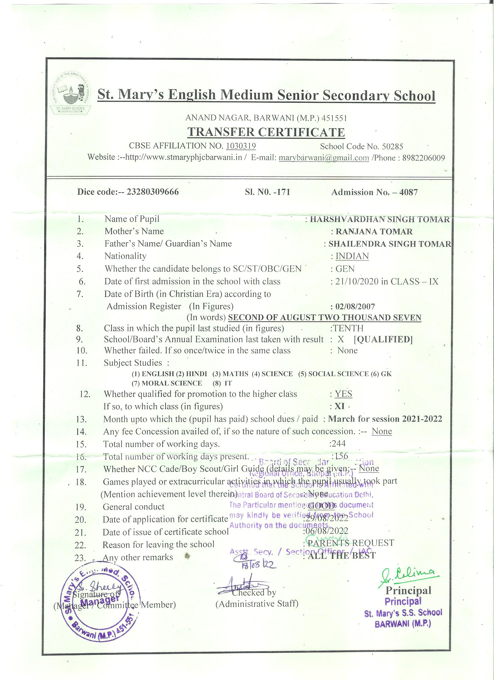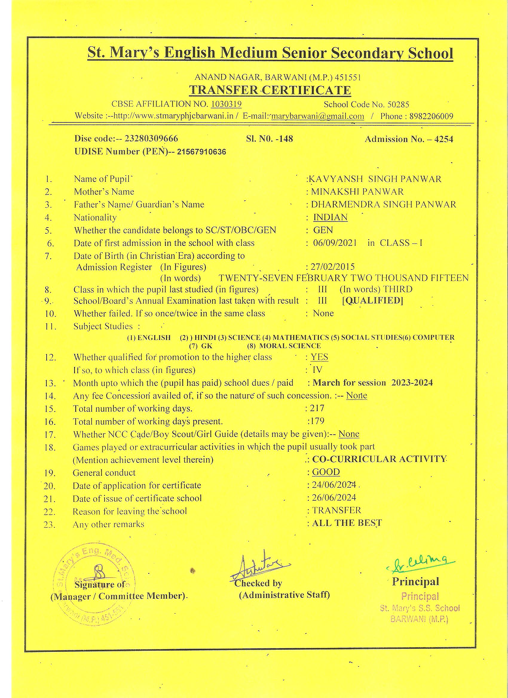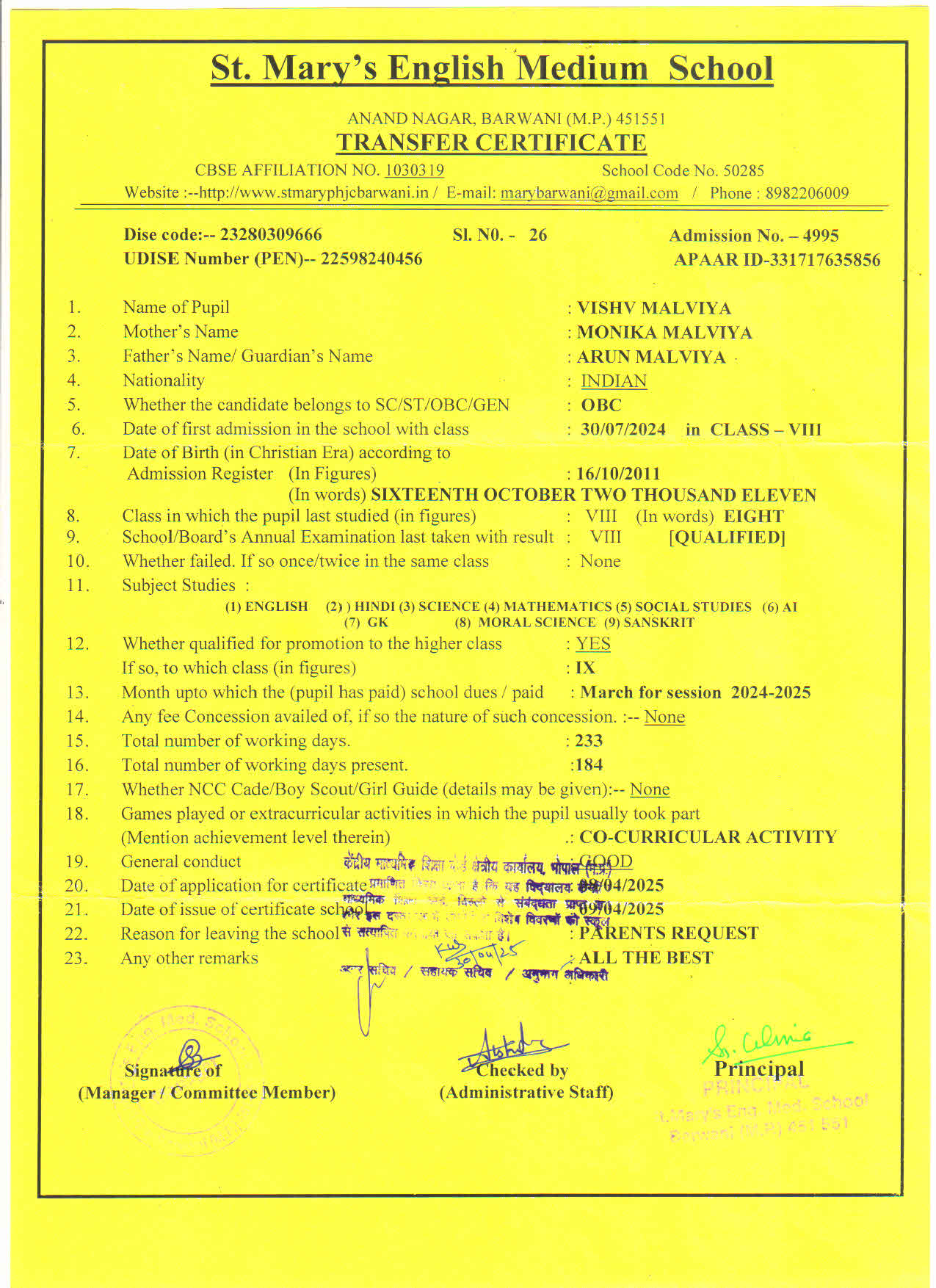 | 6 | Aryaveer Singh Sikharwar | XII | View | Download |