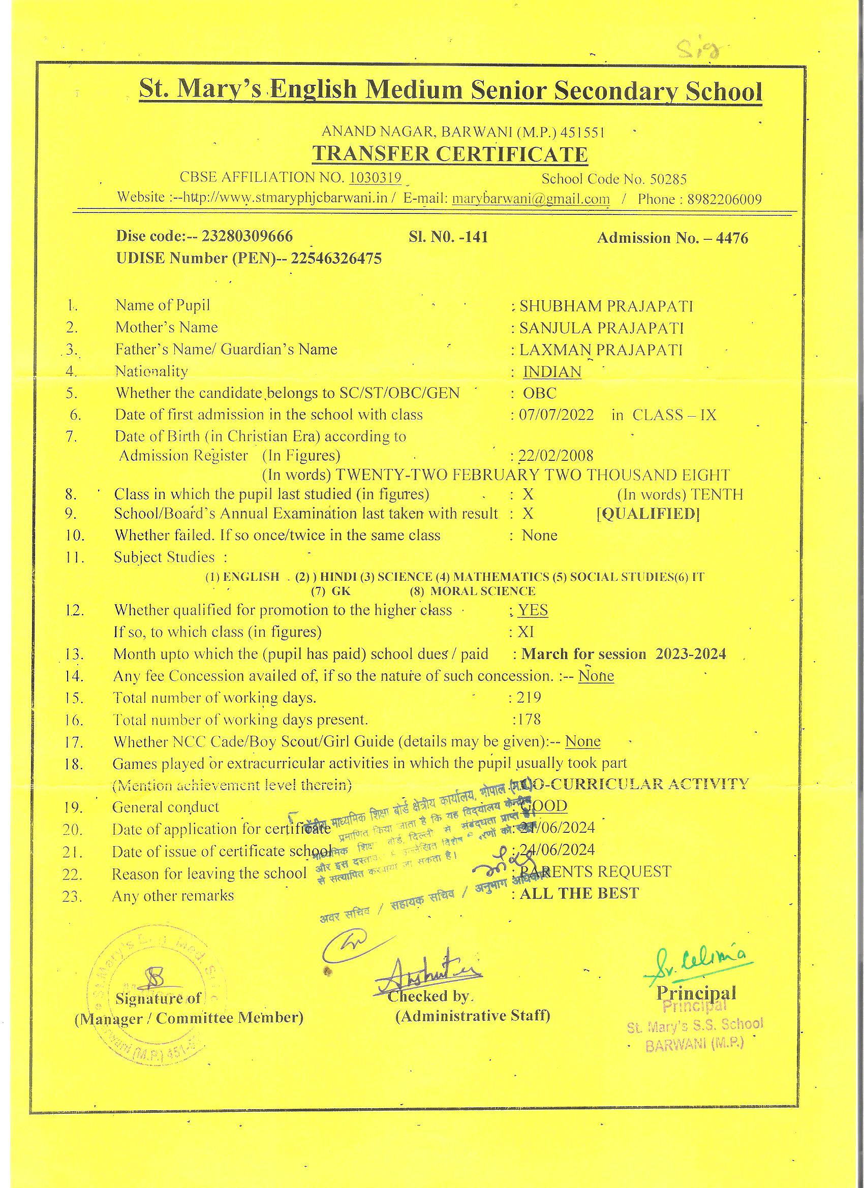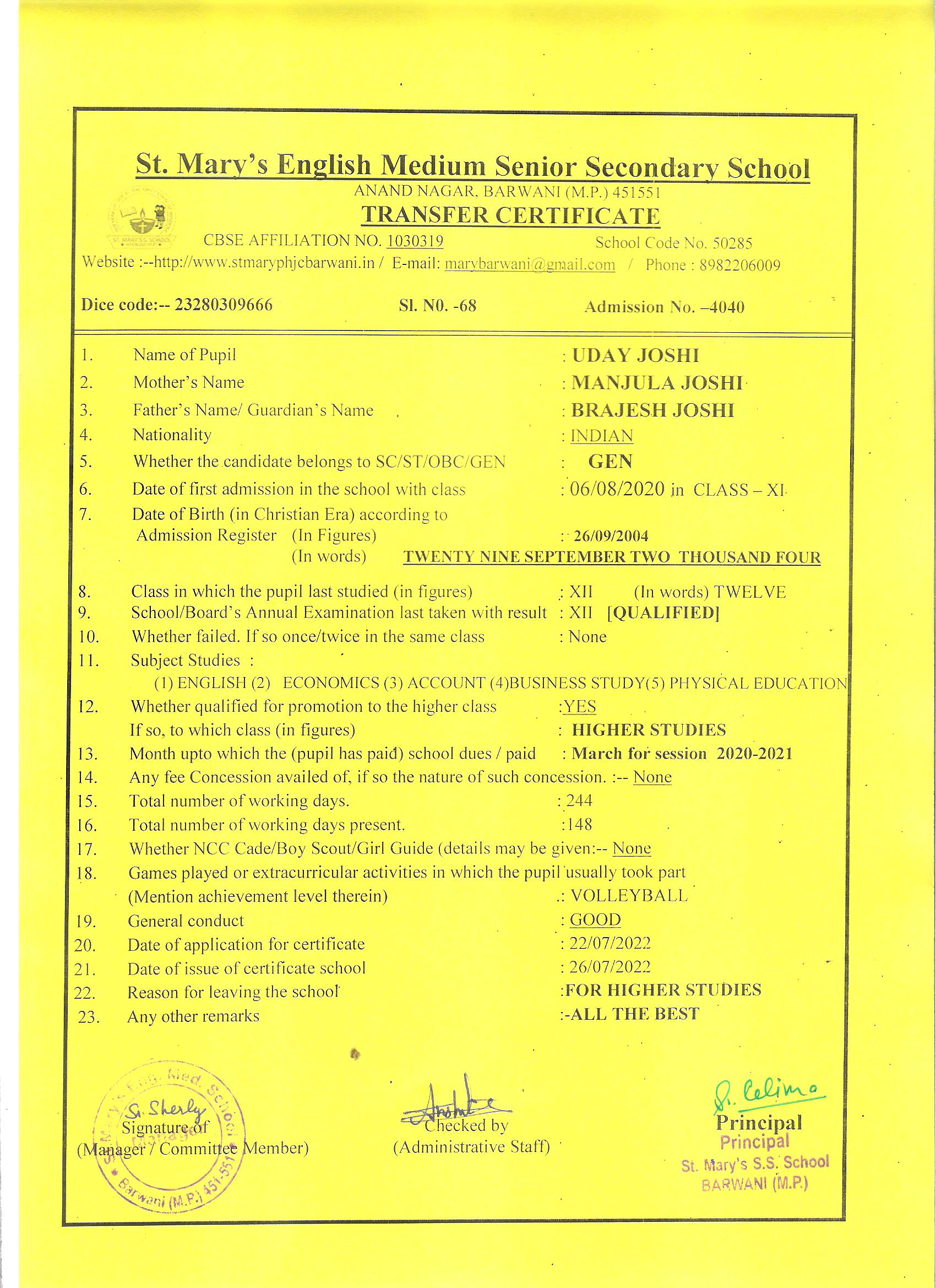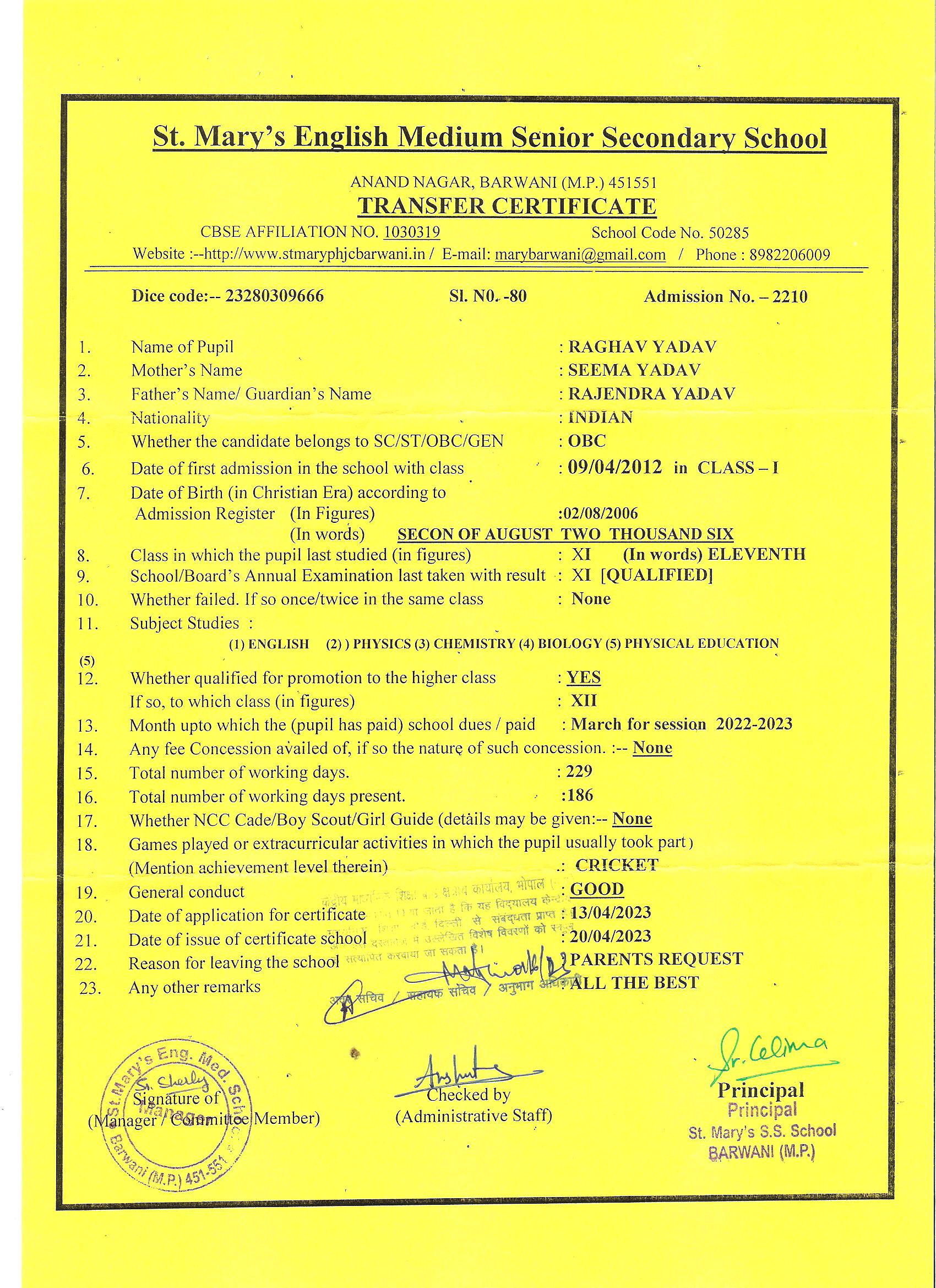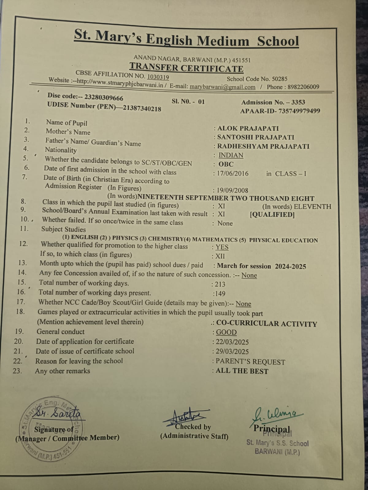 | 38 | ALOK PRAJAPAT | XI | View | Download |