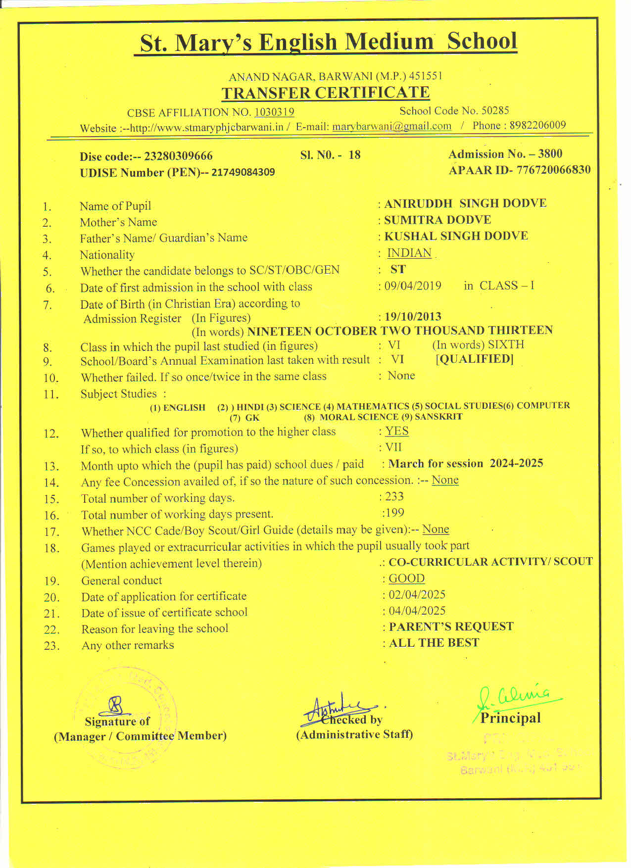 | 41 | ANIRUDDH DODWE | VI | View | Download |