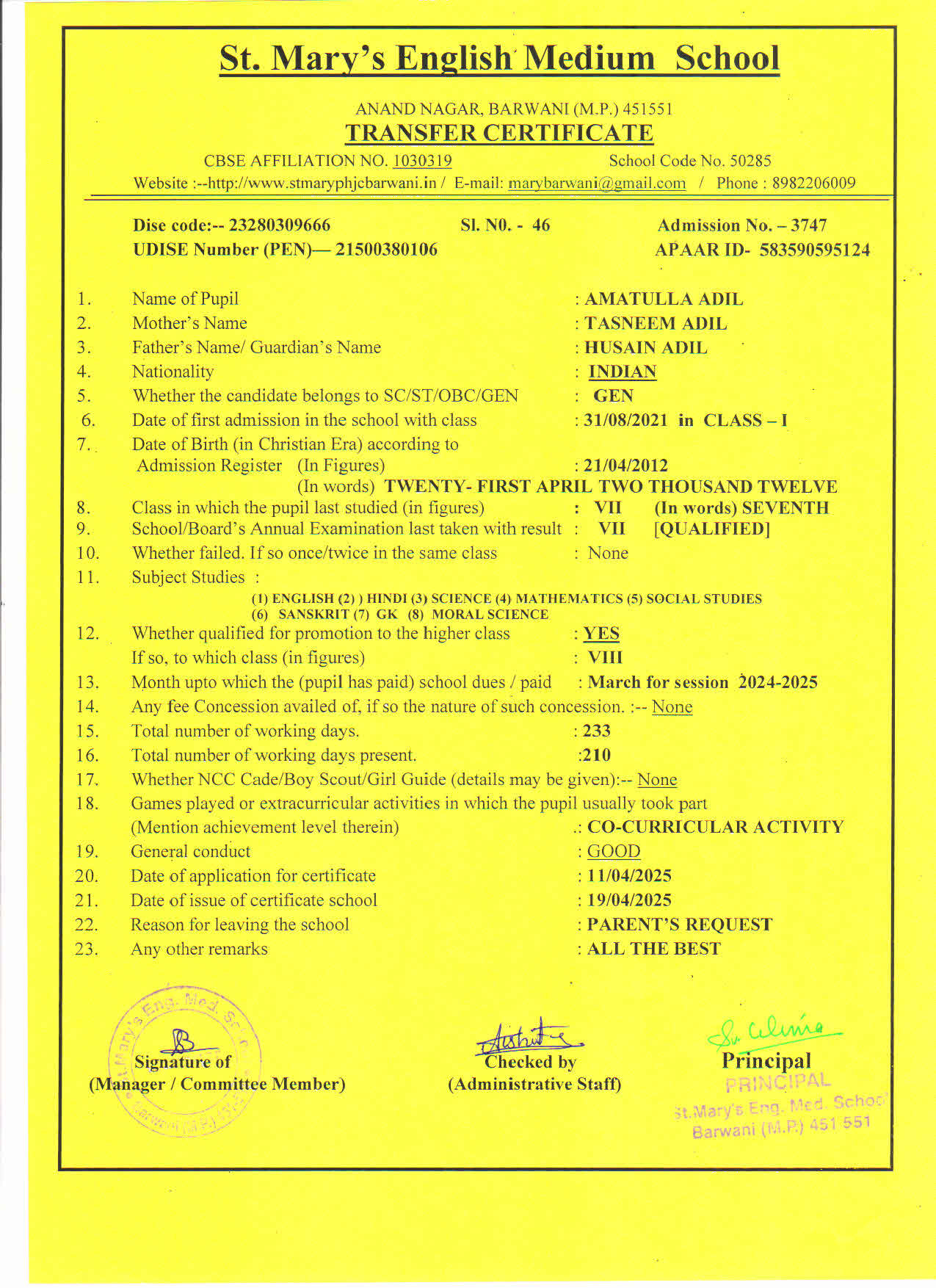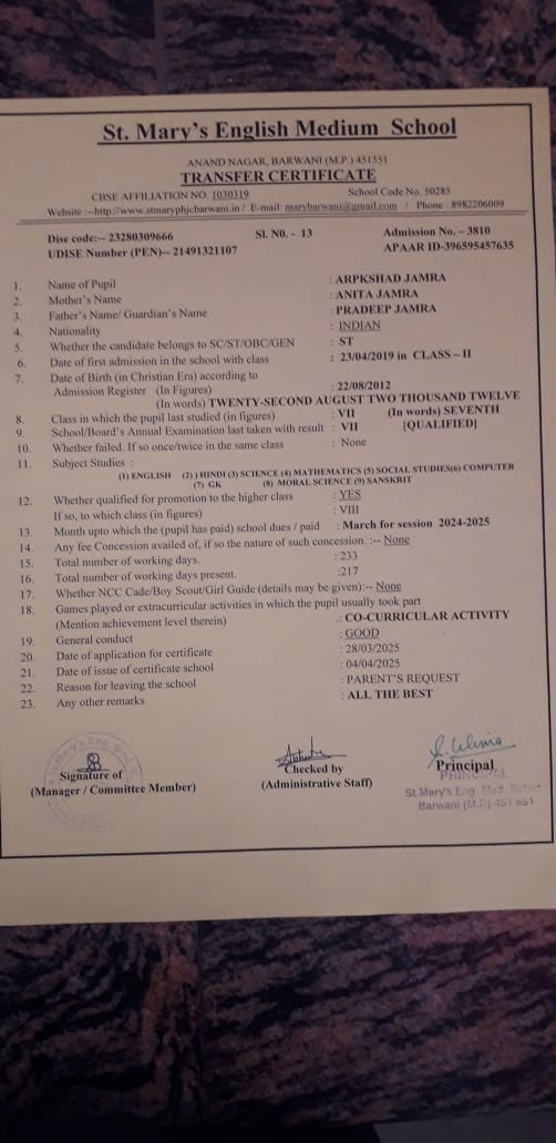 | 47 | ARPKSHAD JAMRA | VII | View | Download |
