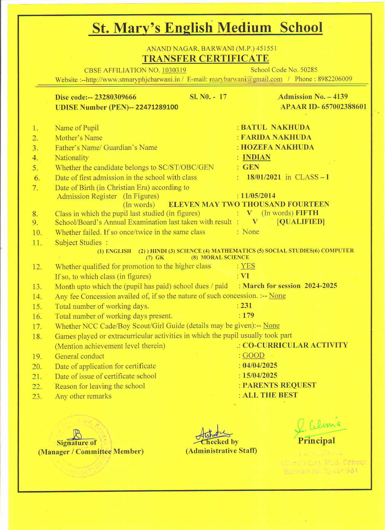 | 53 | BATUL NAKHUDA | V | View | Download |