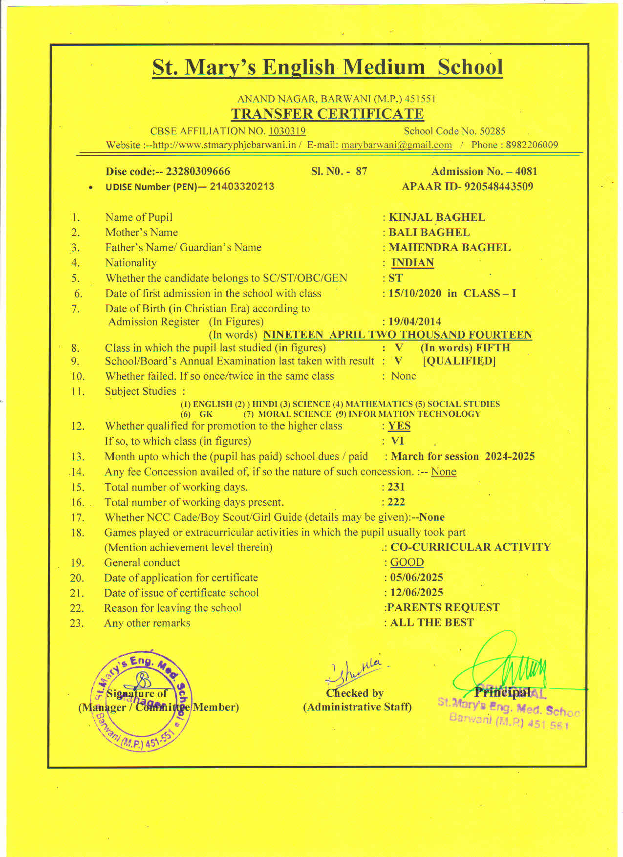 | 81 | KINJAL BAGHEL | V | View | Download |