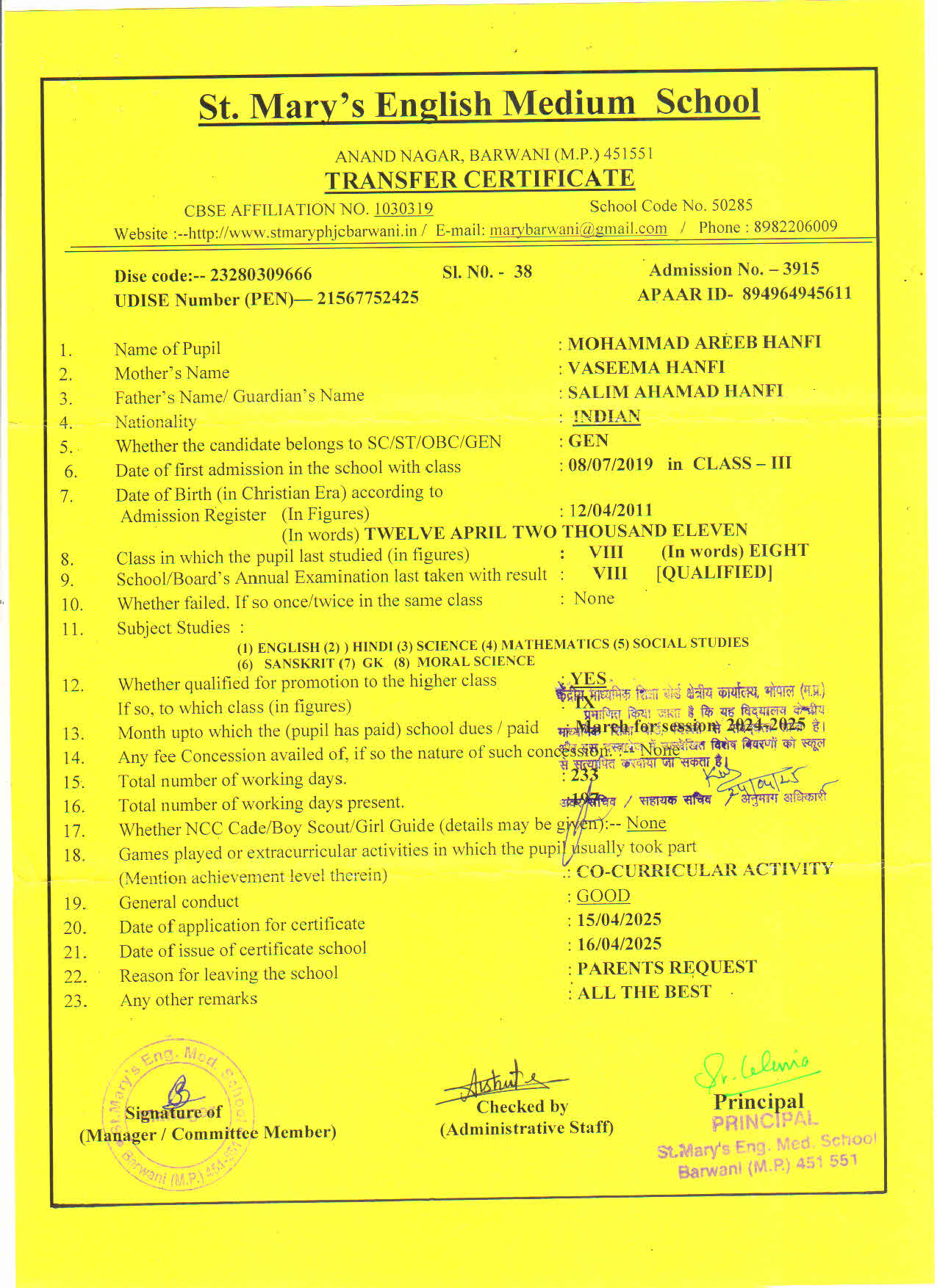 | 96 | MOH. AREEB HANFI | VIII | View | Download |