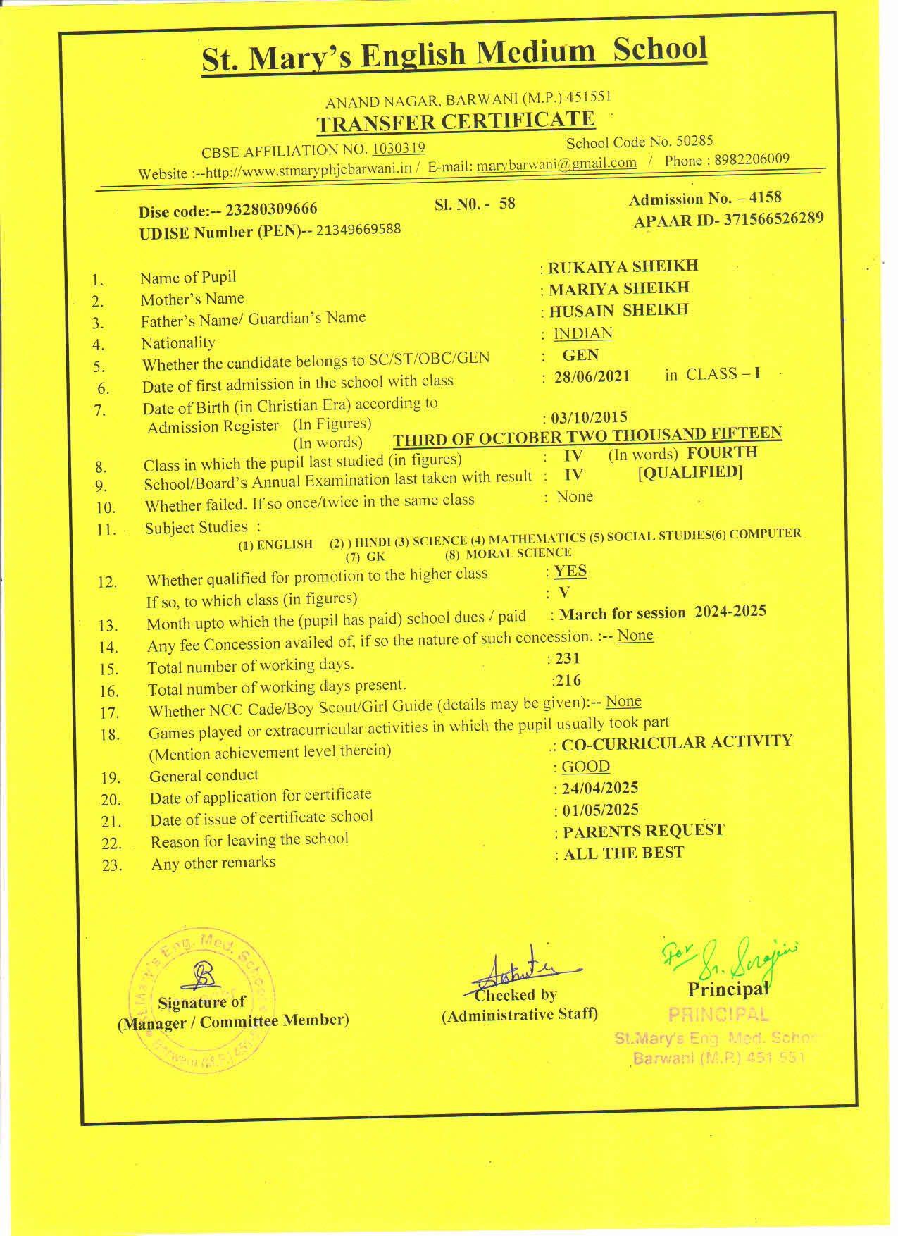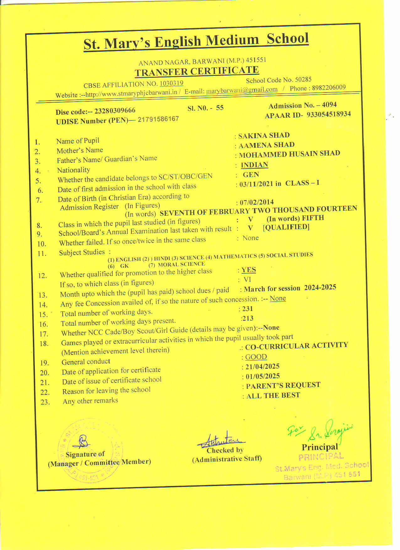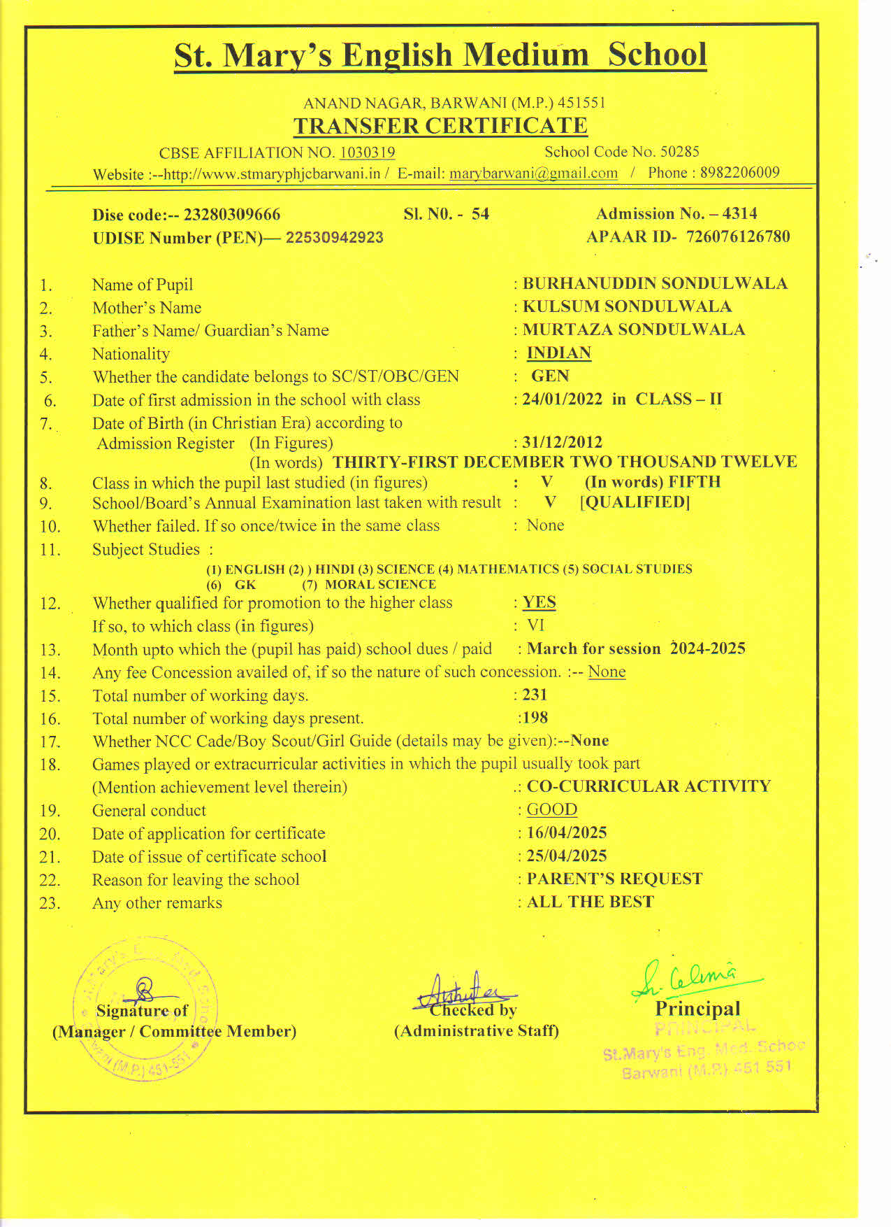 | 55 | BURHANNDDIN SHIKARI | IV | View | Download |